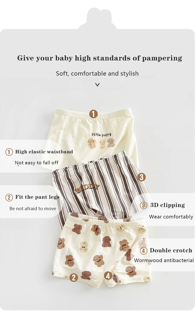 子供たちの快適さを考え、通気性のあるボクサーブリーフを3枚セットでご提供します。男の子も女の子も気に入ること間違いなし!3枚セットでお得にお求めいただけます。