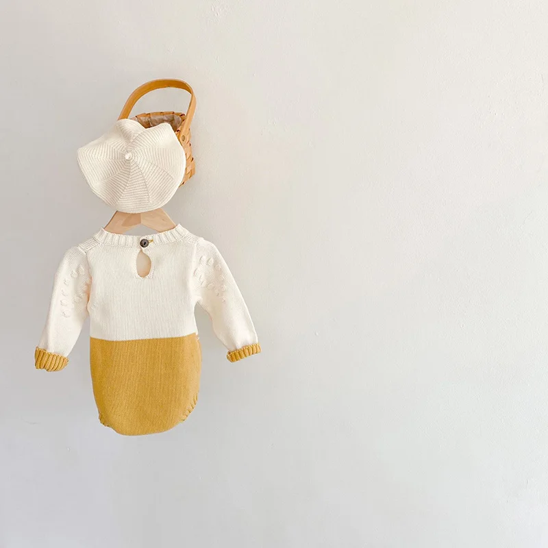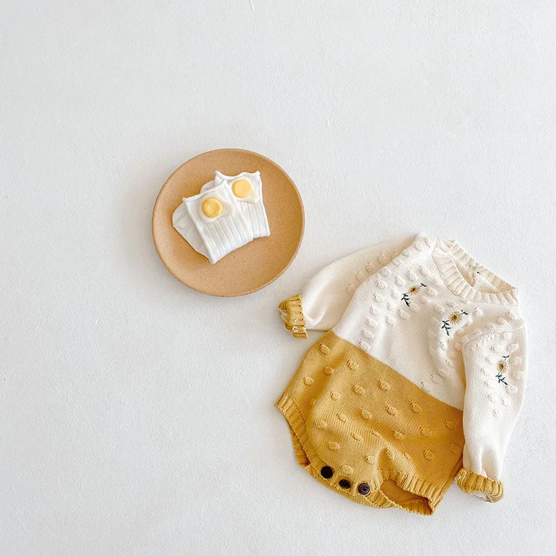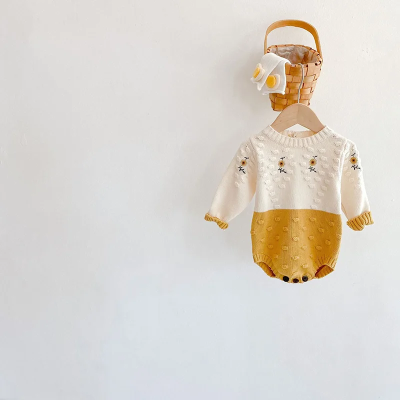 ベビーロンパース ニット 長袖ボディスーツ ひまわりサンフラワー刺繍【mh0006231】