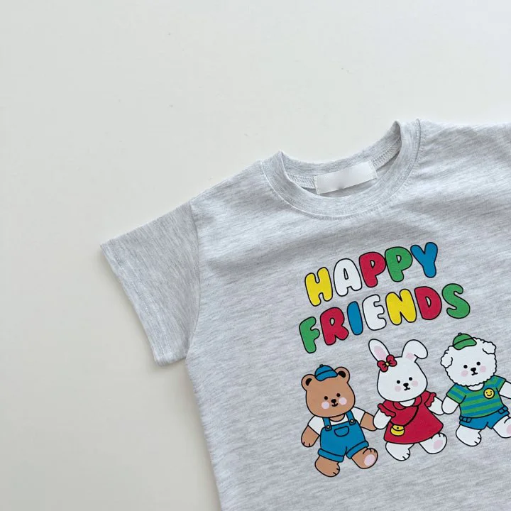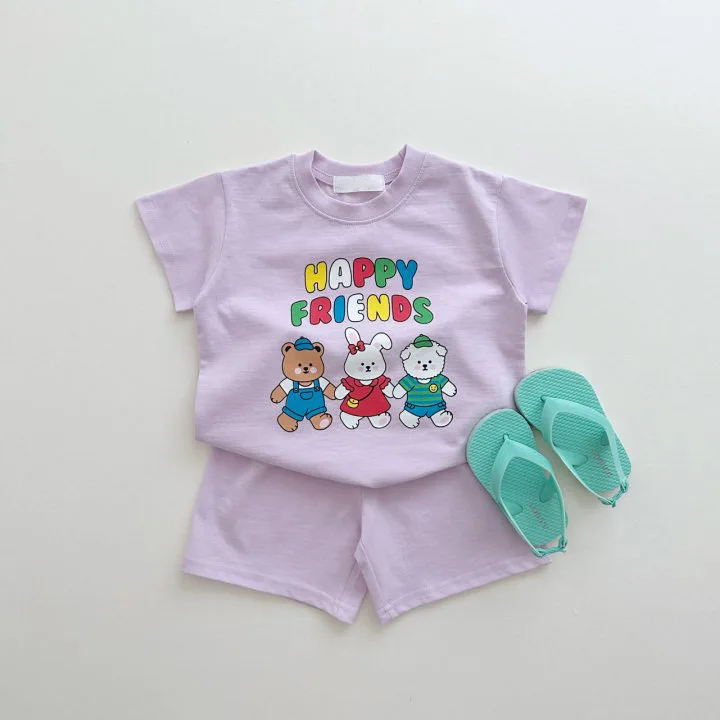 ベビーセットアップ 2点セット 半袖プリントTシャツ+ショートパンツ くまうさぎ 3カラー【mh0006307】