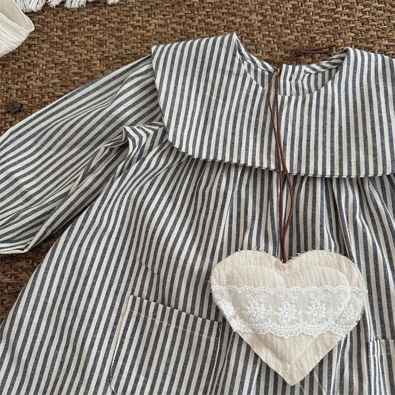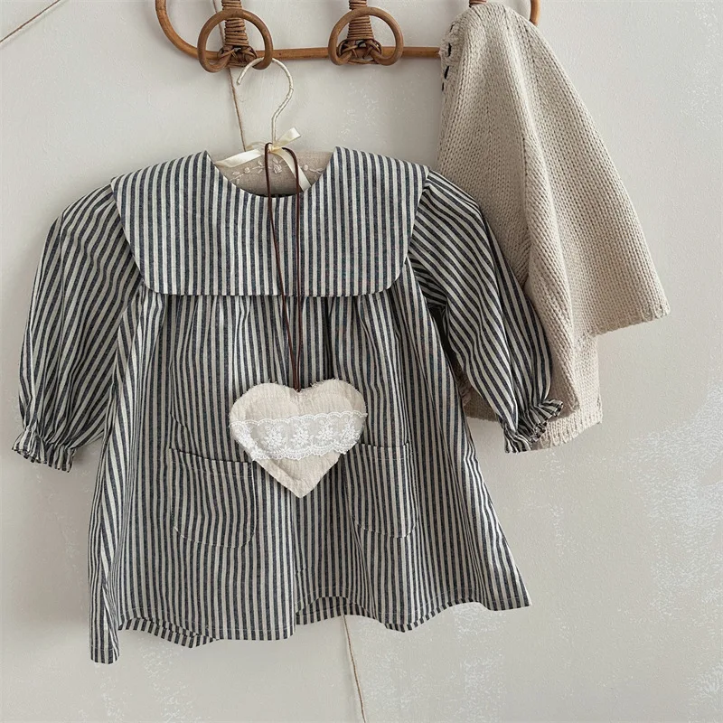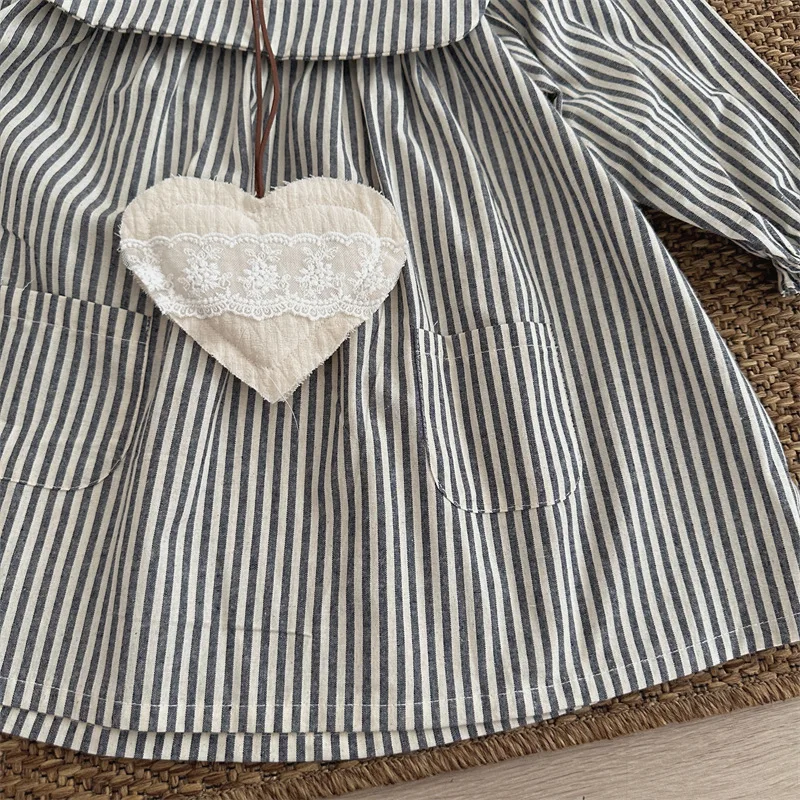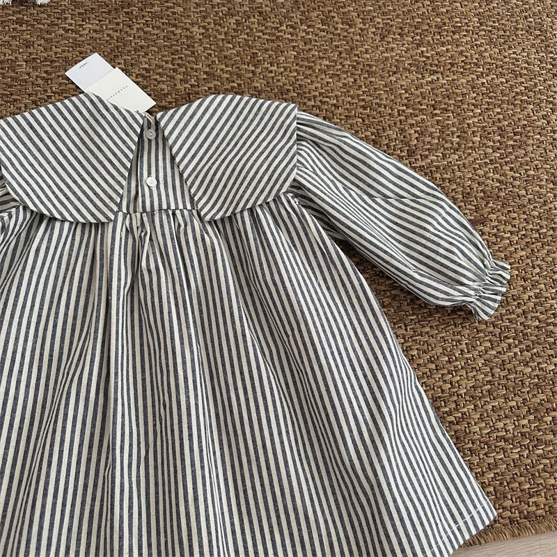 #キッズワンピース #ストライプ #ビッグ襟 #長袖 #韓国スタイル #カジュアル #秋服 #デイリーコーデ