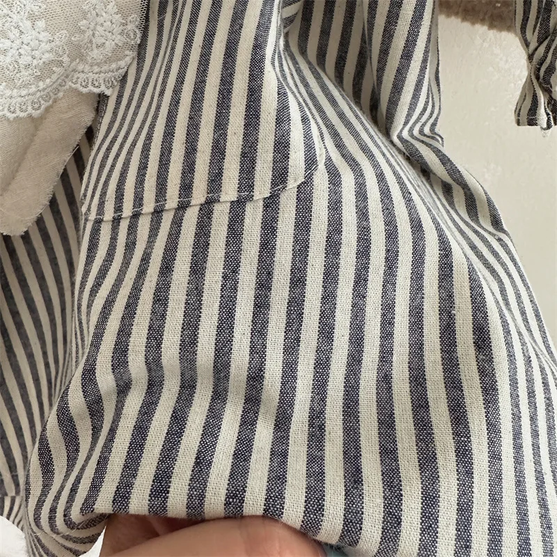 キッズワンピース ストライプビッグ襟長袖ワンピース【mh0006722】