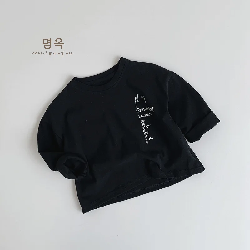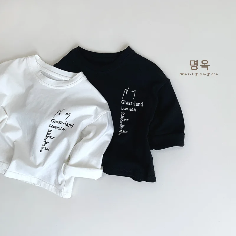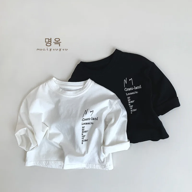キッズトップス 長袖レターロゴプリントTシャツ 2カラー【mh0006835】