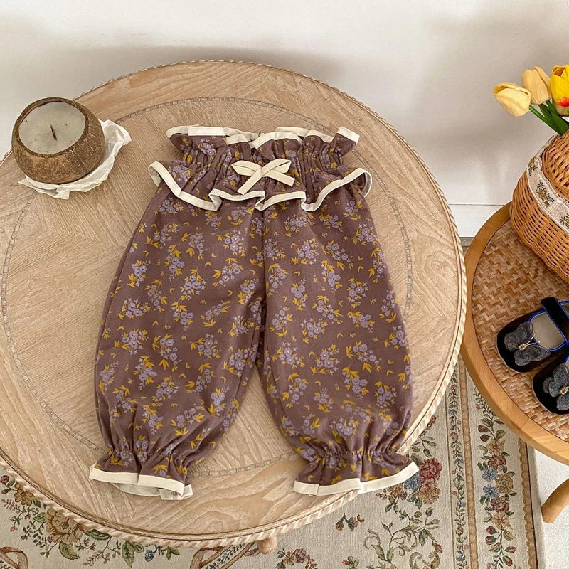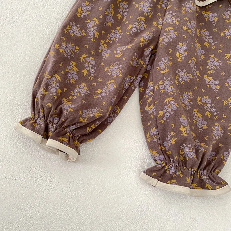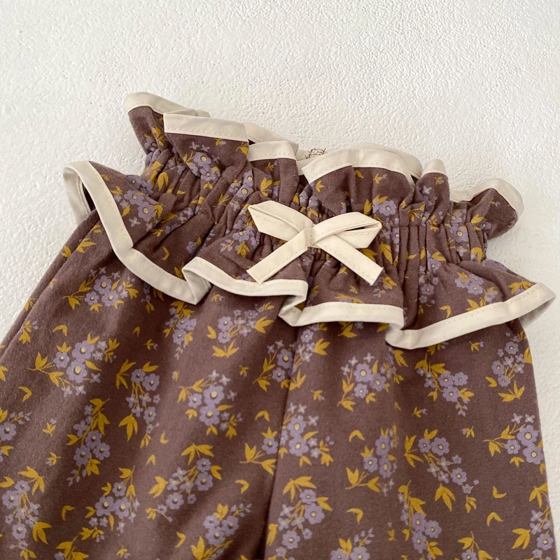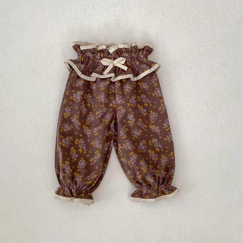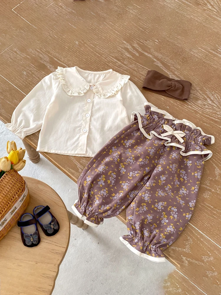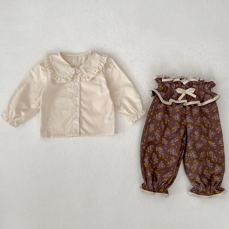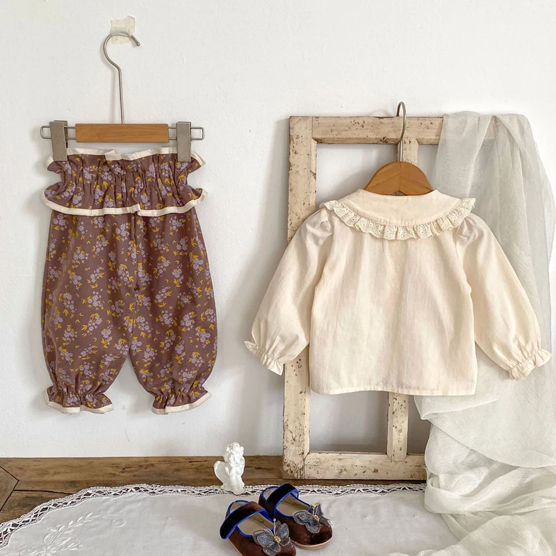 ベビートップス/パンツ フリル襟長袖ブラウス/フリルウエストフラワープリントロングパフパンツ【mh0006988】