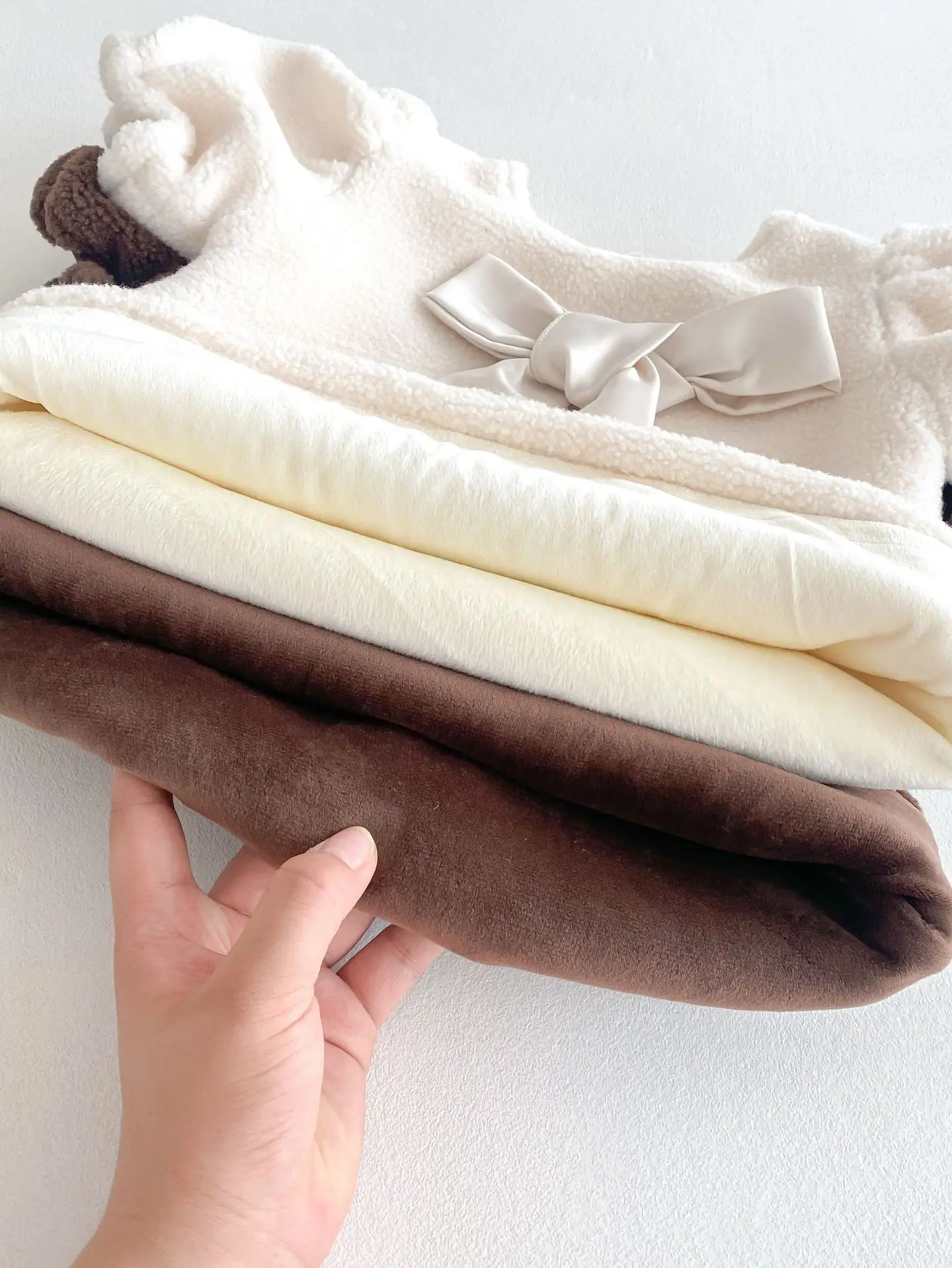 #ベビー服 #ワンピース #フリースドレス #ビッグリボン #パフスリーブ #冬コーデ #女の子ドレス