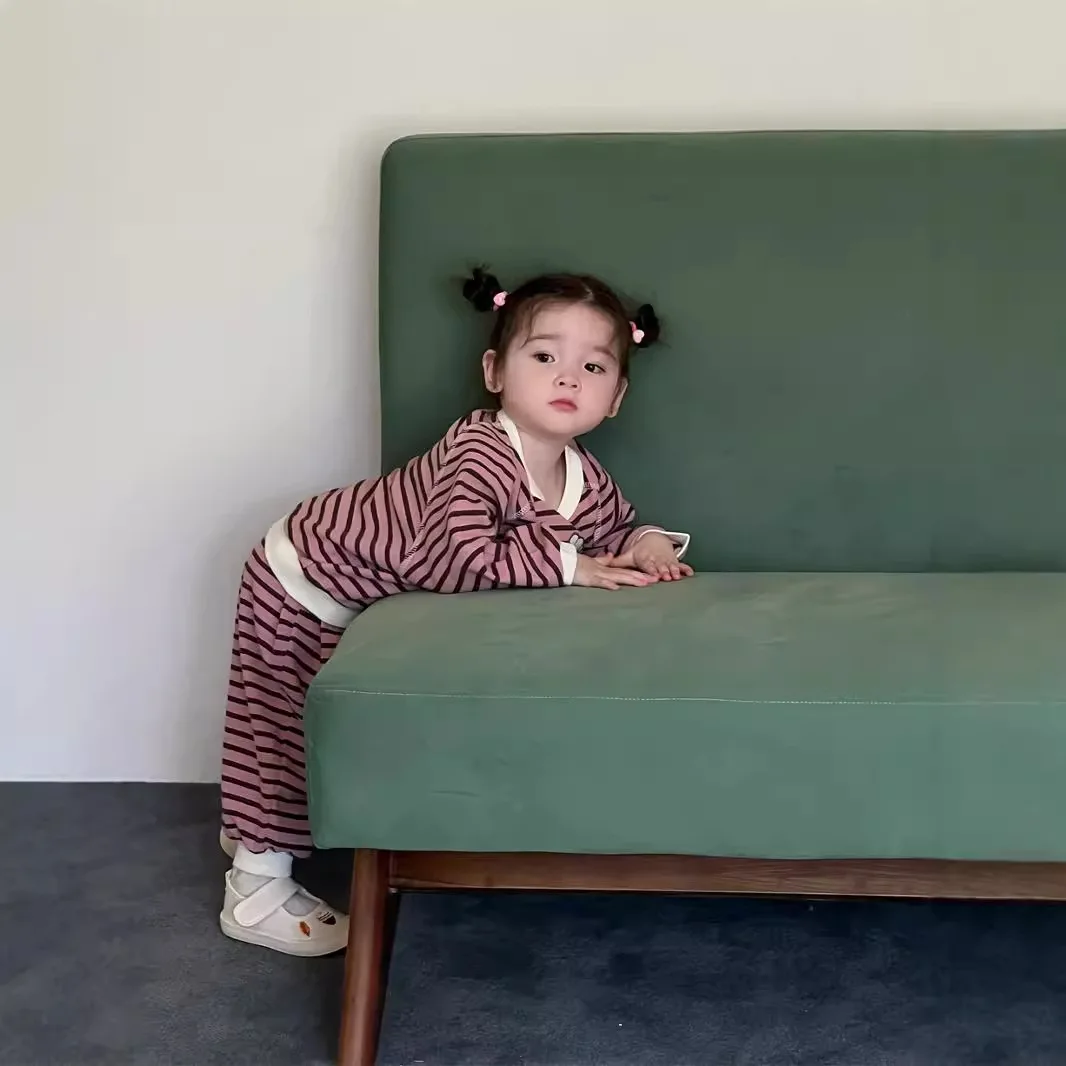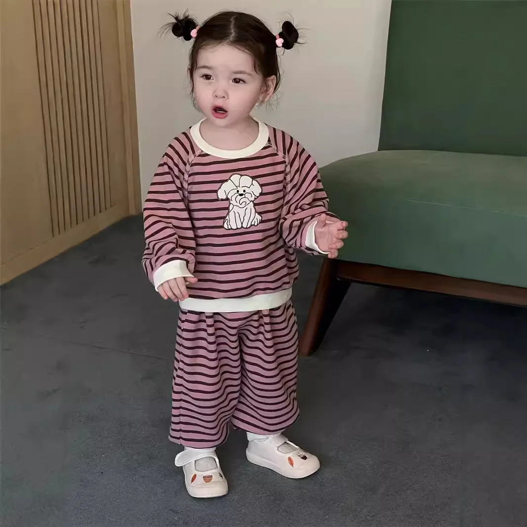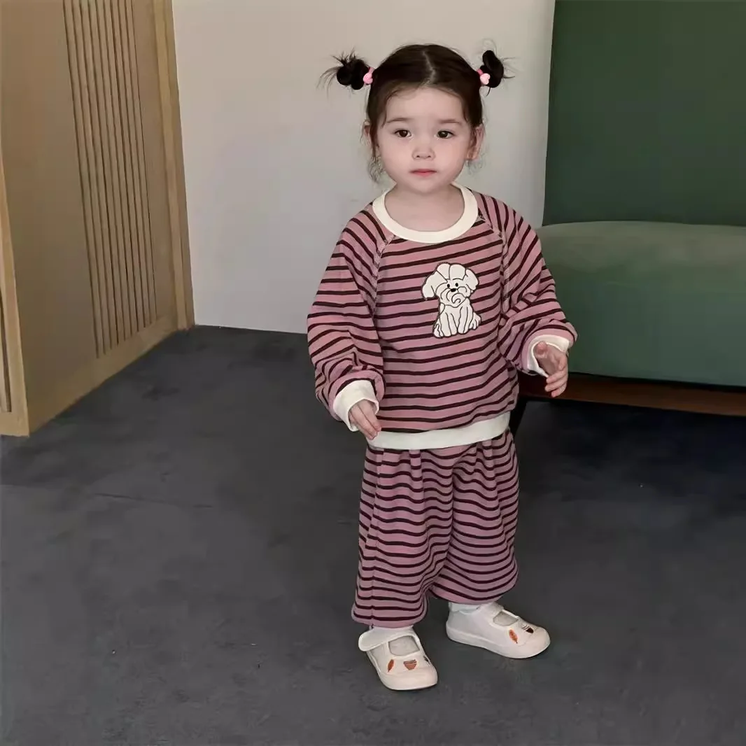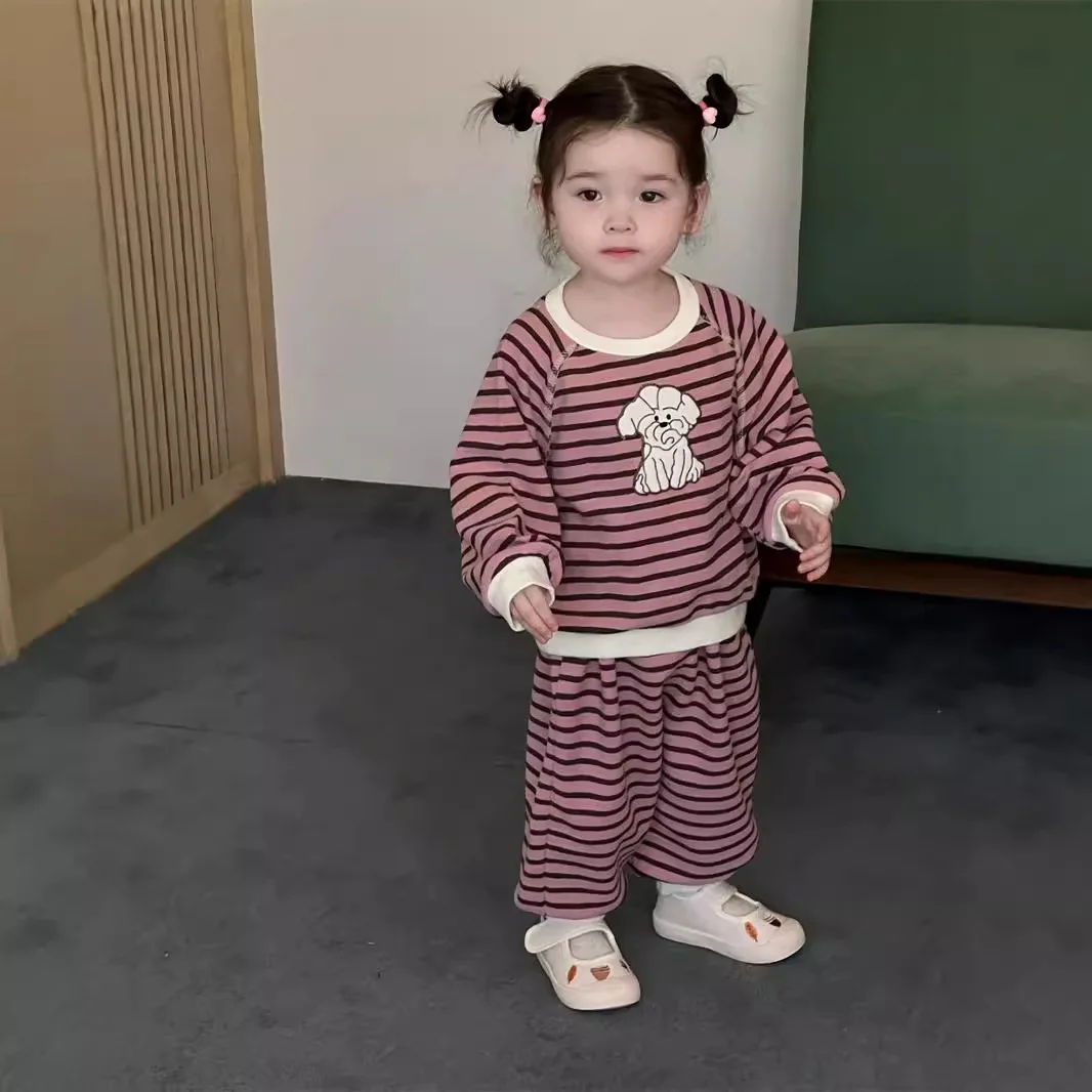 #ベビー服 #セットアップ #犬アップリケ #ボーダースウェット #長袖トップス #ロングパンツ #韓国子供服 #秋用ベビーウェア