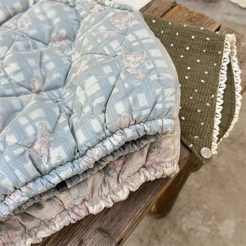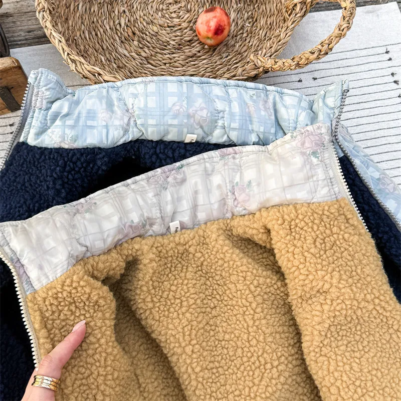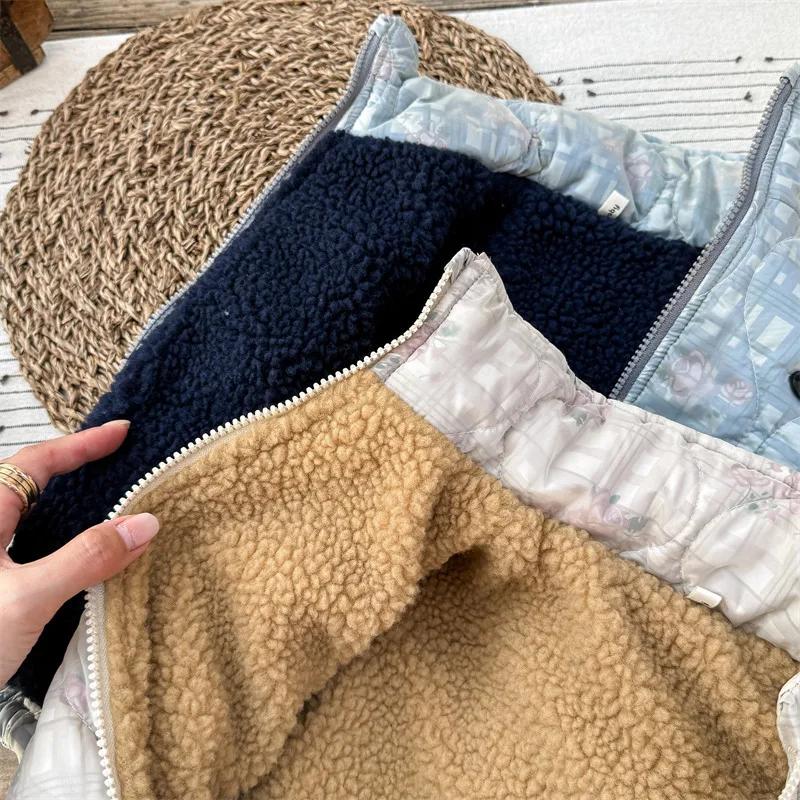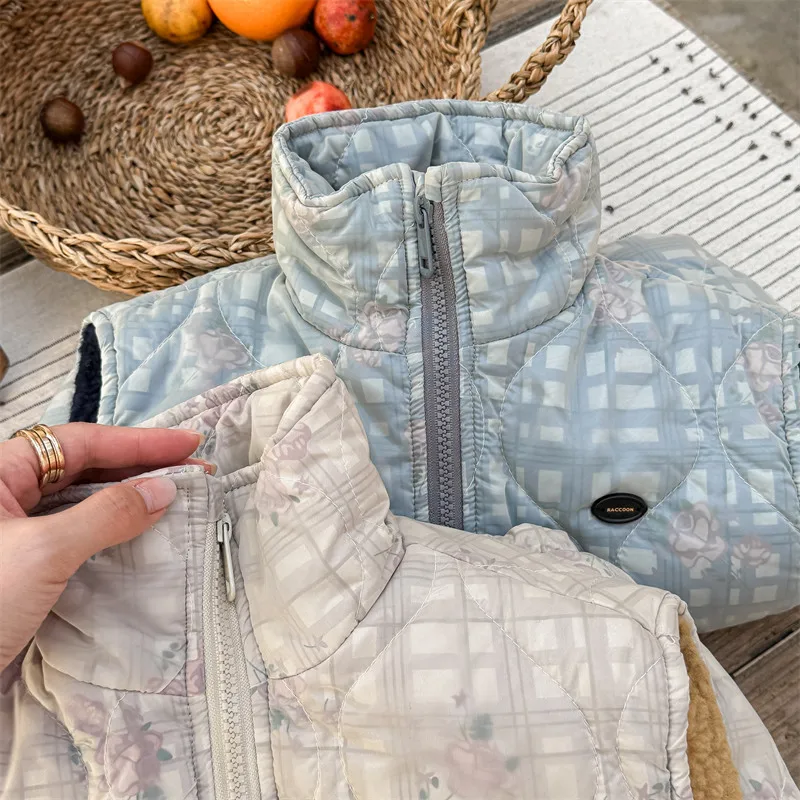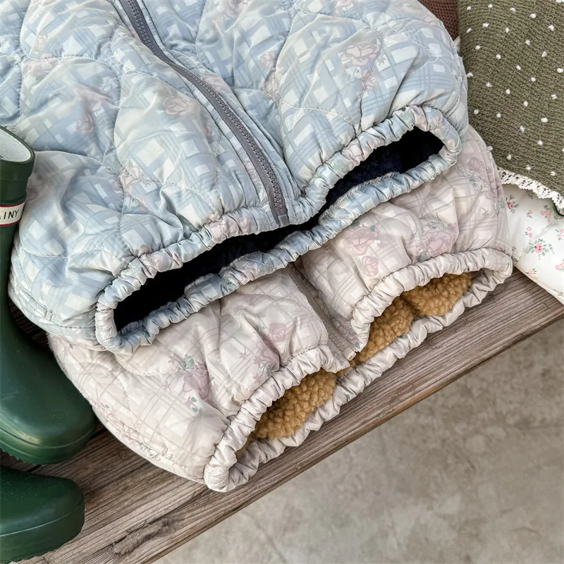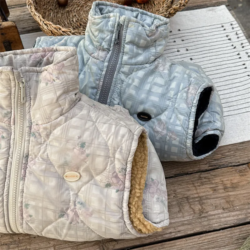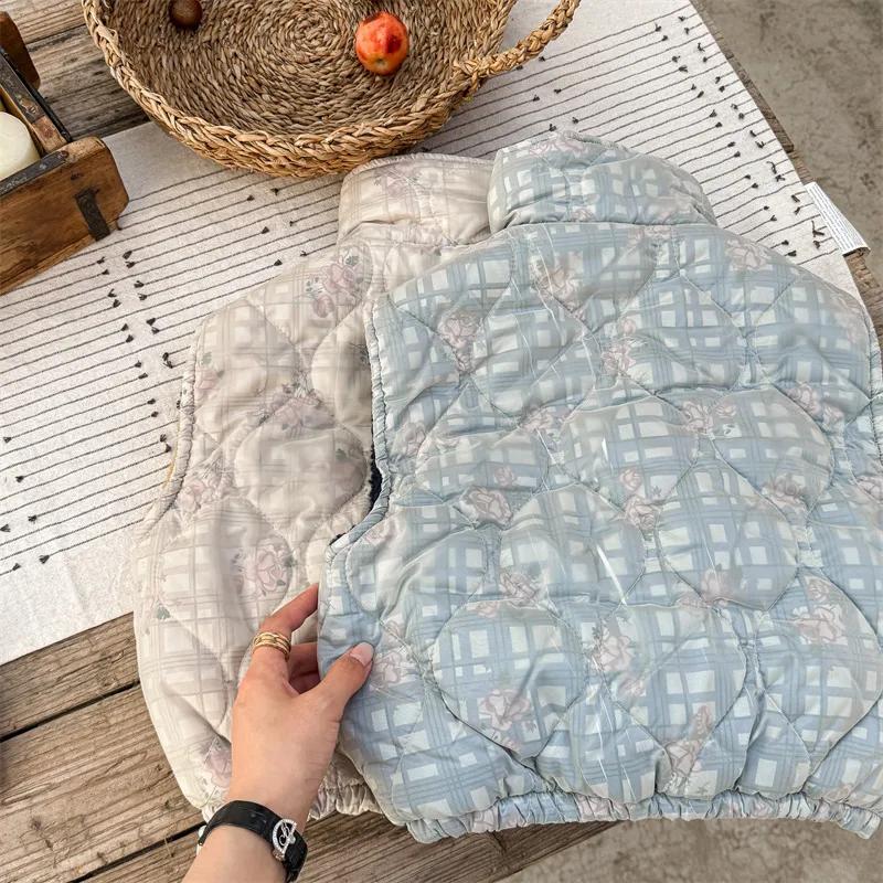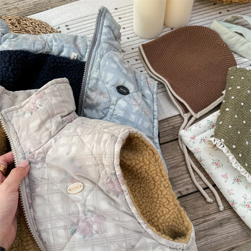 #キッズベスト #フラワーチェック柄 #ジップアップベスト #防寒対策 #おしゃれ子供服 #冬コーデ #ノースリーブ