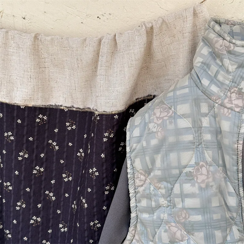 フラワーチェックプリントが特徴のジップアップアウターベストは、寒い季節のスタイリッシュで機能的なアイテムです。中綿入りのデザインで保温性が高く、柔らかい素材感が快適な着心地を提供します。ジップアップ仕様で着脱が簡単、動きやすいノースリーブスタイル。華やかなフラワーチェック柄が目を引き、日常のコーディネートにアクセントをプラスします。普段使いからお出かけまで幅広いシーンで活躍します。