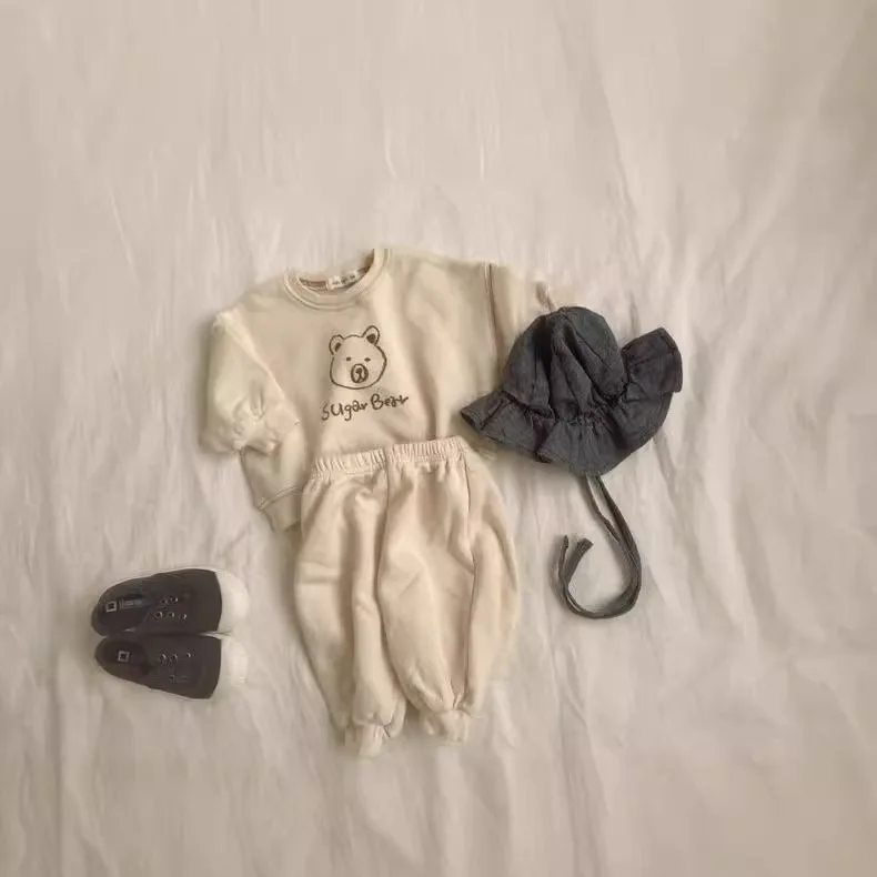 ベビーセットアップ 2点セット ベアくまプリント長袖スウェットシャツ+ロングスウェットパンツ【mh0008307】