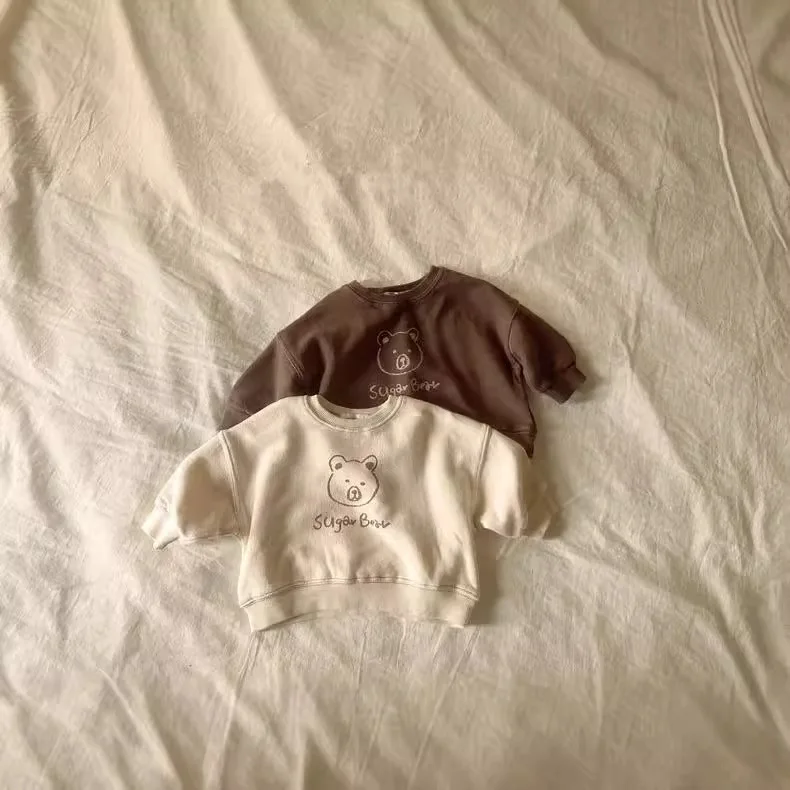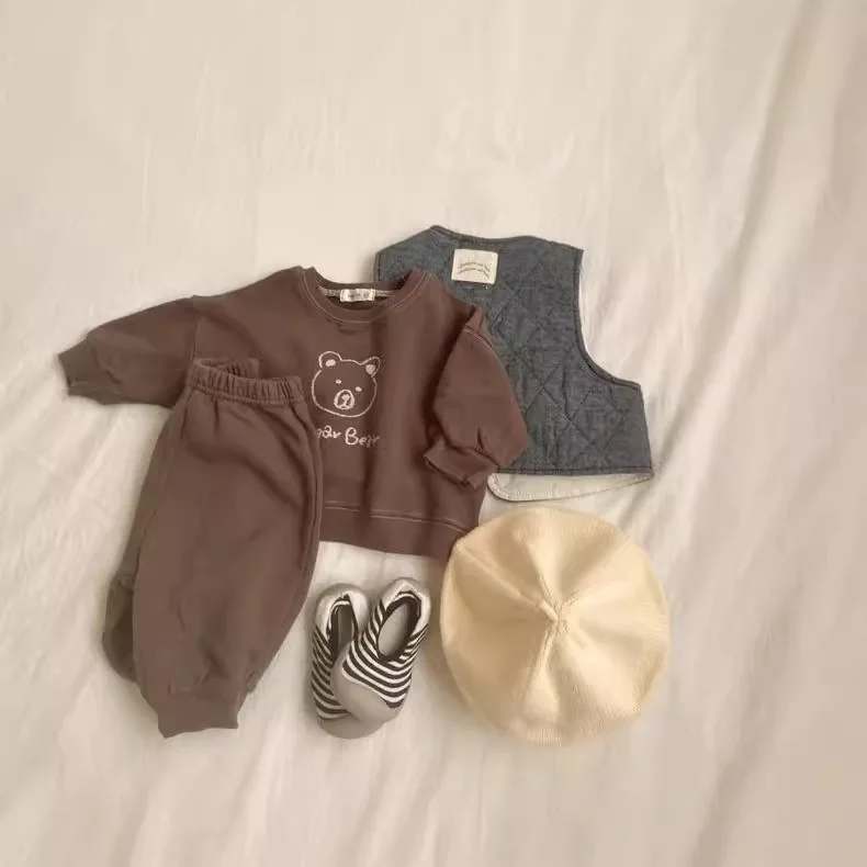 ベアプリントの長袖スウェットシャツとロングスウェットパンツの2点セットは、赤ちゃんの普段着にぴったりのカジュアルでかわいらしいアイテムです。スウェットシャツは柔らかな素材で仕立てられており、快適な着心地と適度な暖かさを提供します。可愛らしいベアのプリントがデザインのポイントになり、遊び心をプラスしています。ロングパンツは動きやすさを重視したシンプルなデザインで、活発な赤ちゃんに最適です。このセットは、日常使いからお出かけまで幅広いシーンで活躍する一着です。