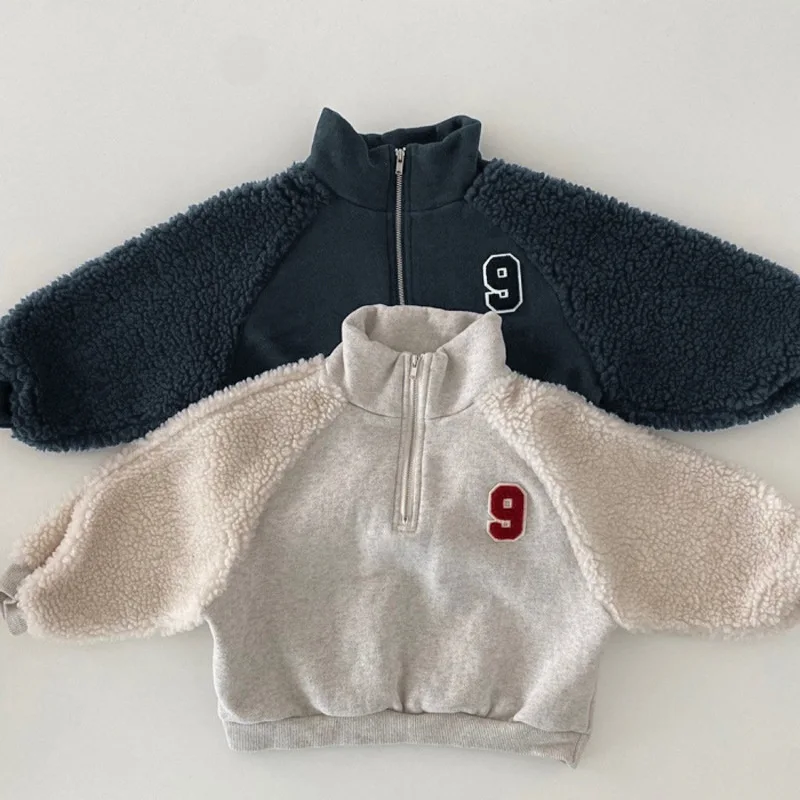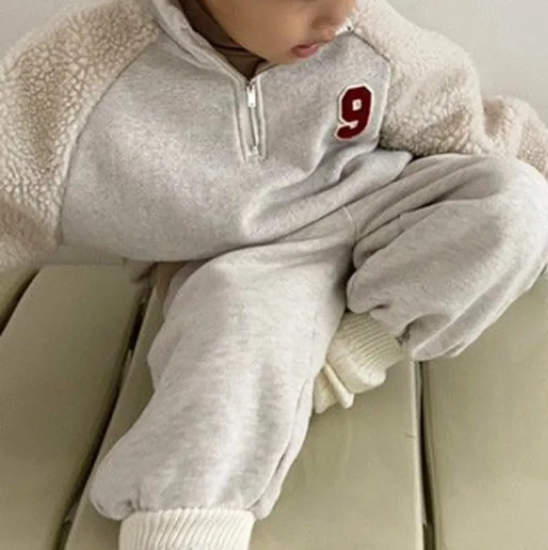 キッズセットアップ 2点セット ボアフリースドッキングロゴワッペンハーフジップ長袖スウェットシャツ+ロングスウェットパンツ【mh0008359】