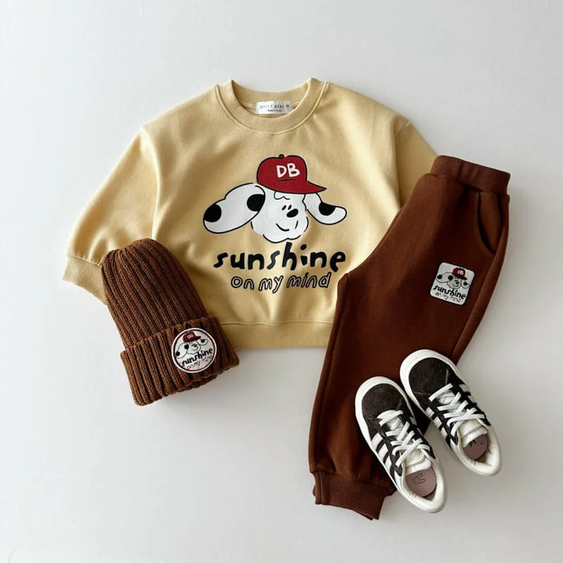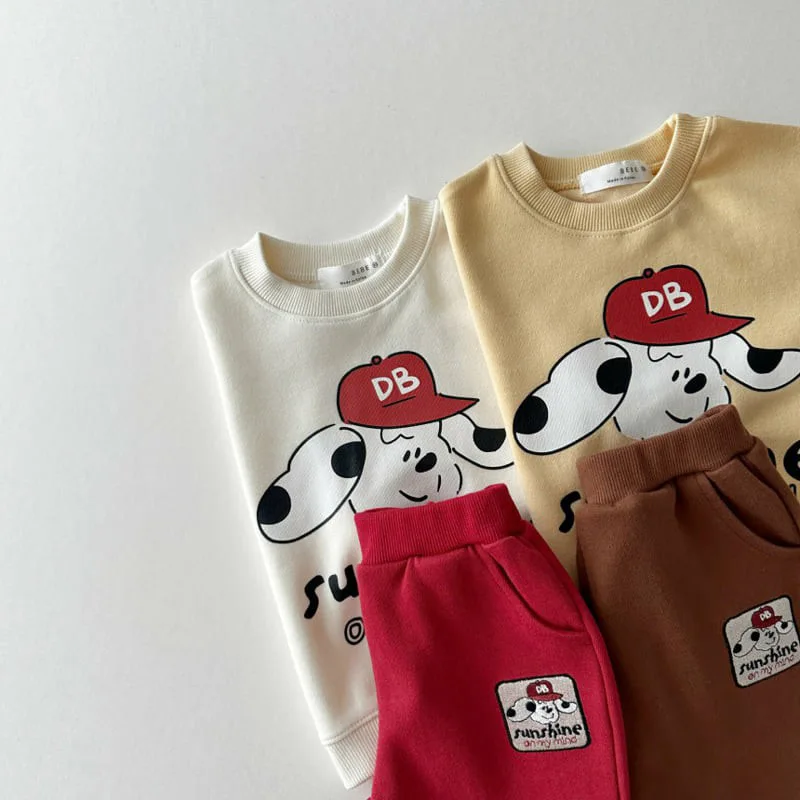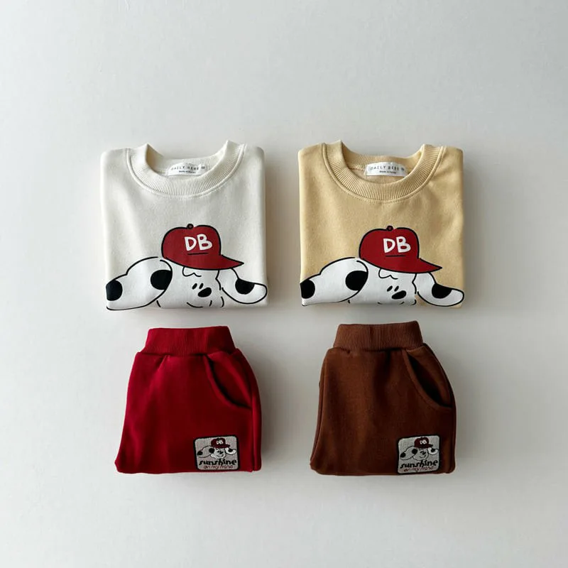 キッズセットアップ 2点セット 犬ドッグプリント長袖スウェットシャツ+ロングスウェットパンツ【mh0008543】