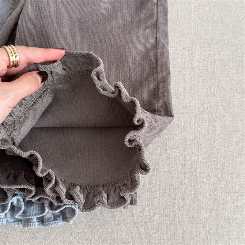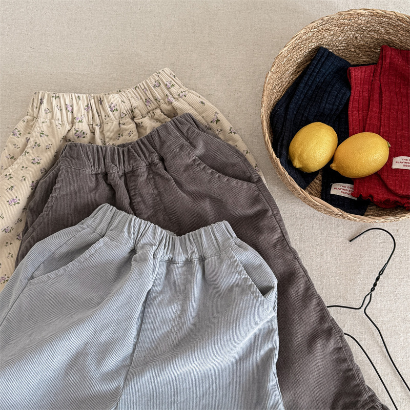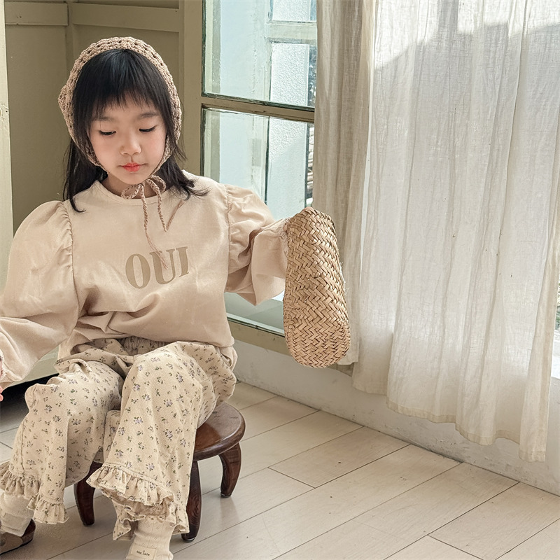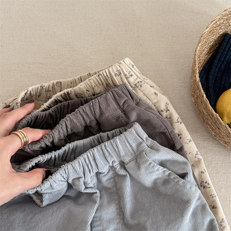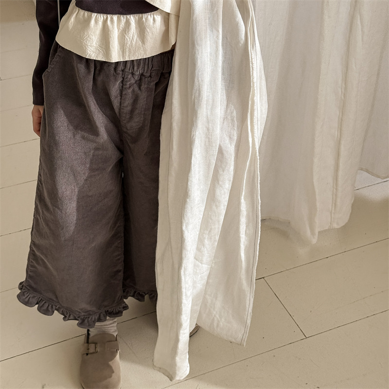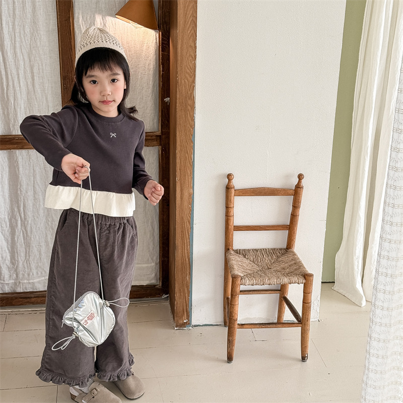 キッズパンツ フラワープリント裾フリルワイドルーズロングパンツ【mh0008980】