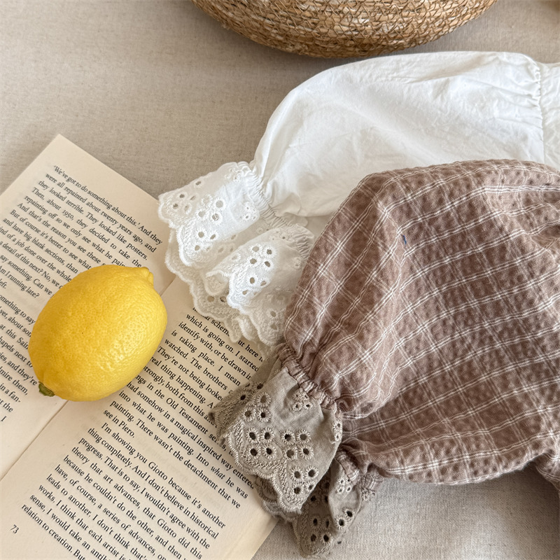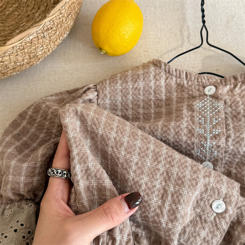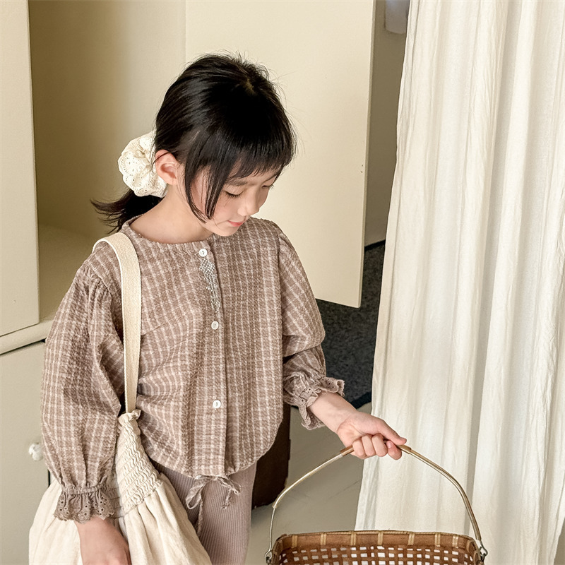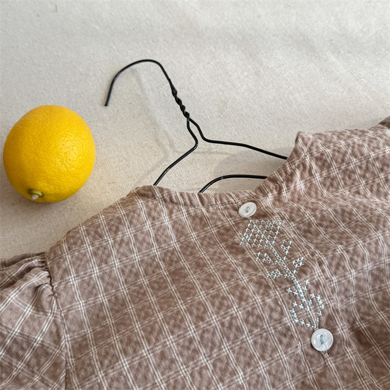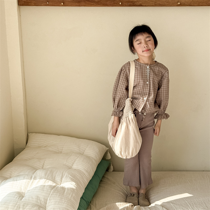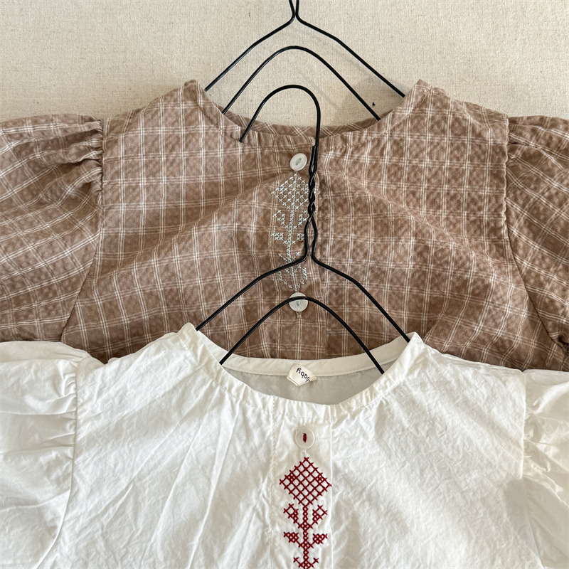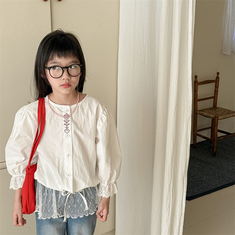キッズトップス 刺繍ステッチ長袖パフスリーブブラウス【mh0008992】