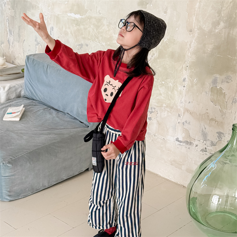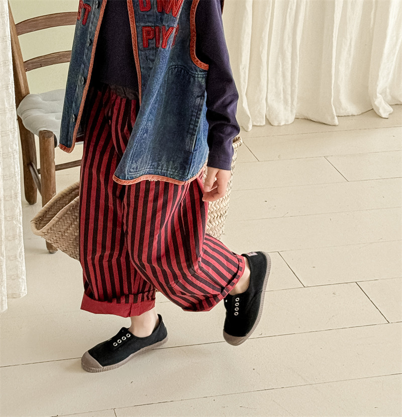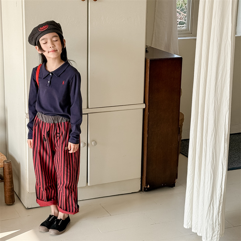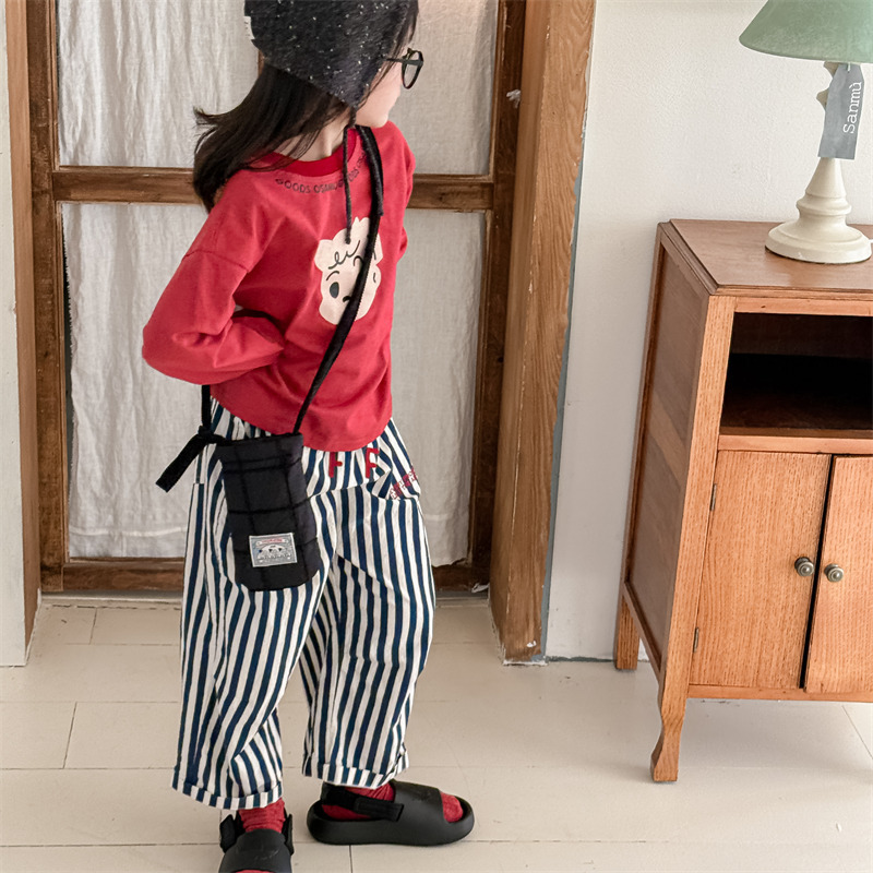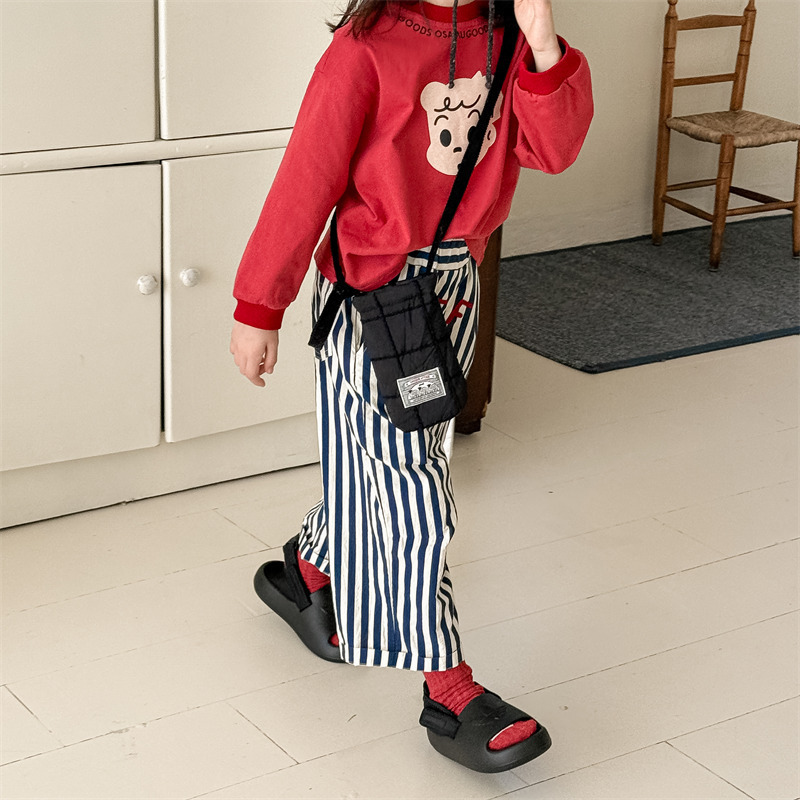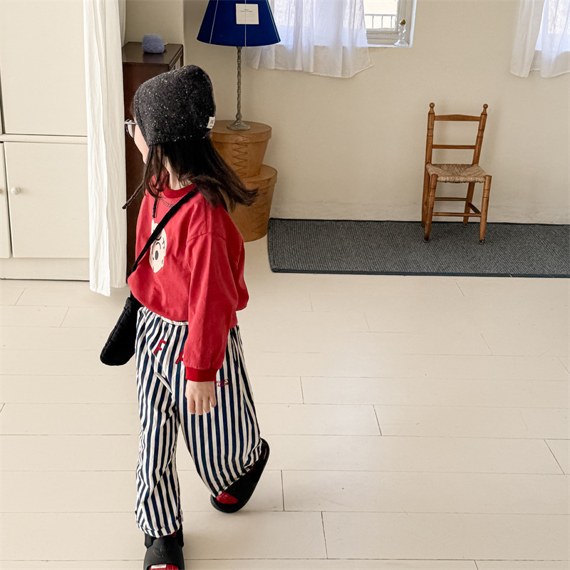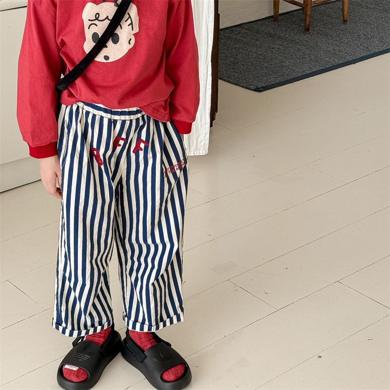キッズパンツ ストライプレターロゴワイドルーズロングパンツ【mh0008995】