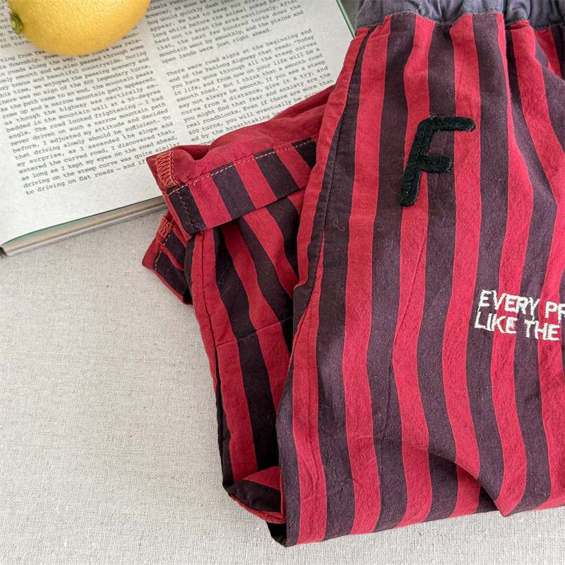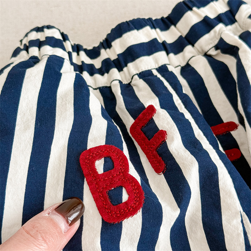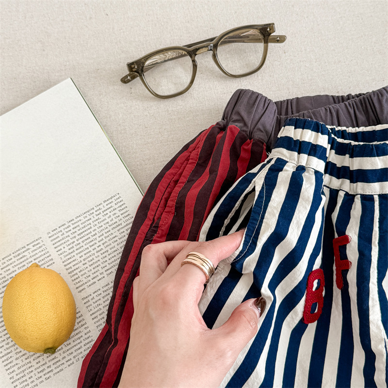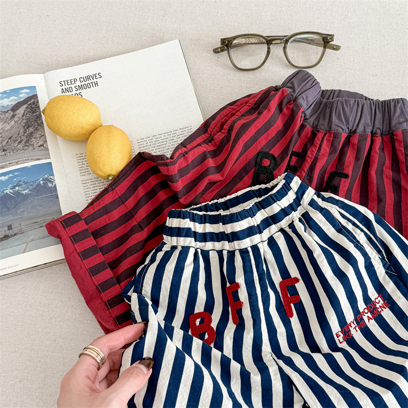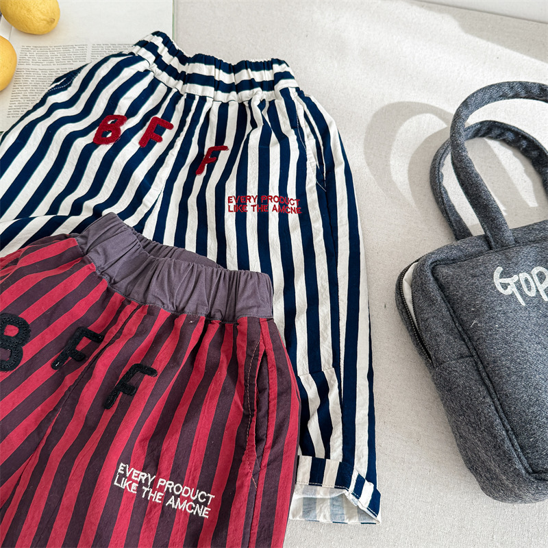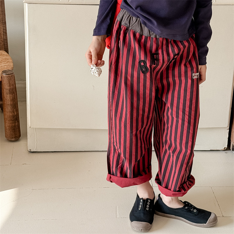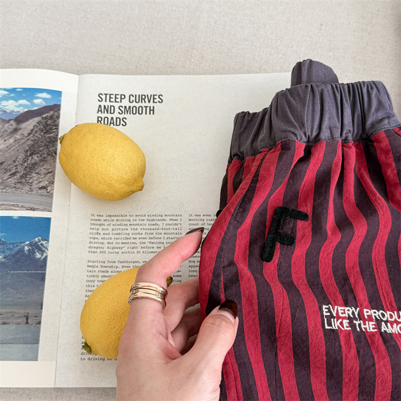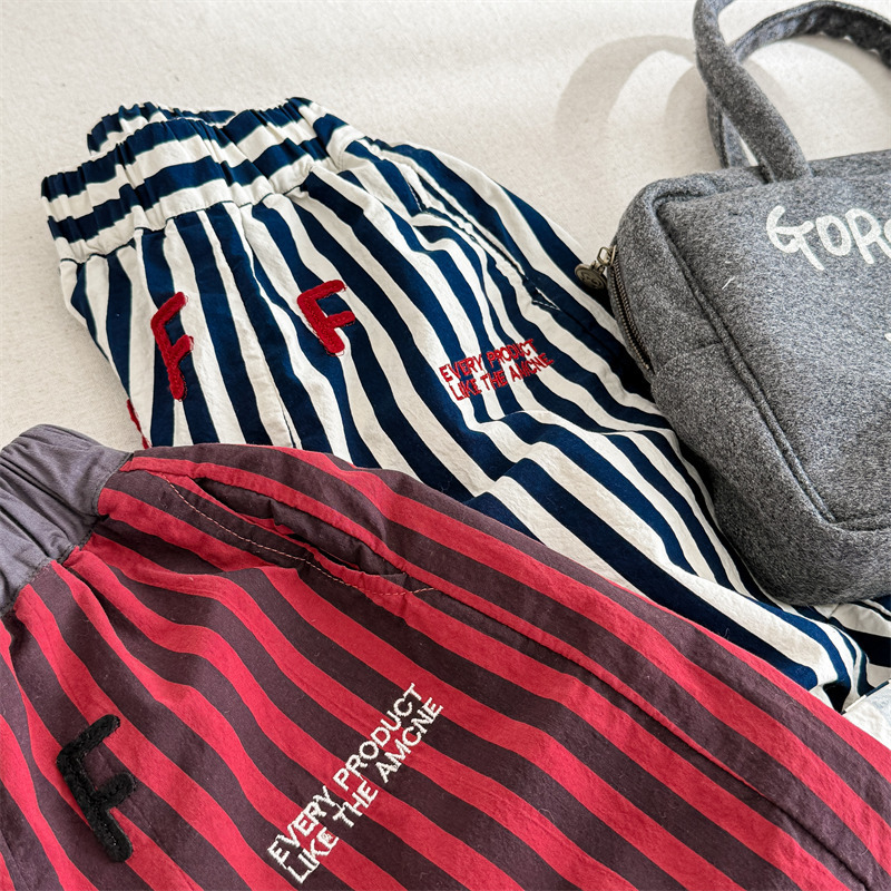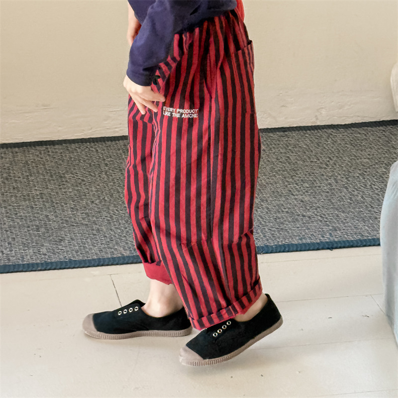 #キッズパンツ #ストライプ #レターロゴ #カジュアルファッション #おしゃれキッズ #ルーズフィット