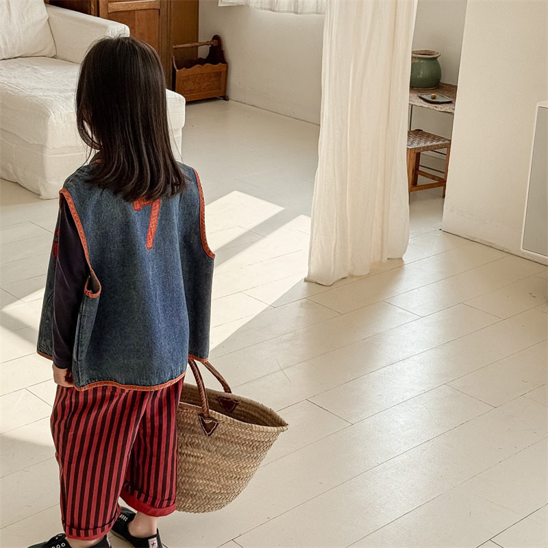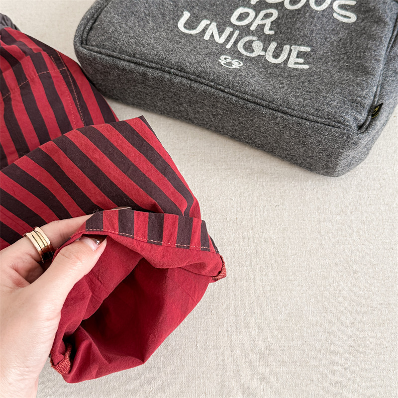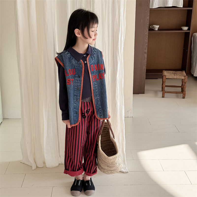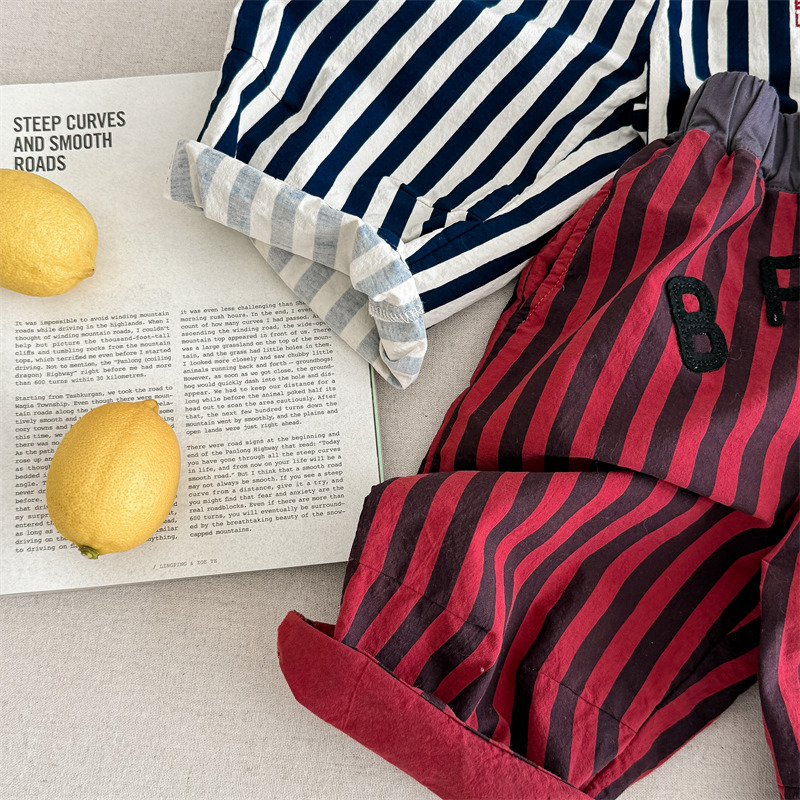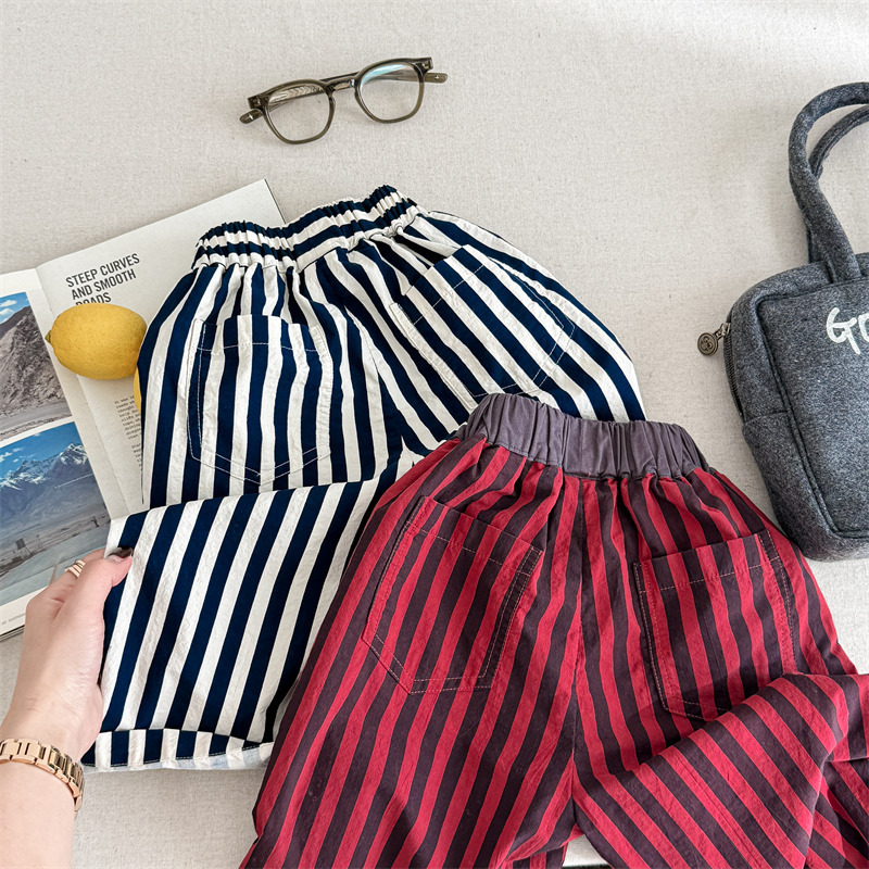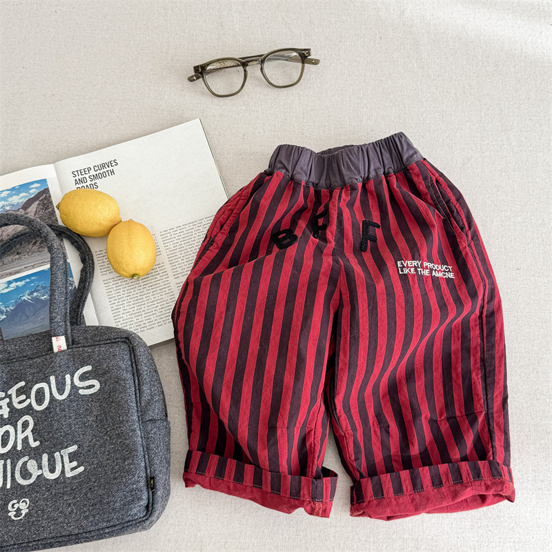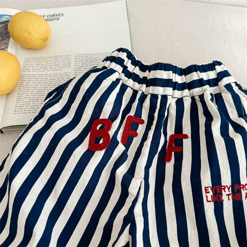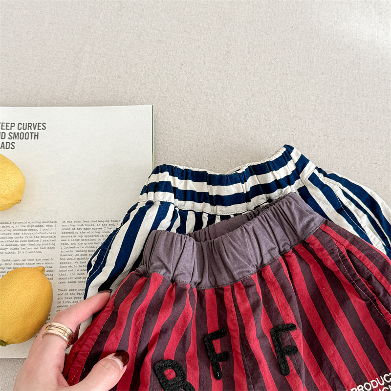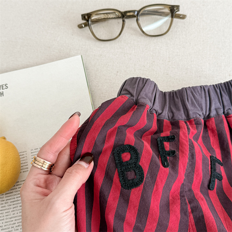 #キッズパンツ #ストライプ #レターロゴ #カジュアルファッション #おしゃれキッズ #ルーズフィット