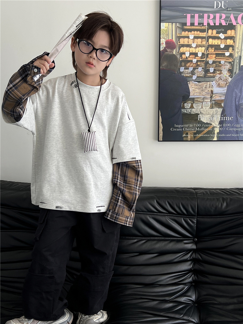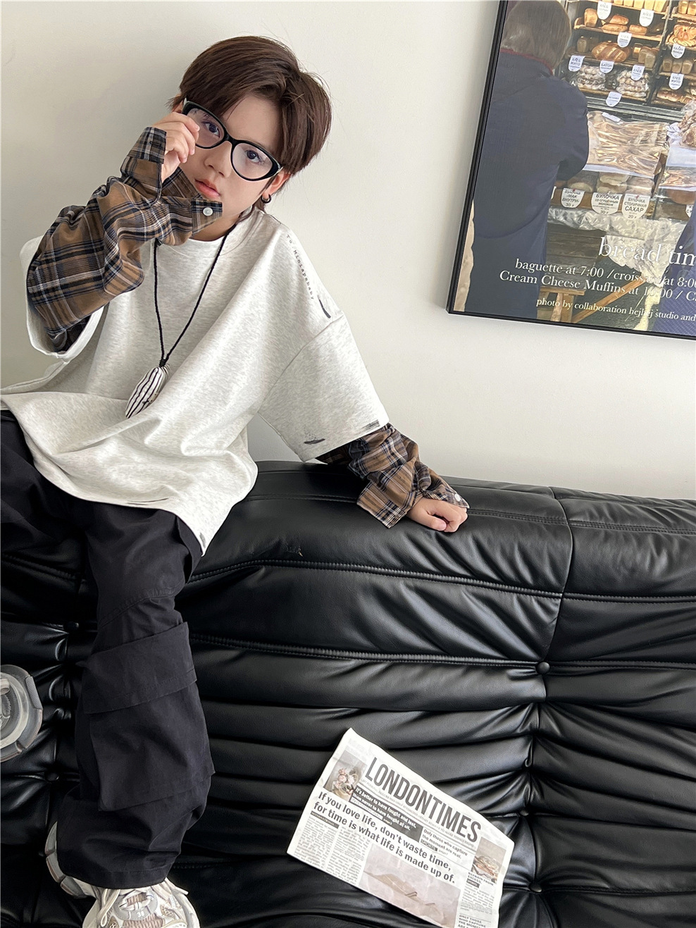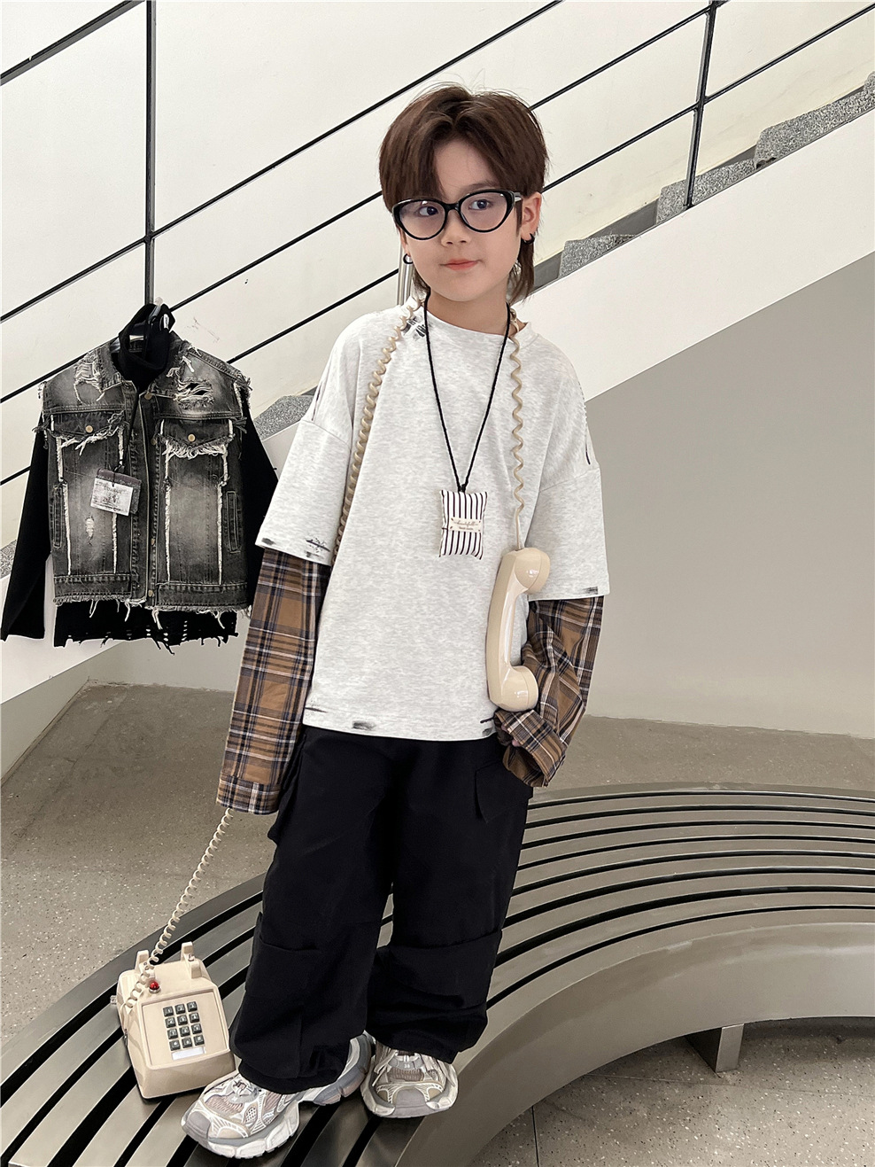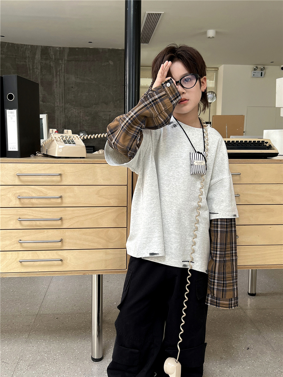 キッズトップス チェックシャツドッキング長袖Tシャツ【mh0009136】