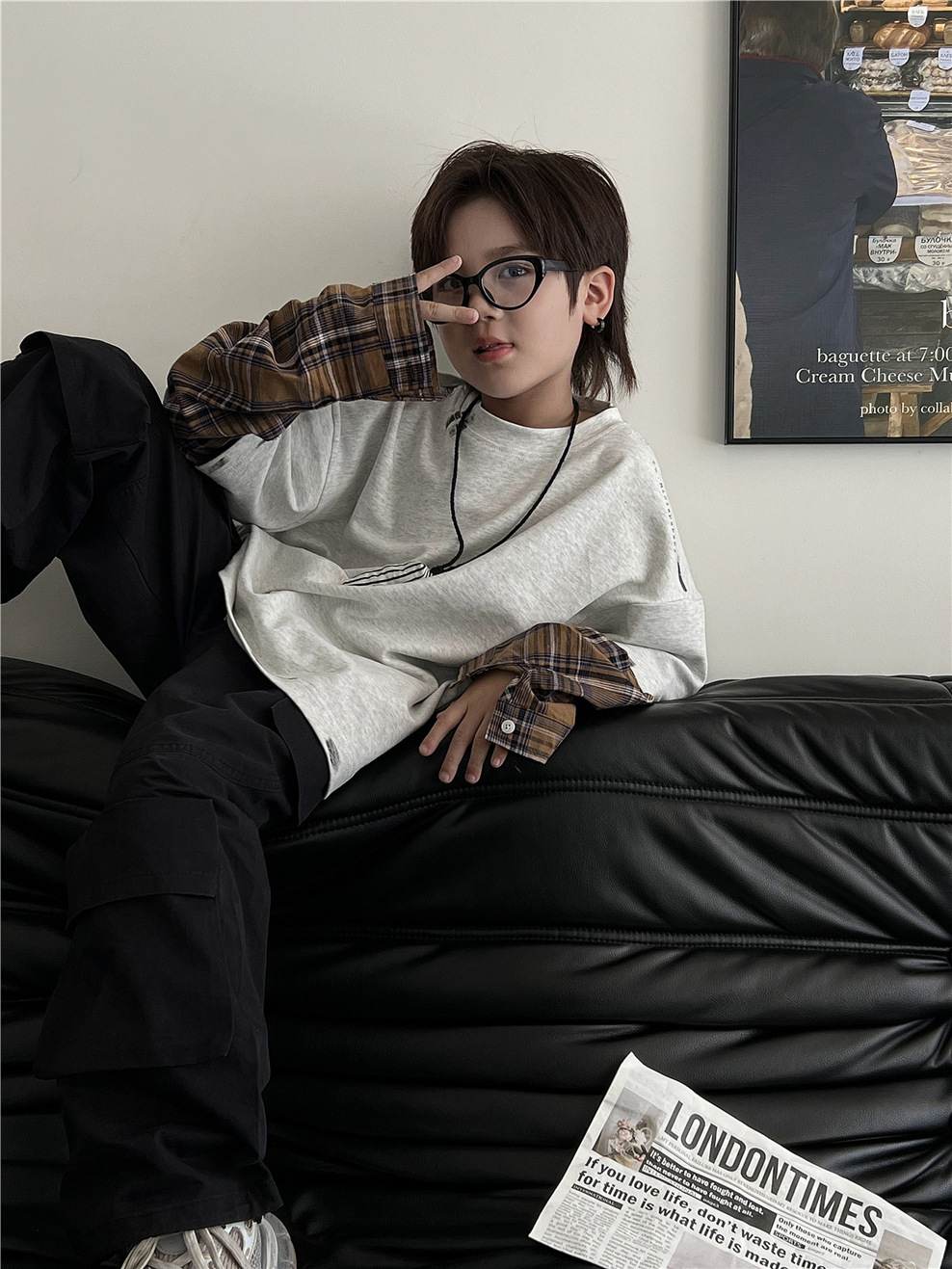 #キッズトップス #チェックシャツ #ドッキングTシャツ #長袖 #カジュアルファッション #おしゃれ子供服