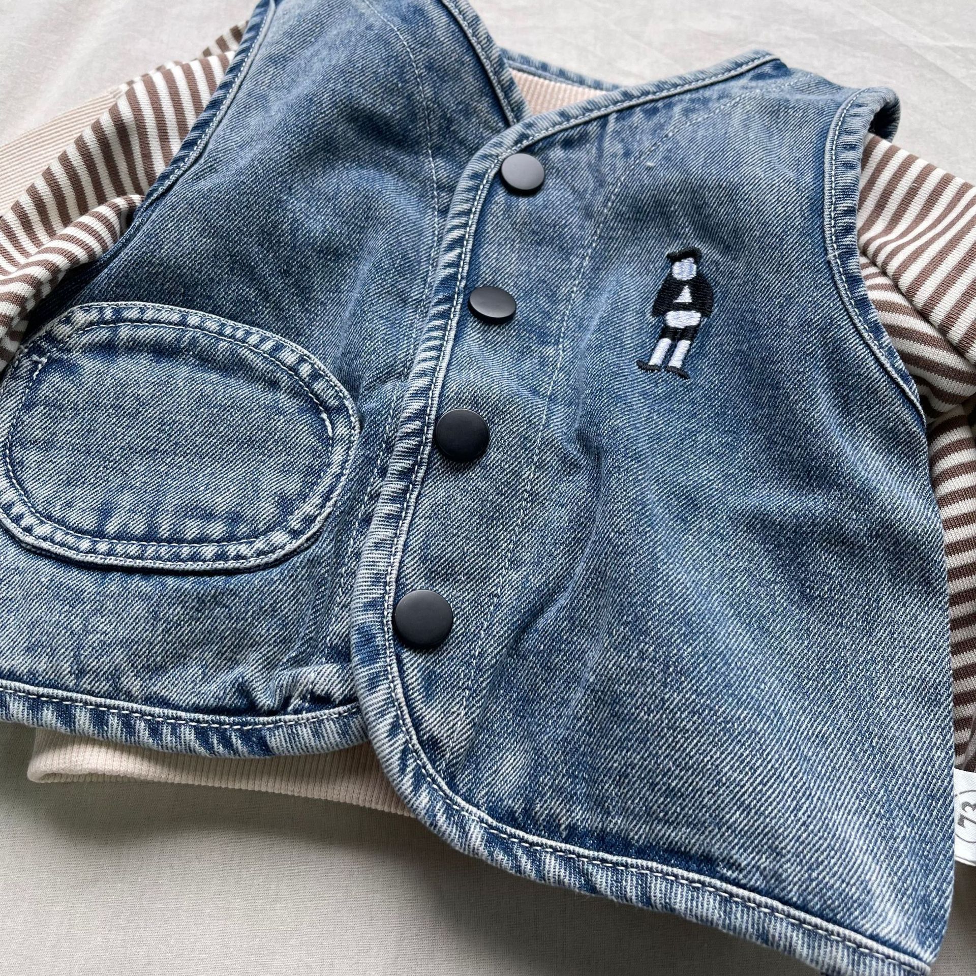 #キッズデニムベスト #刺繍デザイン #キャラクター風 #カジュアルコーデ #男女兼用 #子供服