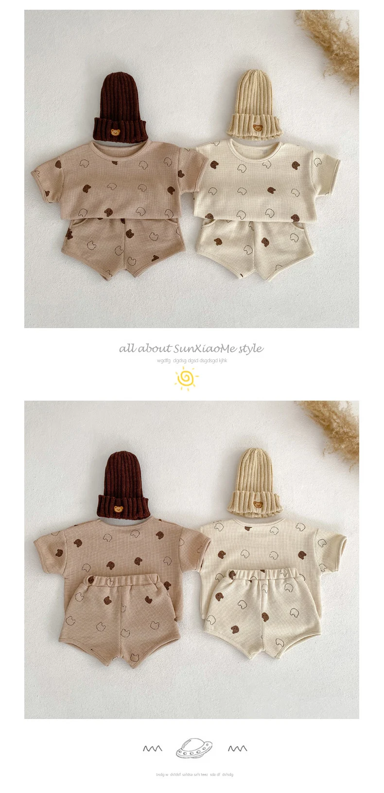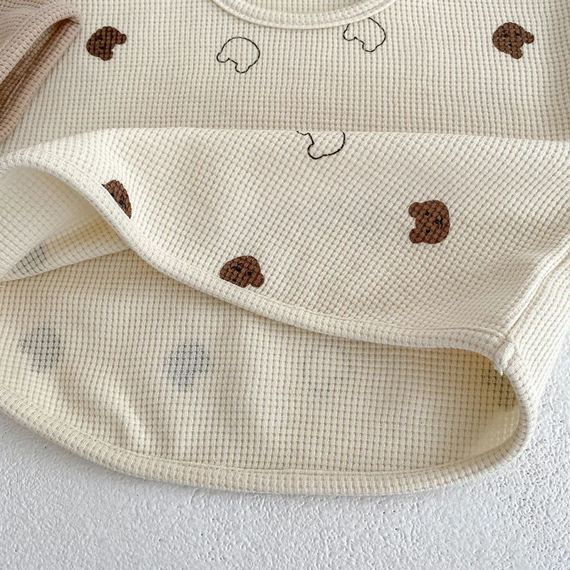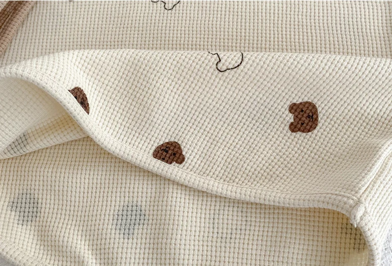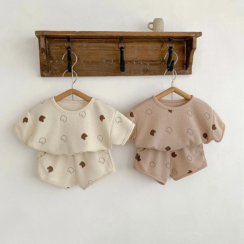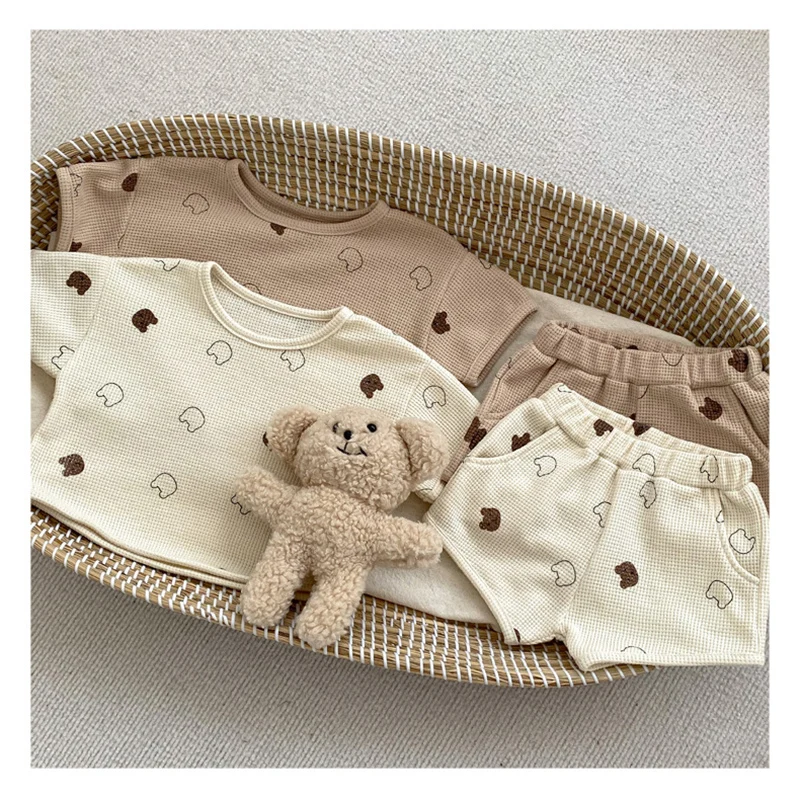 ベビー セットアップ ワッフル くま ベア 半袖 Tシャツ ショートパンツ ベージュ ブラウン