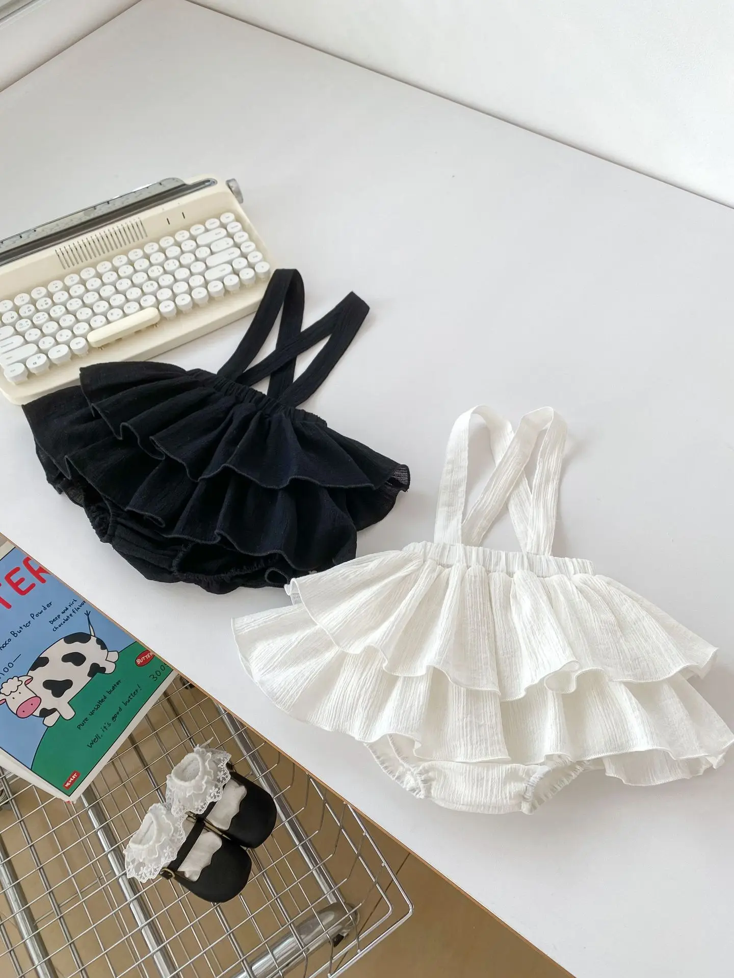 ベビーパンツ サスペンダースカートブルマ ケーキスカート ブラック/ホワイト/2カラー
