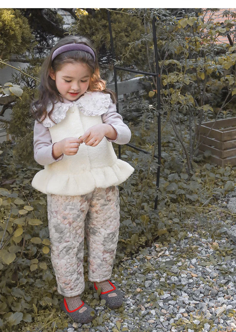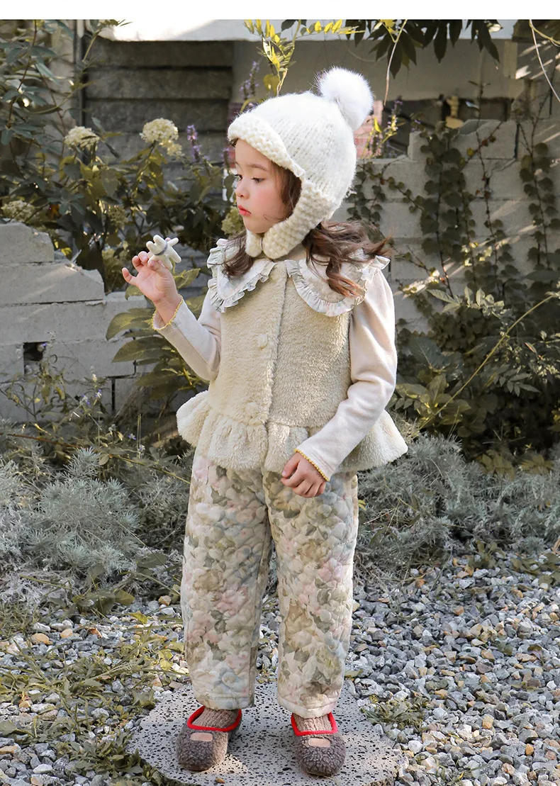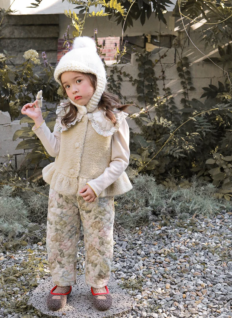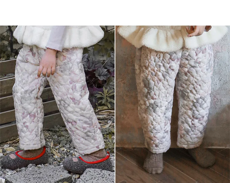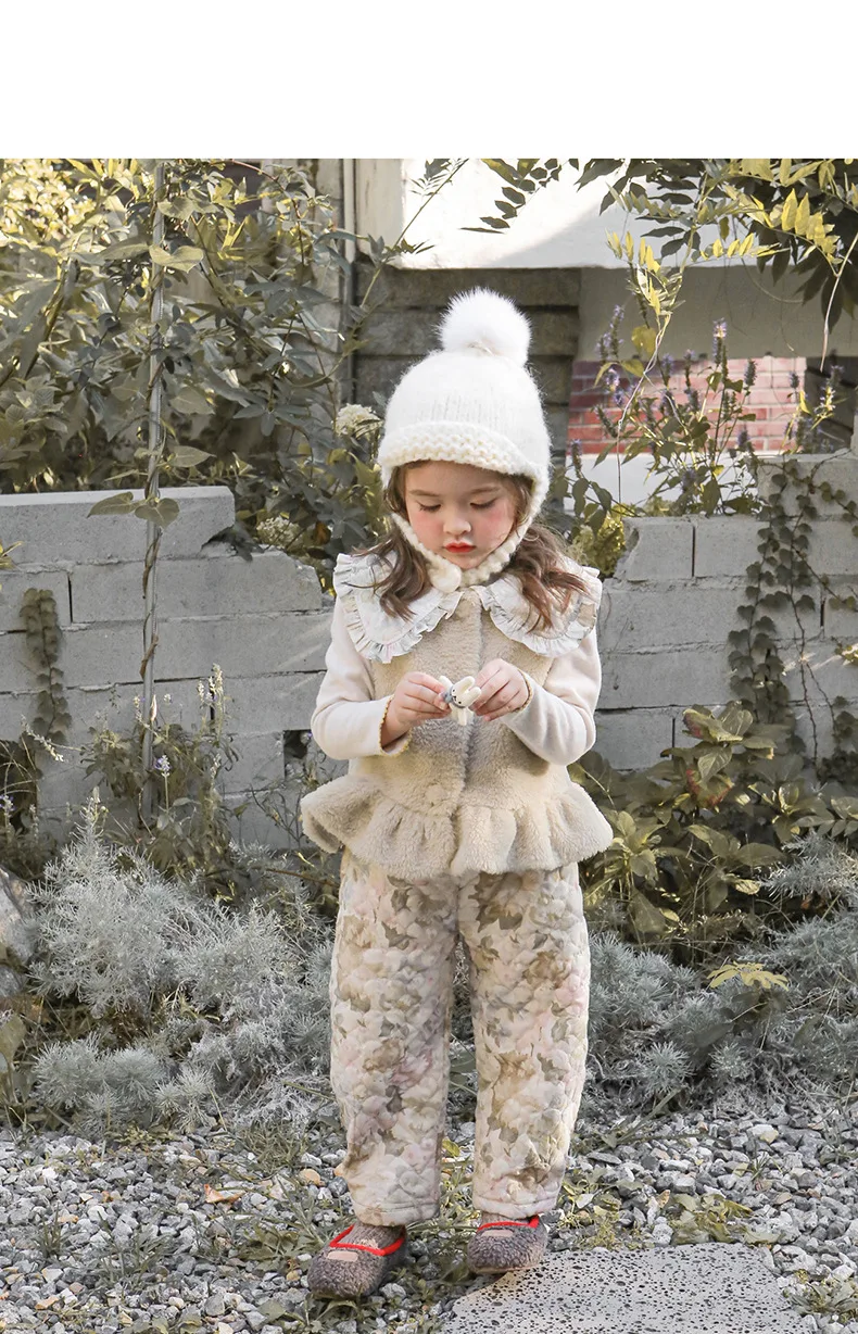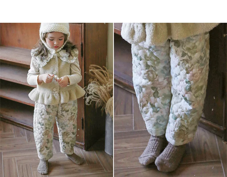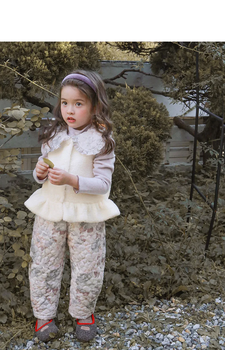 キッズ キルティング フラワー パンツ 暖パン【mh0001052】