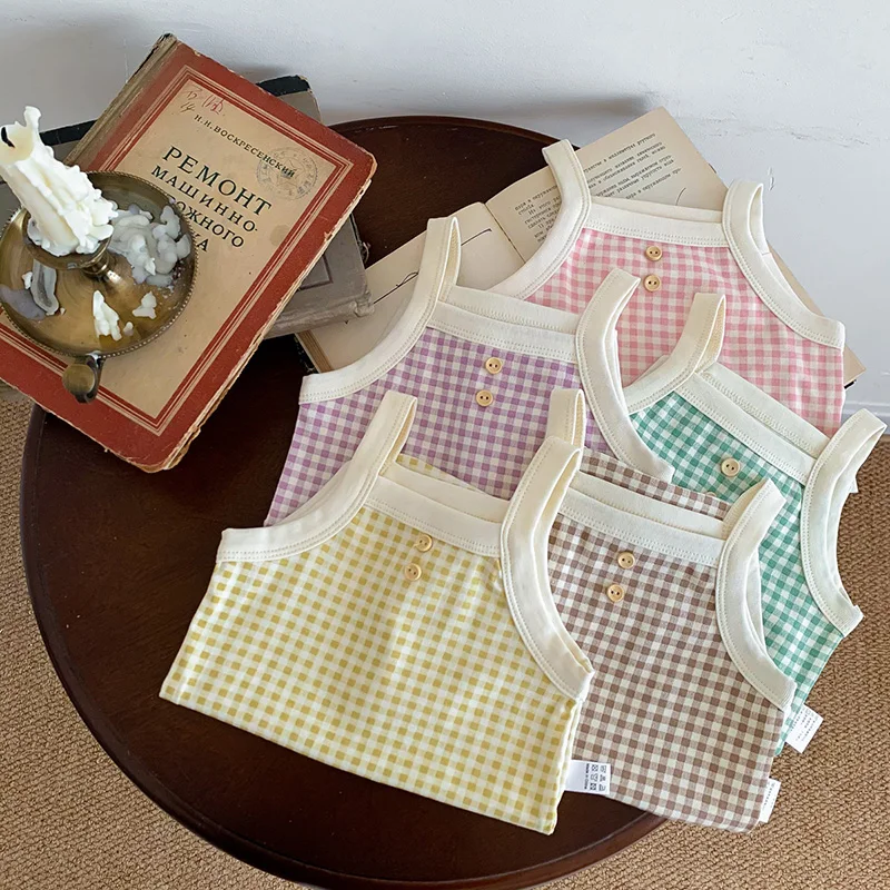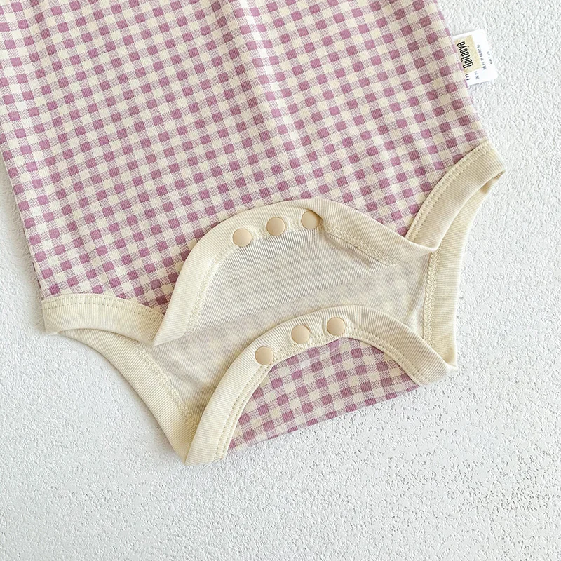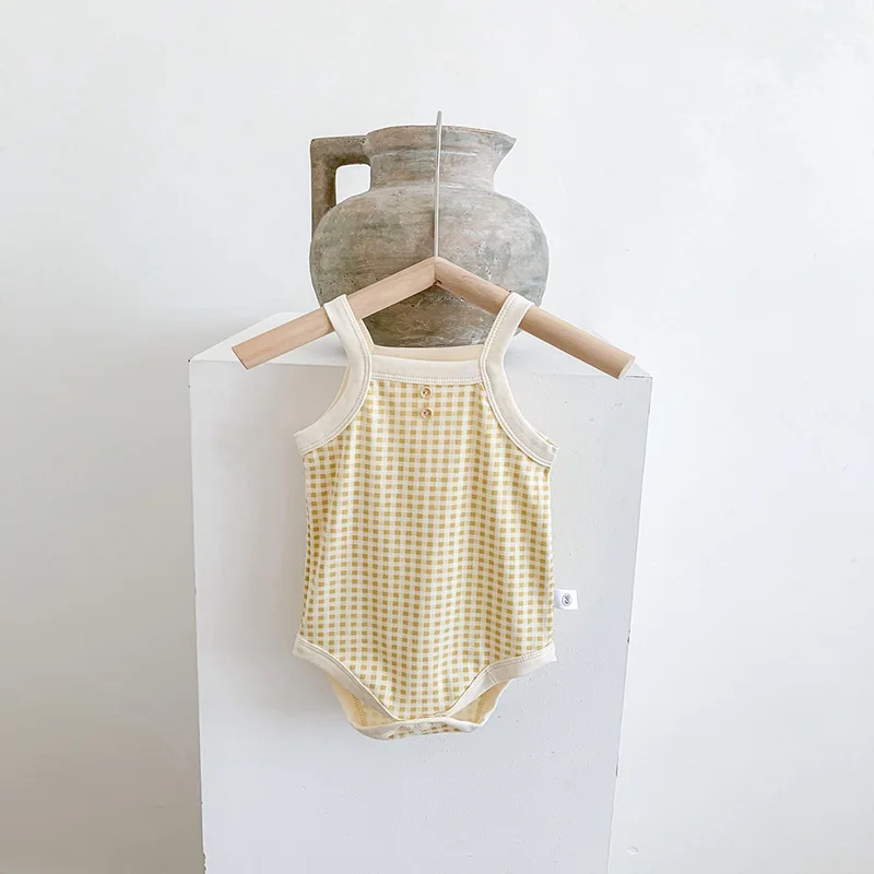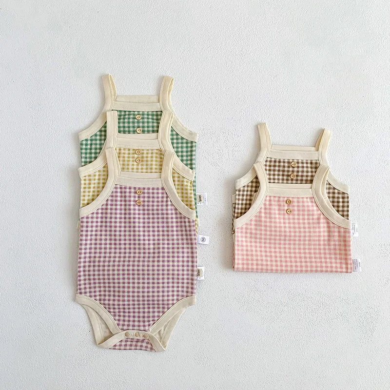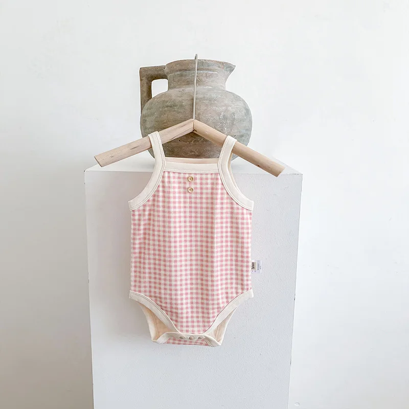 ベビー ギンガム チェック ノースリーブ キャミソール ベーシック ロンパース【mh0001676】