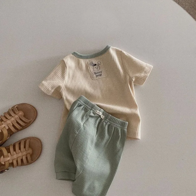 #夏のベビーセット #ラビットロゴ #半袖Tシャツ #ショートパンツ #カートゥーン #赤ちゃんファッション