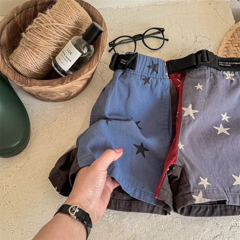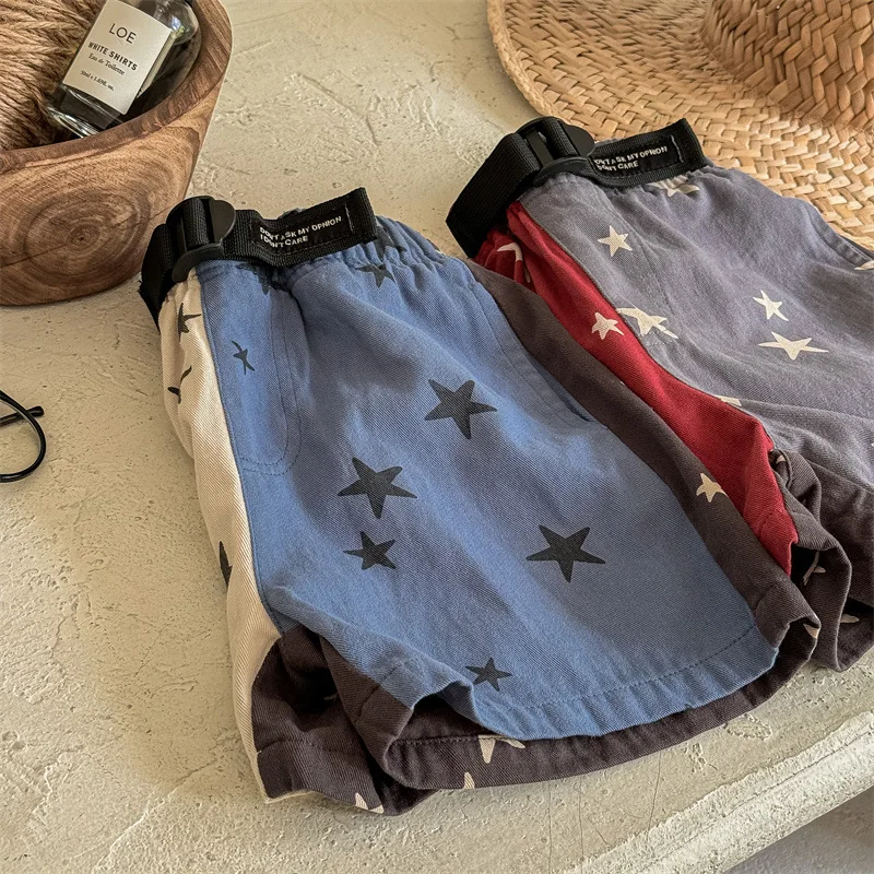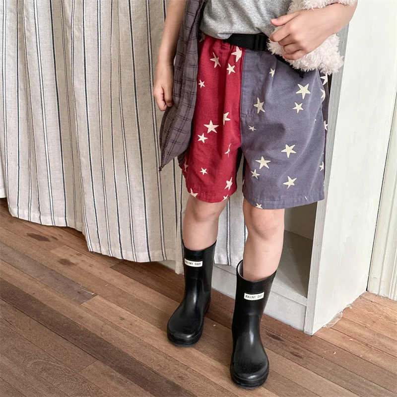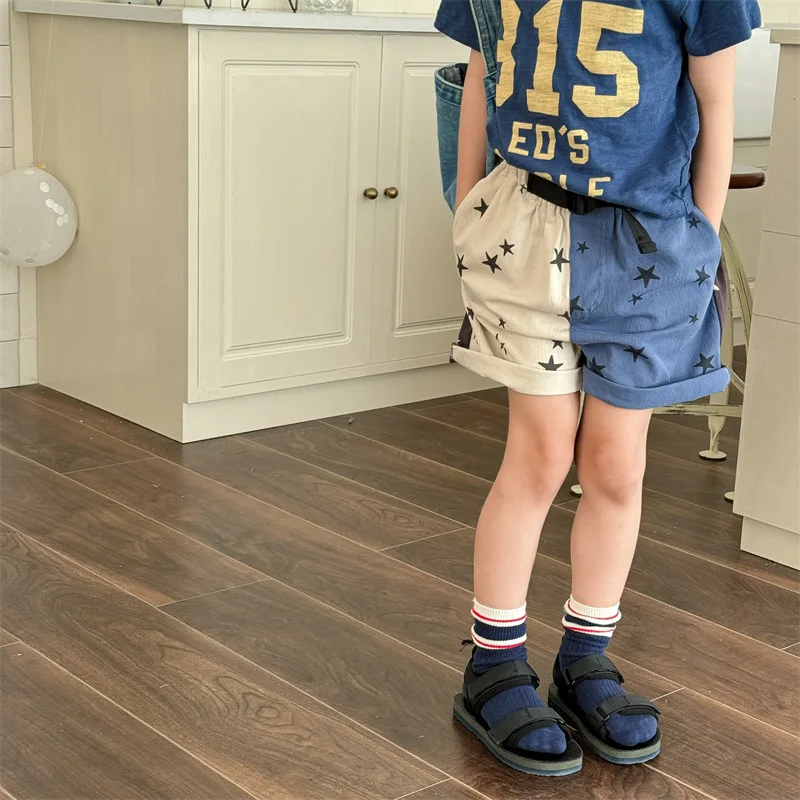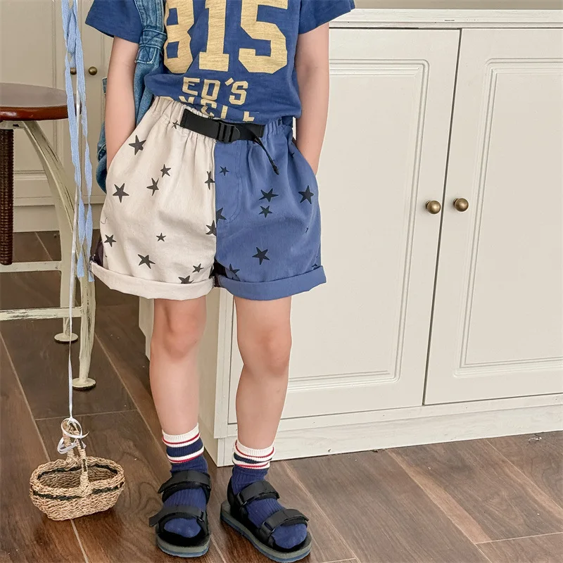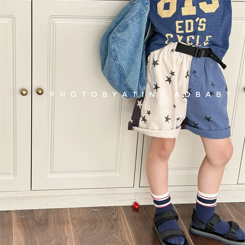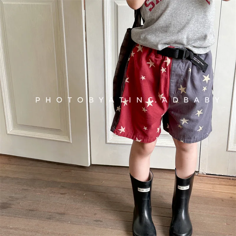 キッズパンツ 星スタープリント バイカラー パッチワーク ショートパンツ 2カラー【mh0005440】
