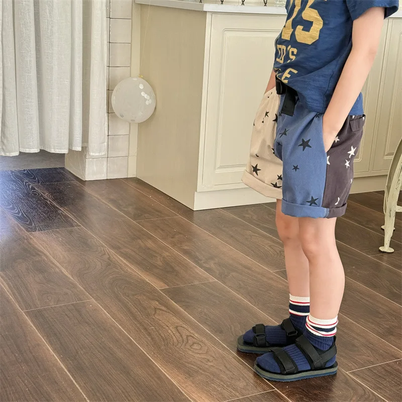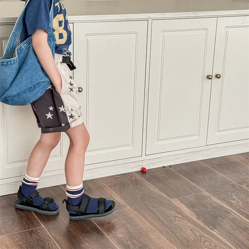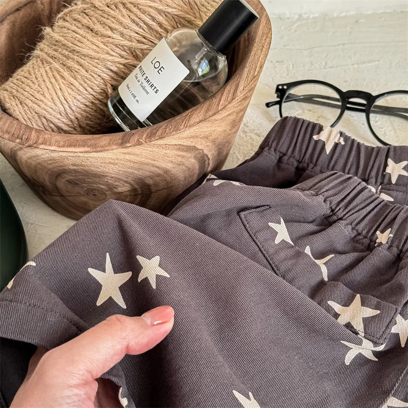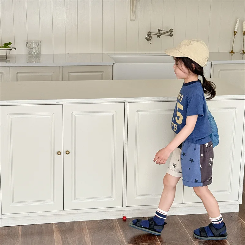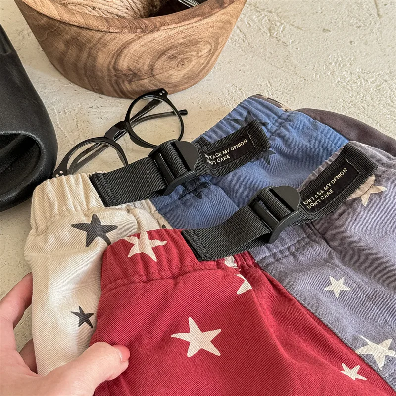 夏のおしゃれな子供服に、星スタープリントのキッズパンツが登場しました。2つのカラーバリエーションから選べます。バイカラーのデザインとパッチワークが特徴で、スタイリッシュな印象を与えます。柔らかなコットン素材で作られており、快適な着心地を提供します。キッズパンツは、カジュアルなスタイルにぴったりで、子供の活動的な日常に対応します。星柄のプリントが子供らしさを引き立て、夏のファッションにアクセントを加えます。