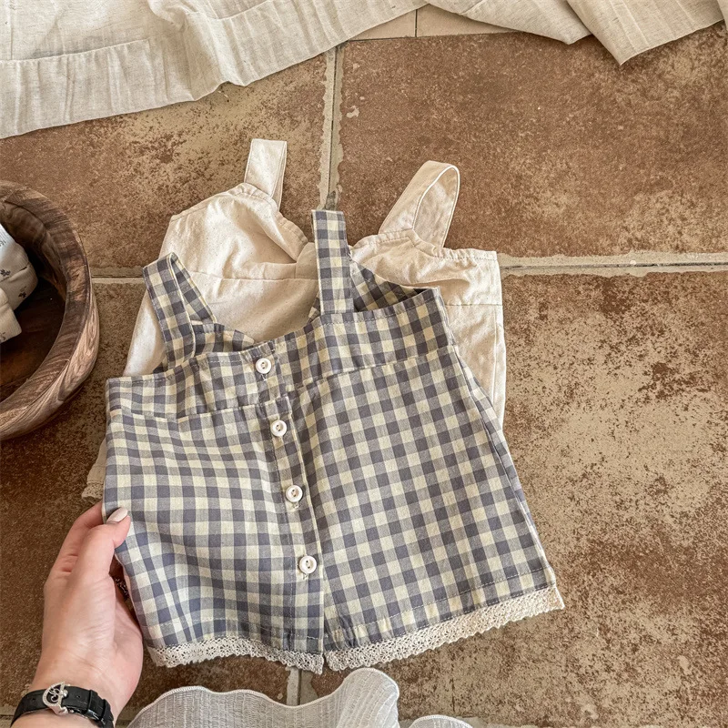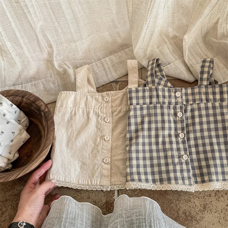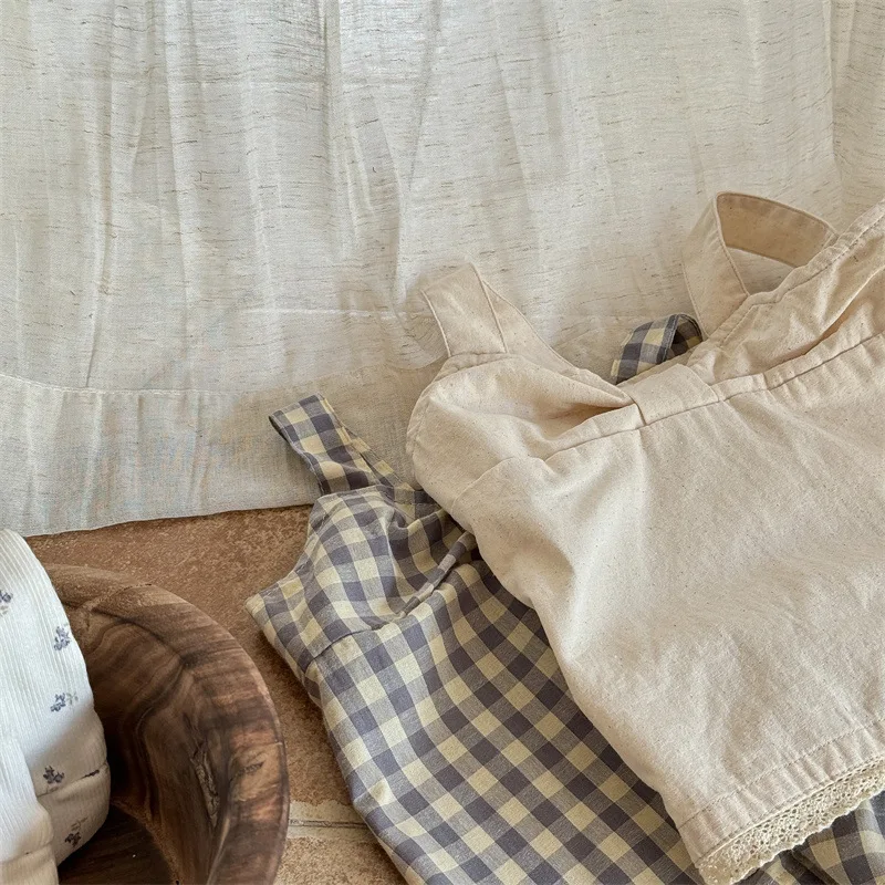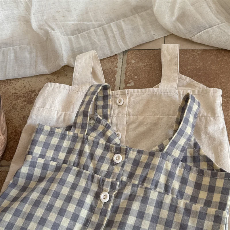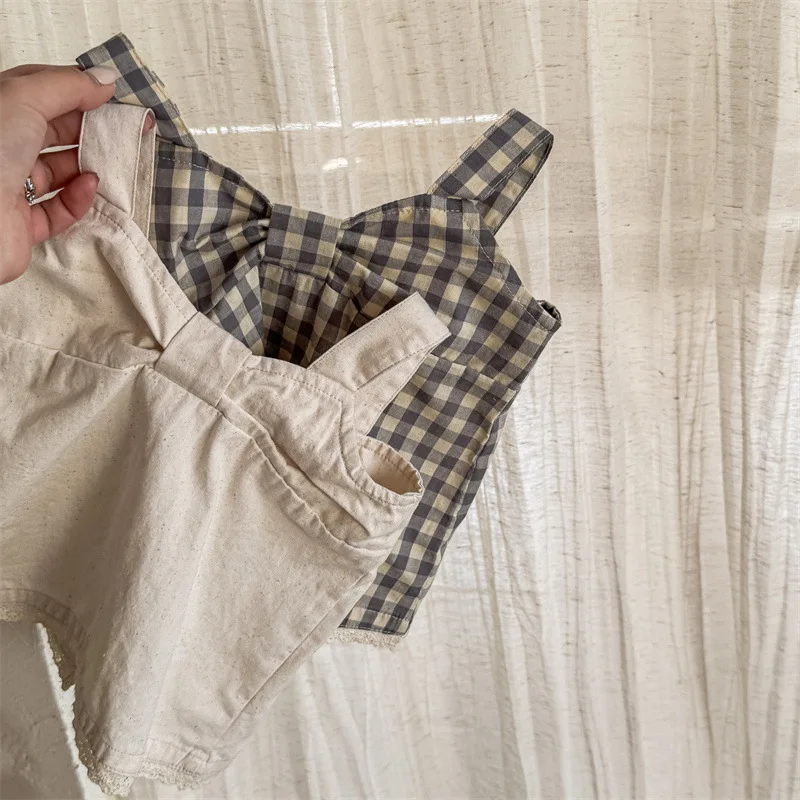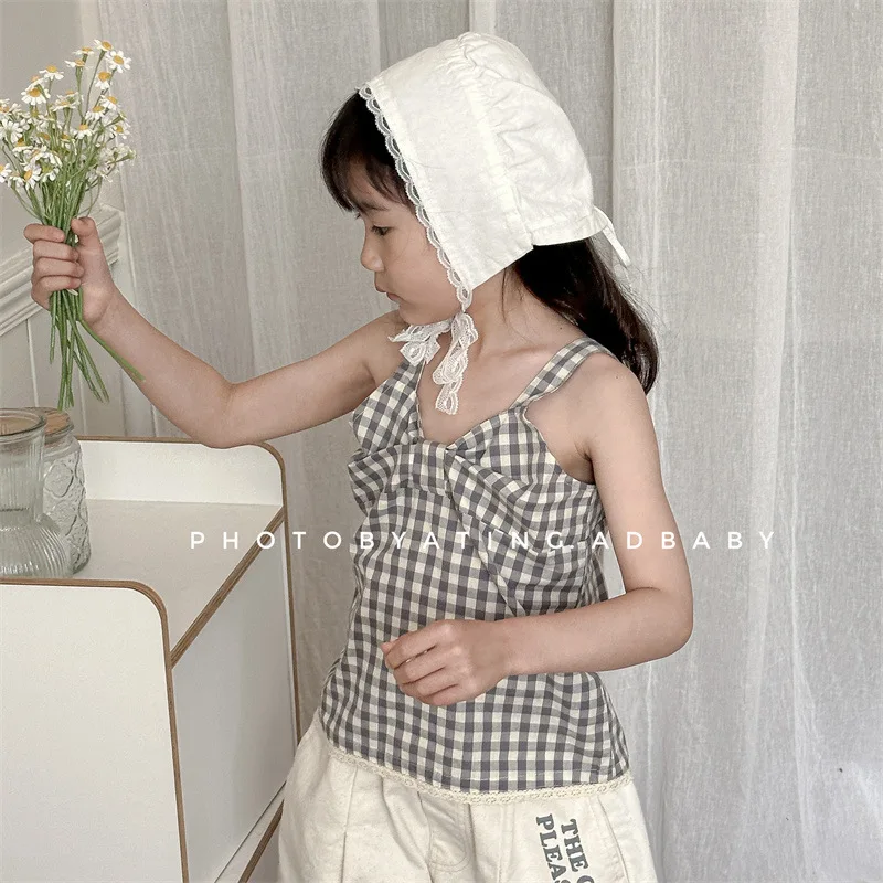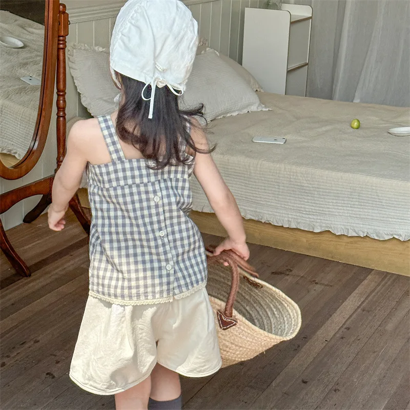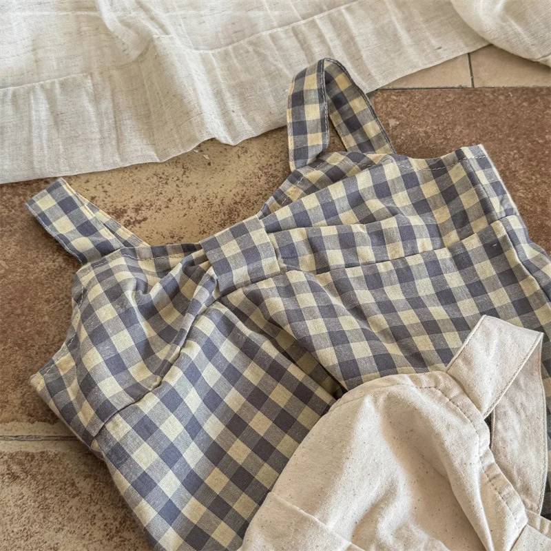 キッズトップス ノースリーブ リボンブラウス チェック/無地 2カラー【mh0005925】