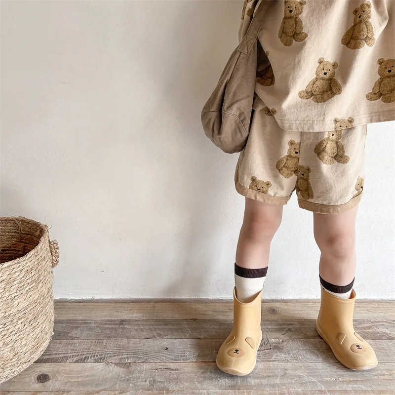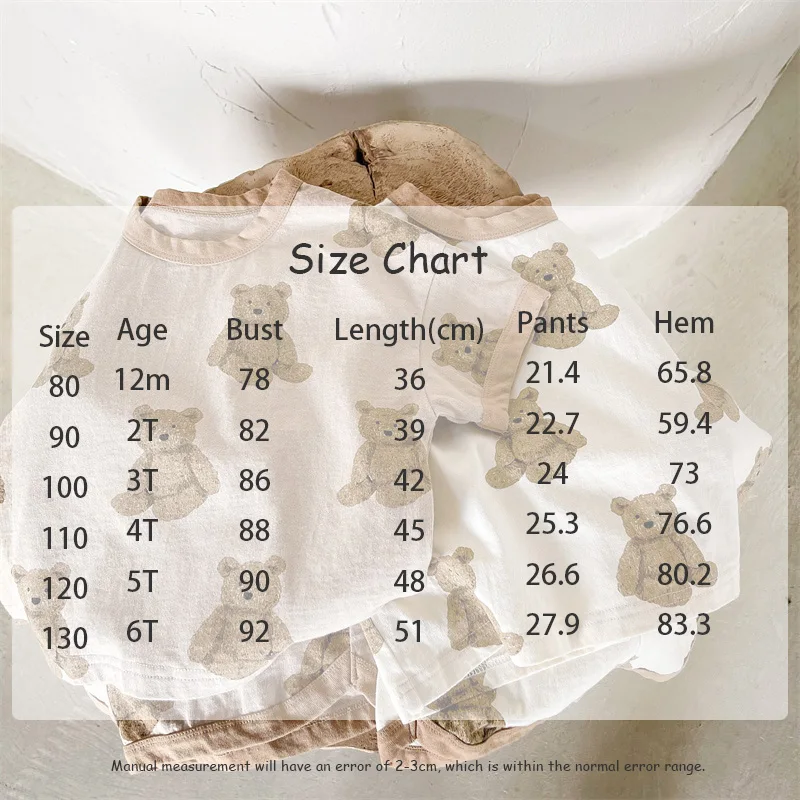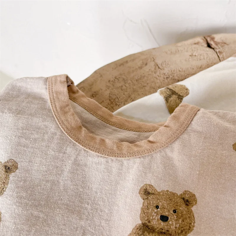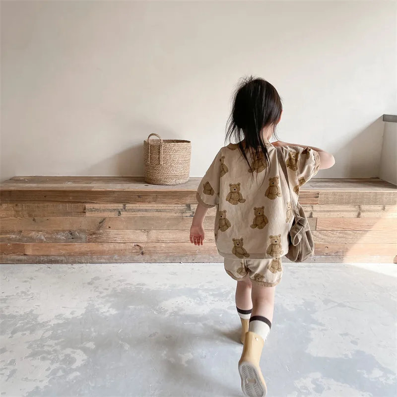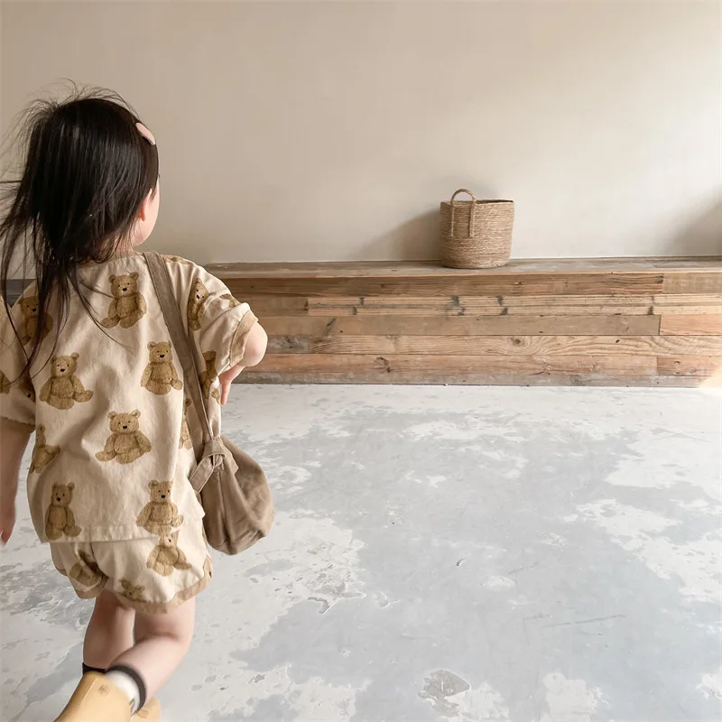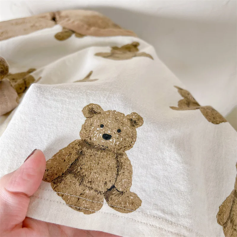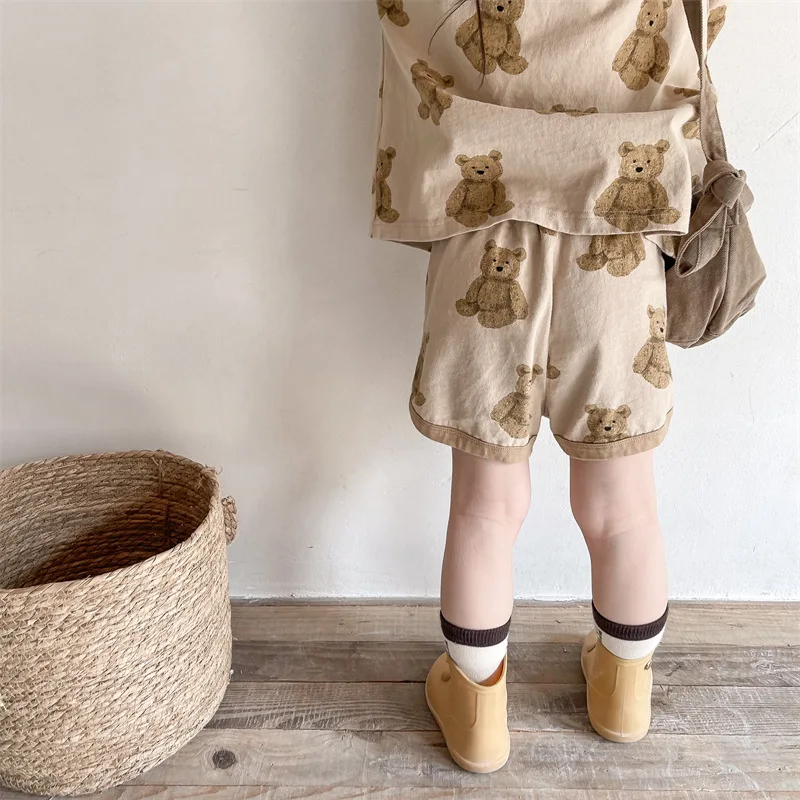 キッズセットアップ 2点セット 半袖Tシャツ+ショートパンツ ベアくまプリント 2カラー【mh0006147】