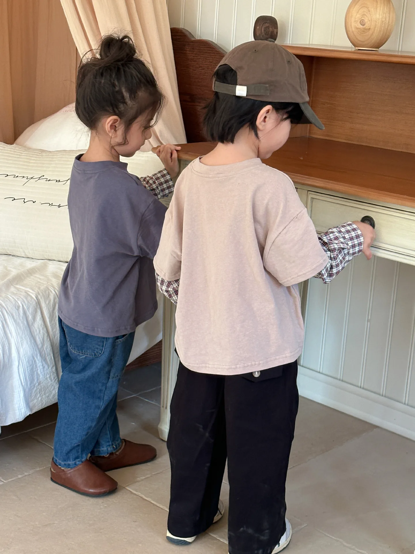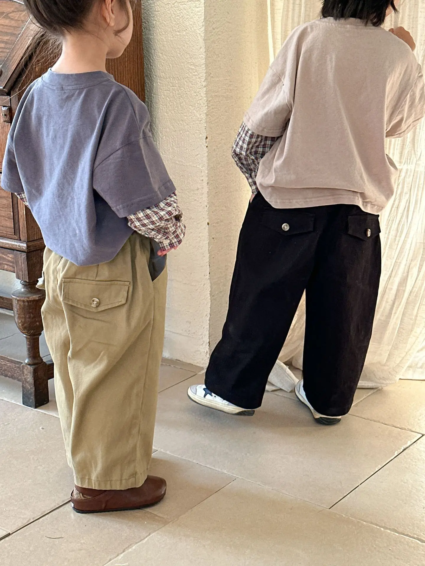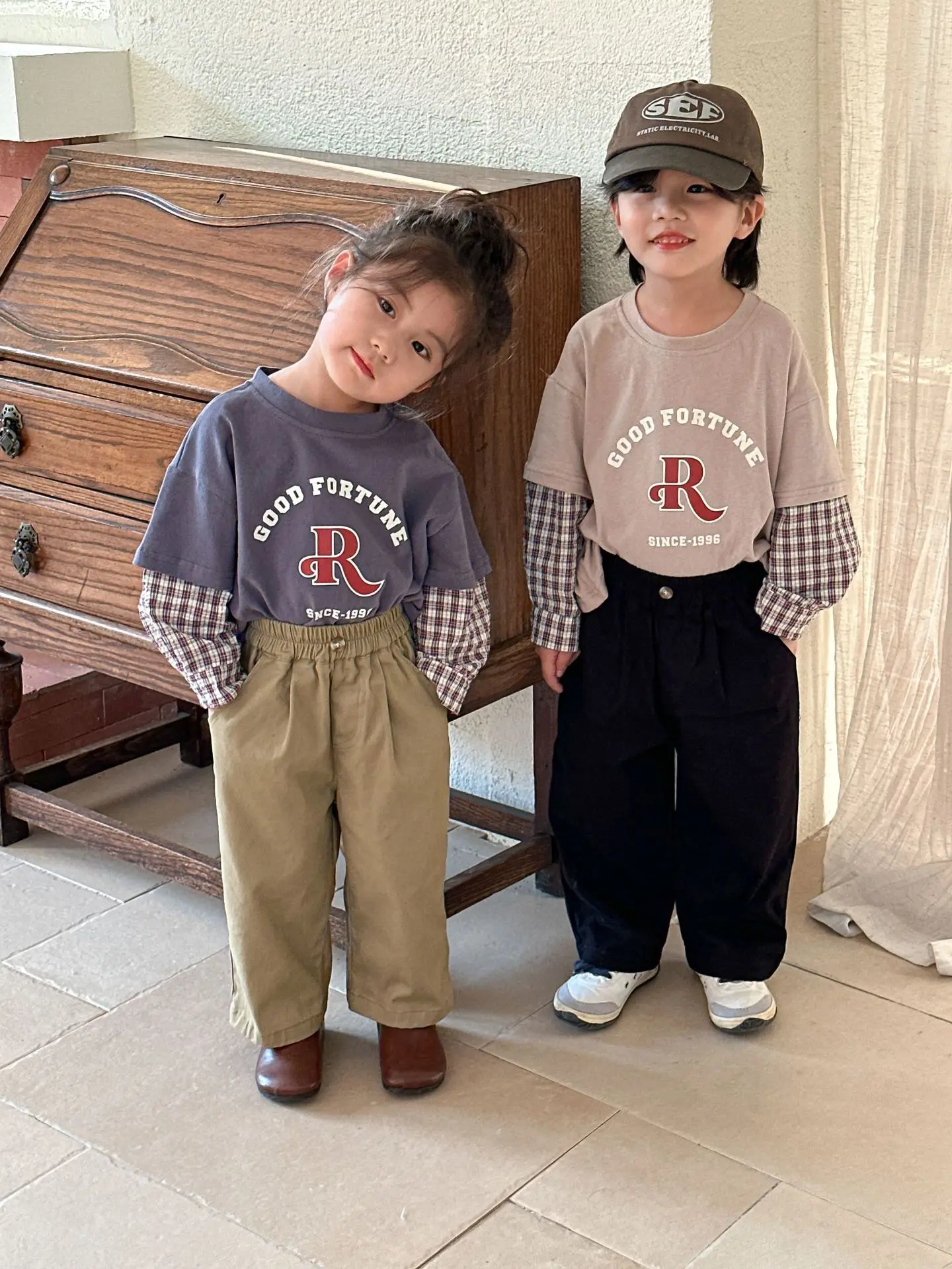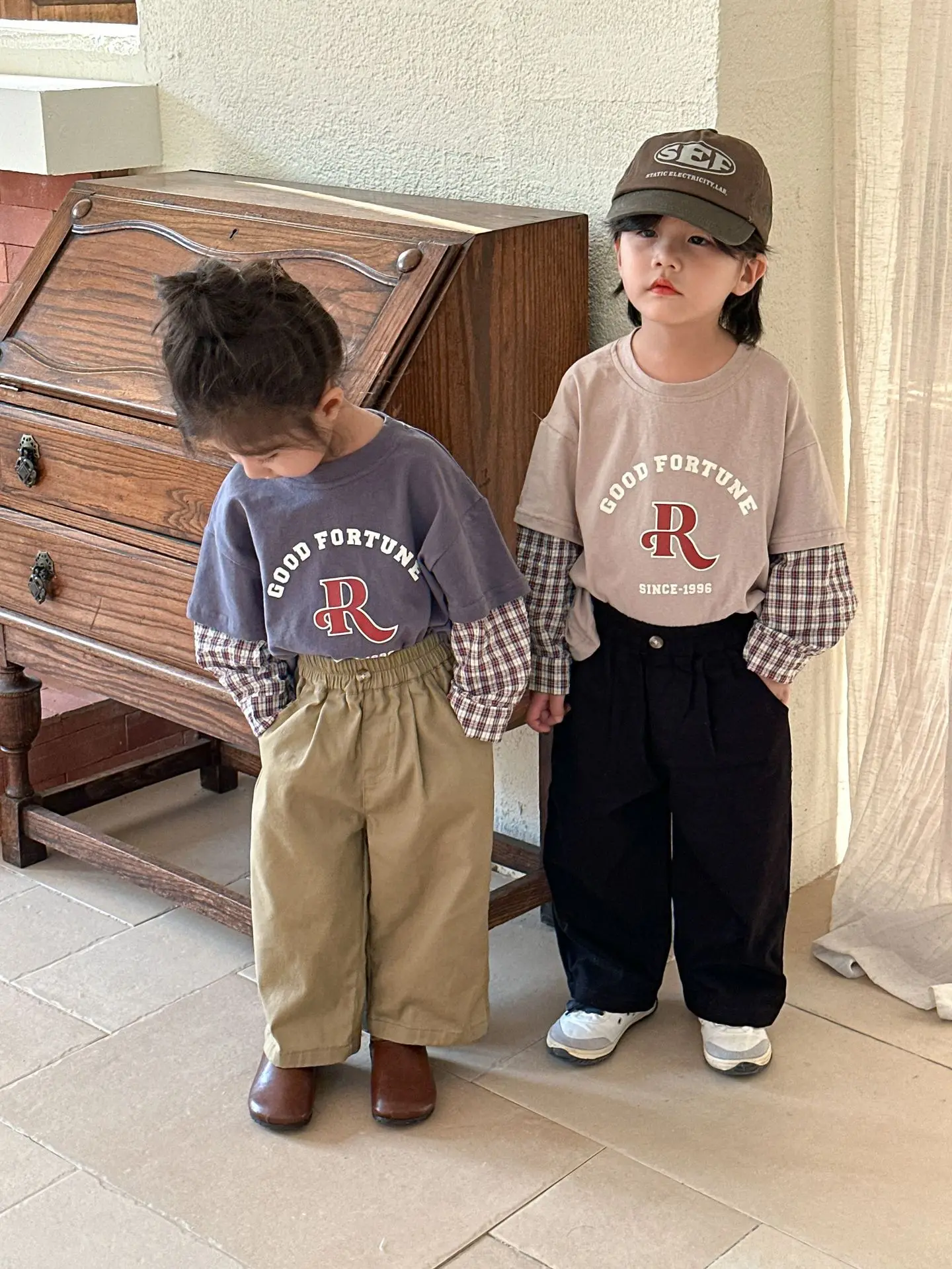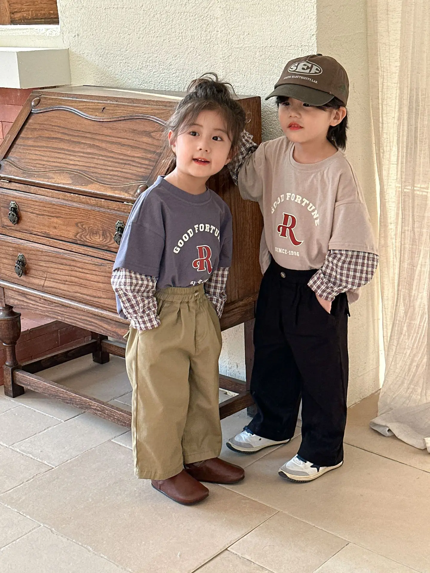 今季のトレンドを取り入れたキッズトップス。袖のパッチワークとレターロゴがアクセントの長袖ドッキングTシャツは、秋の子供服として最適。柔らかい綿素材で作られたカジュアルなトップスは、子供たちのオシャレさを引き立てます。2種類のカラーからお選びいただけます。