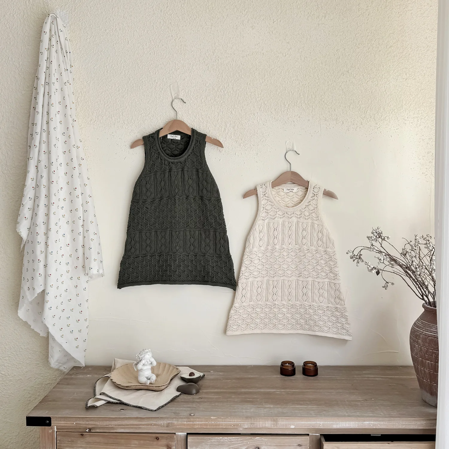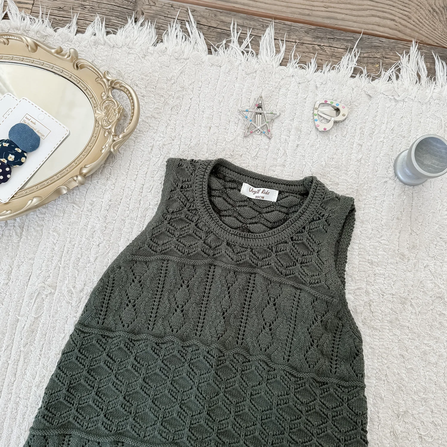 #キッズワンピース #レースニット #透け感 #ノースリーブ #韓国スタイル #秋冬コーデ #カジュアルドレス #子供服