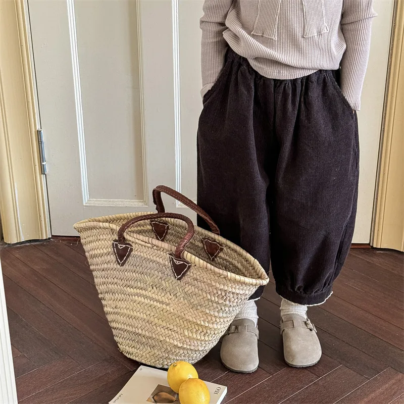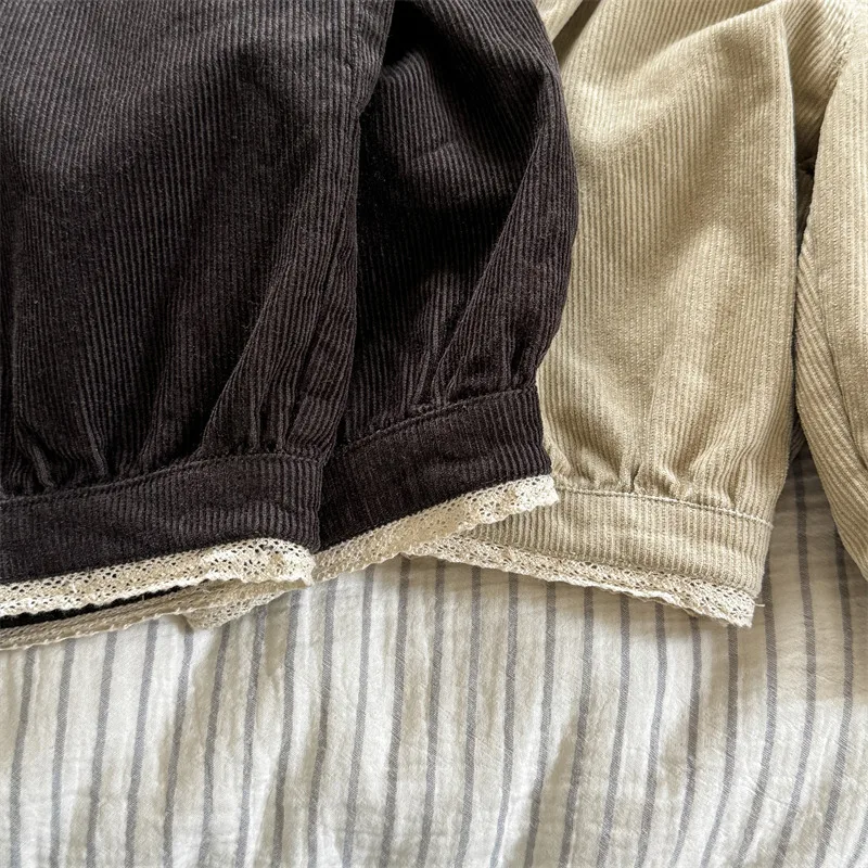 柔らかいコーデュロイ素材に裾レースがあしらわれたバルーンパンツ。2カラー展開で、どちらも上品でガーリーな印象を与えます。ワイドシルエットが動きやすさを確保しつつ、カジュアルな装いにもマッチするデザイン。キッズの普段着に華やかさをプラスする一枚です。