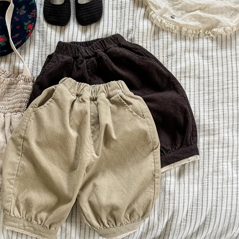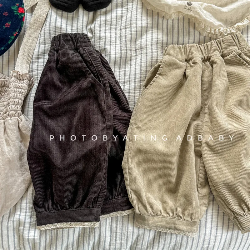 キッズパンツ コーデュロイ裾レースバルーンパンツ 2カラー【mh0006907】