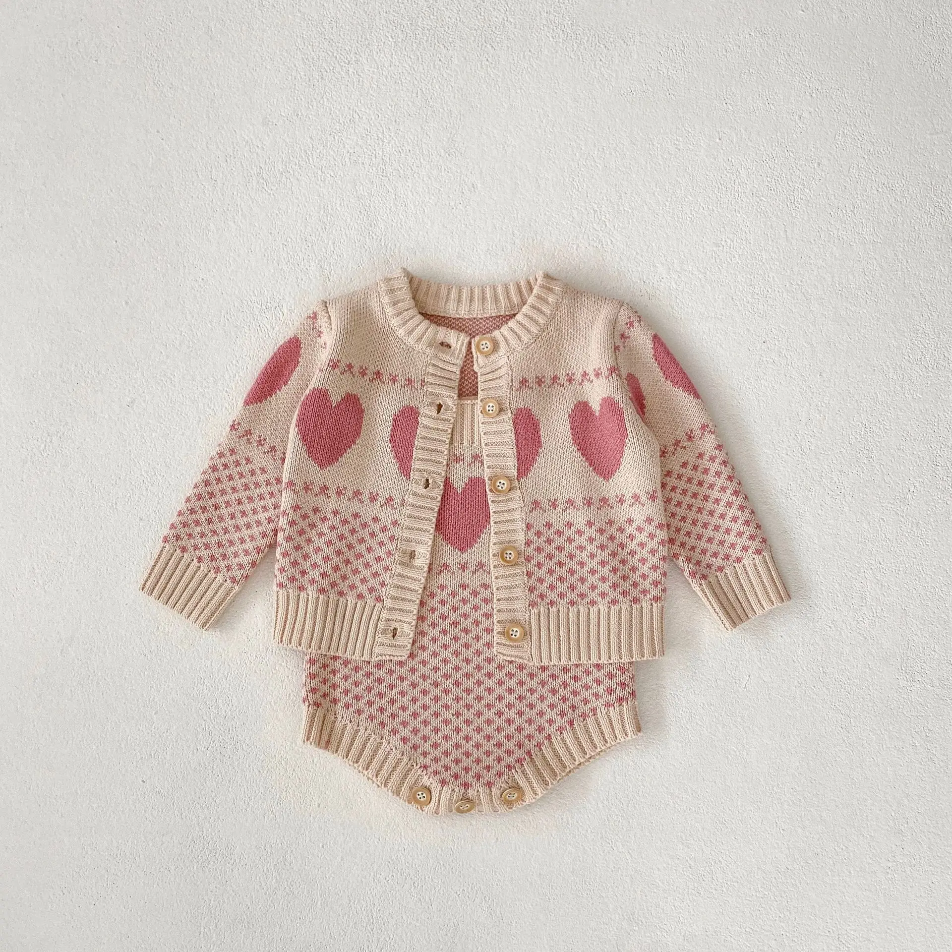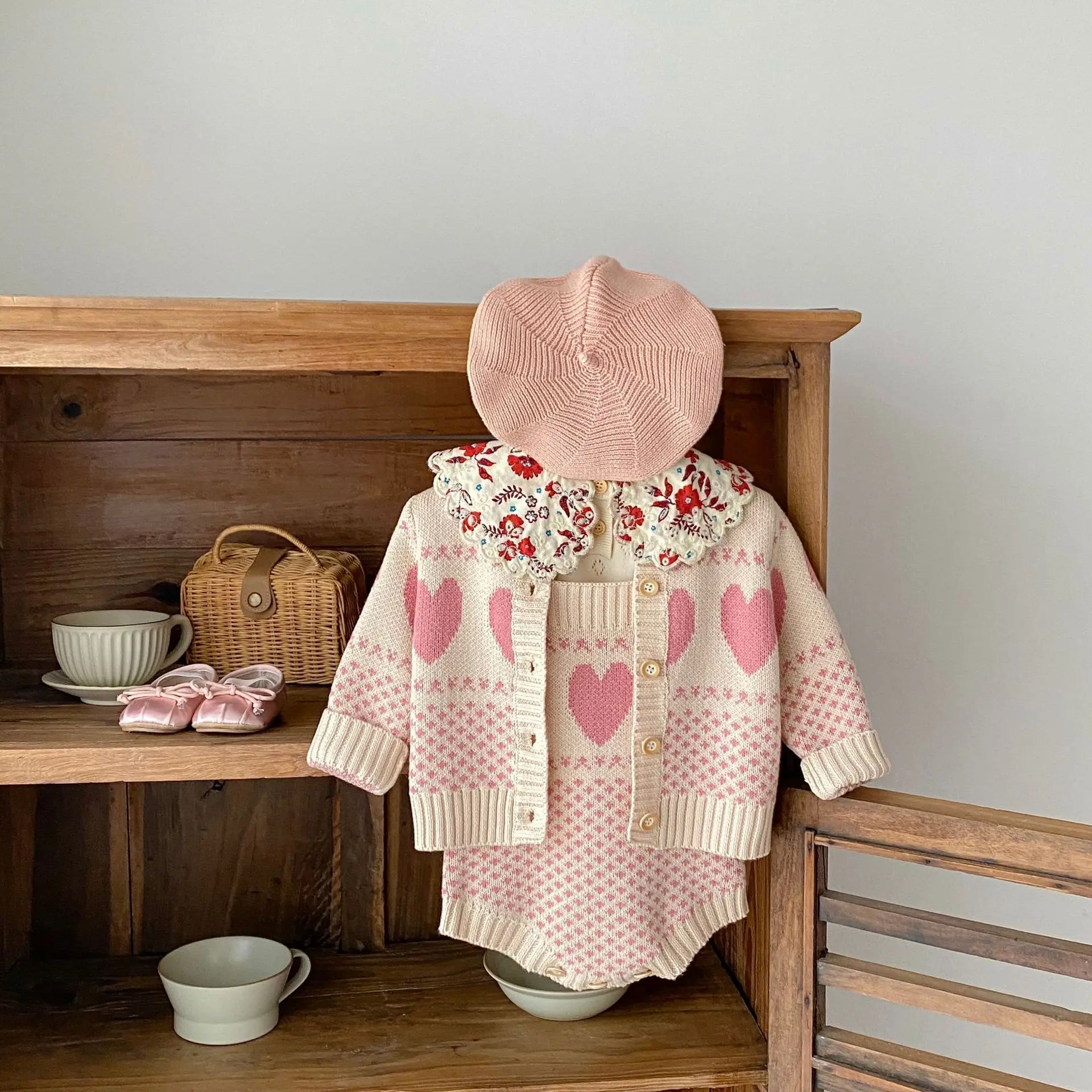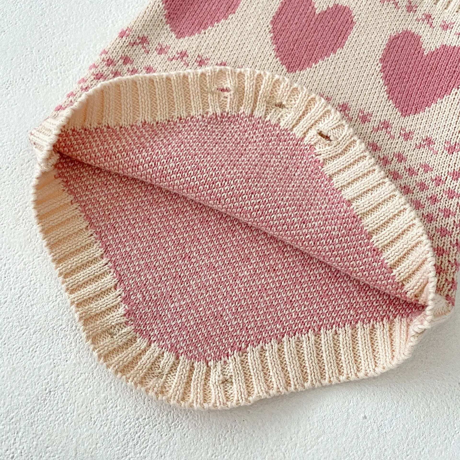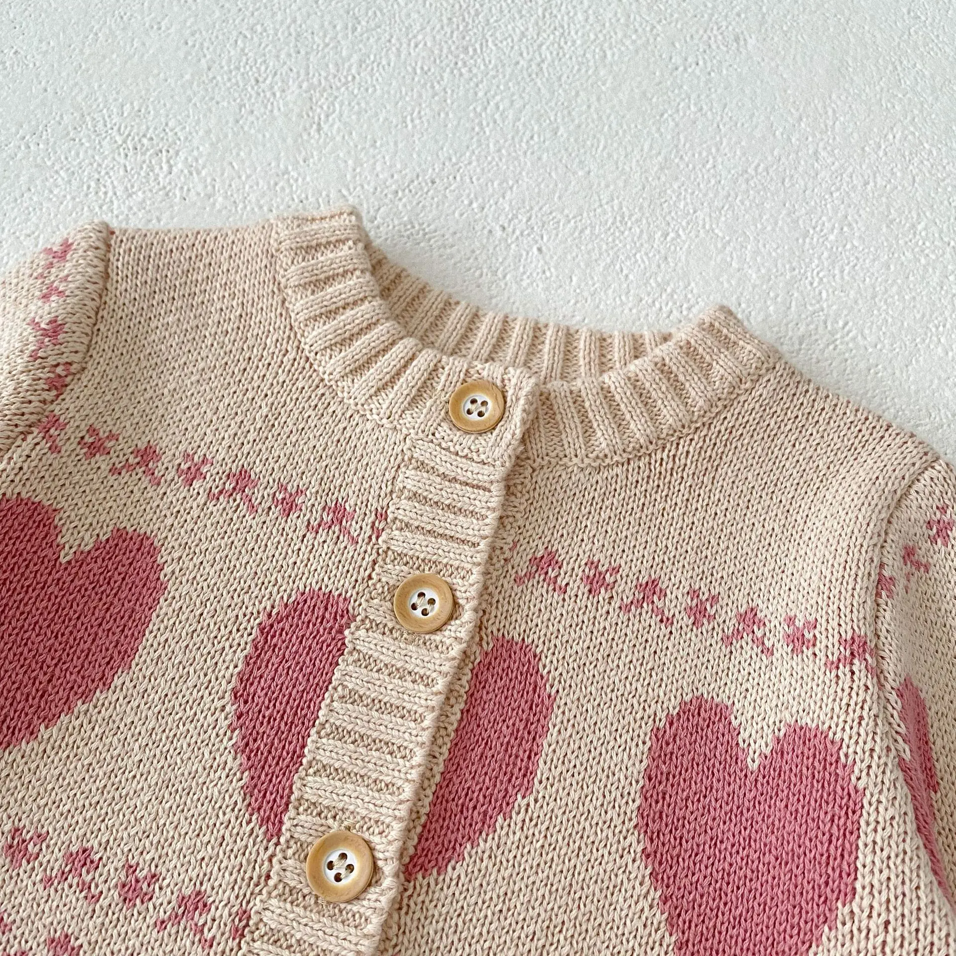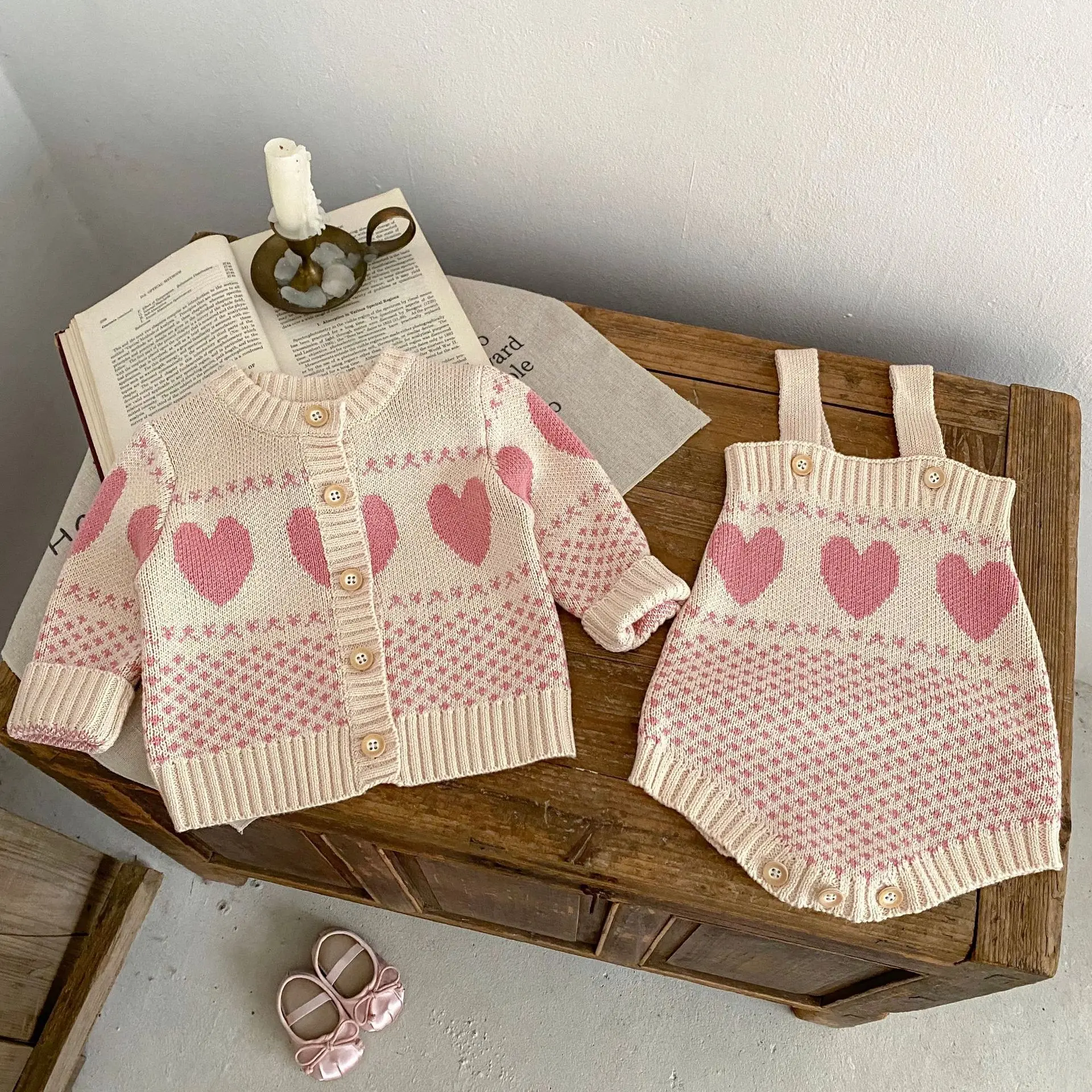 ベビーカーディガン/ロンパース ハート柄ニットカーディガン/サスペンダーロンパース【mh0007345】