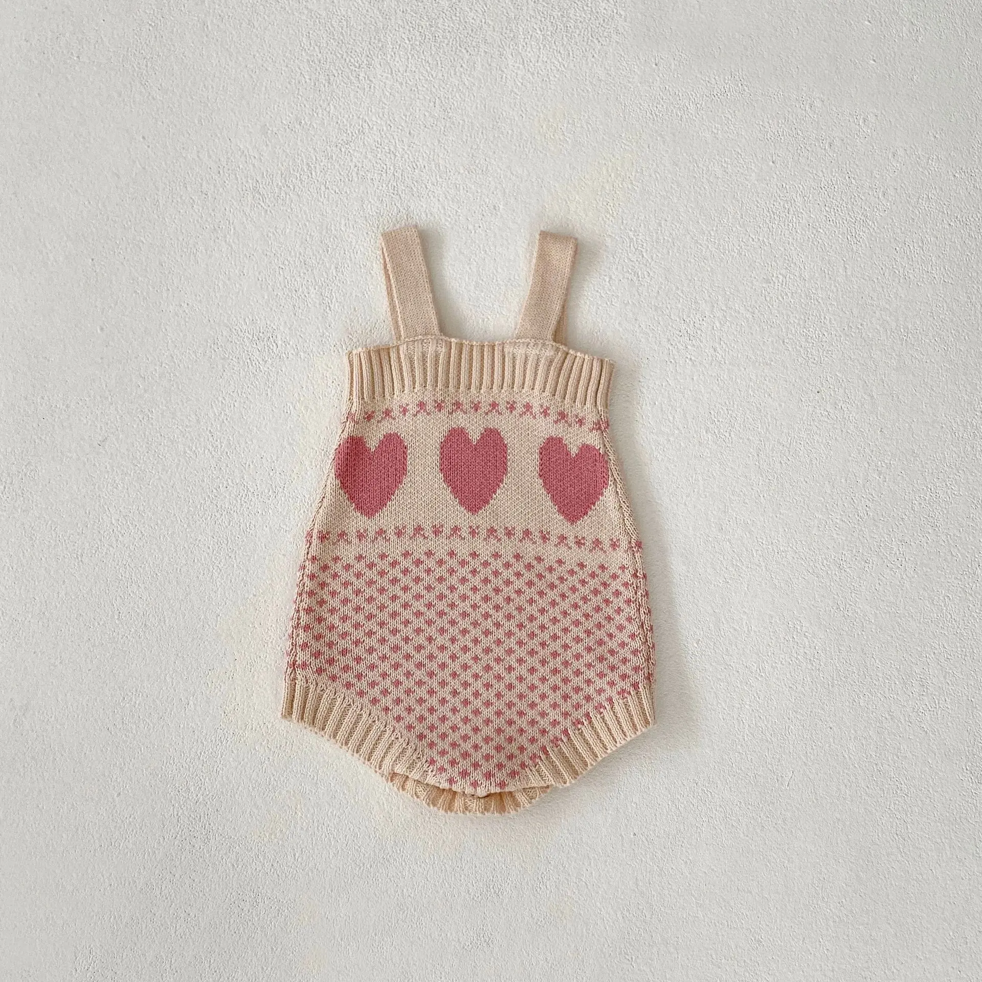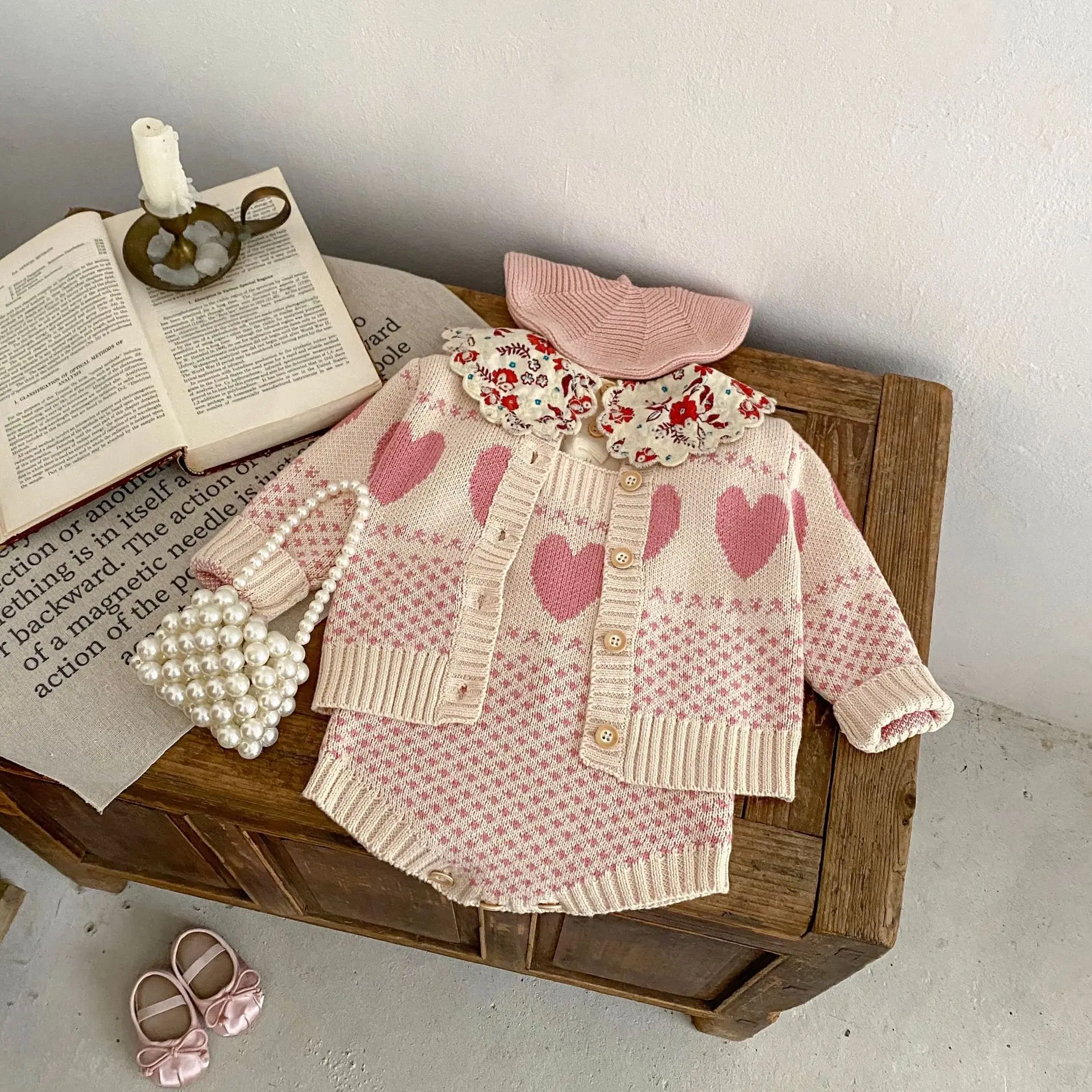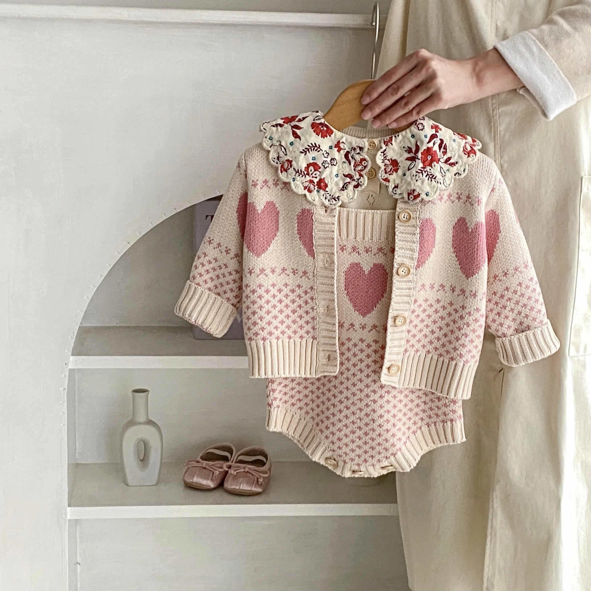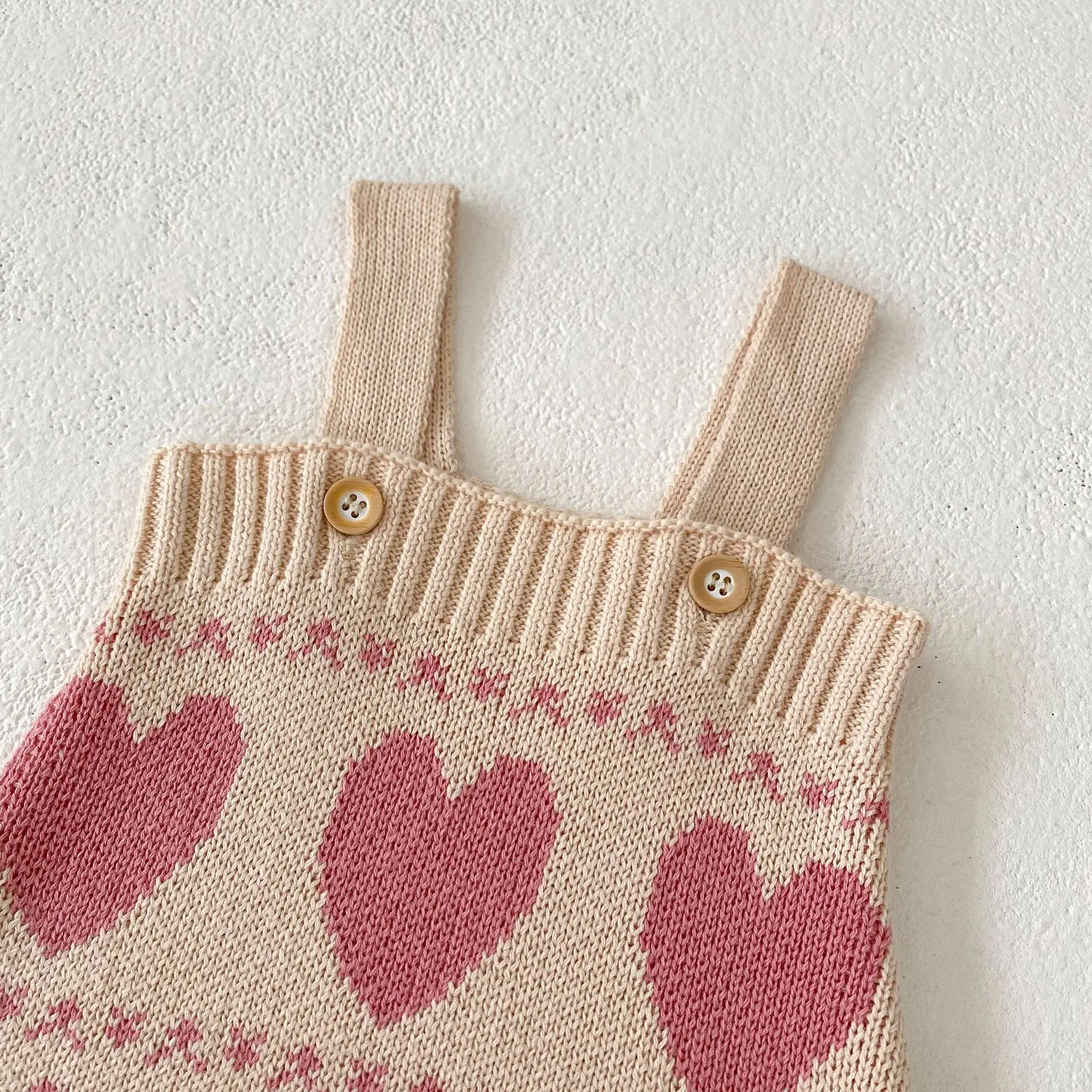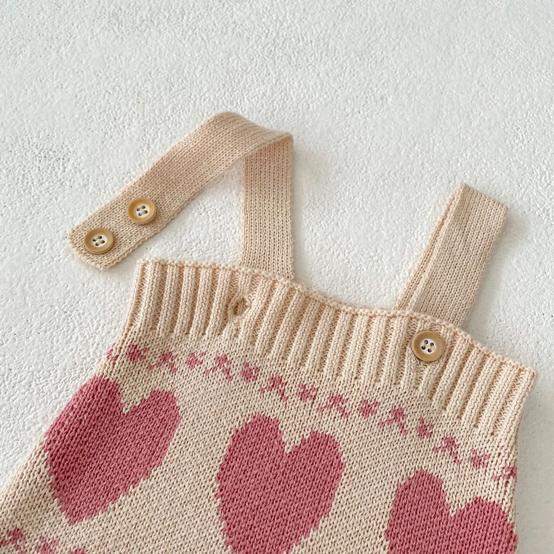 ベビーカーディガン/ロンパース ハート柄ニットカーディガン/サスペンダーロンパース【mh0007345】