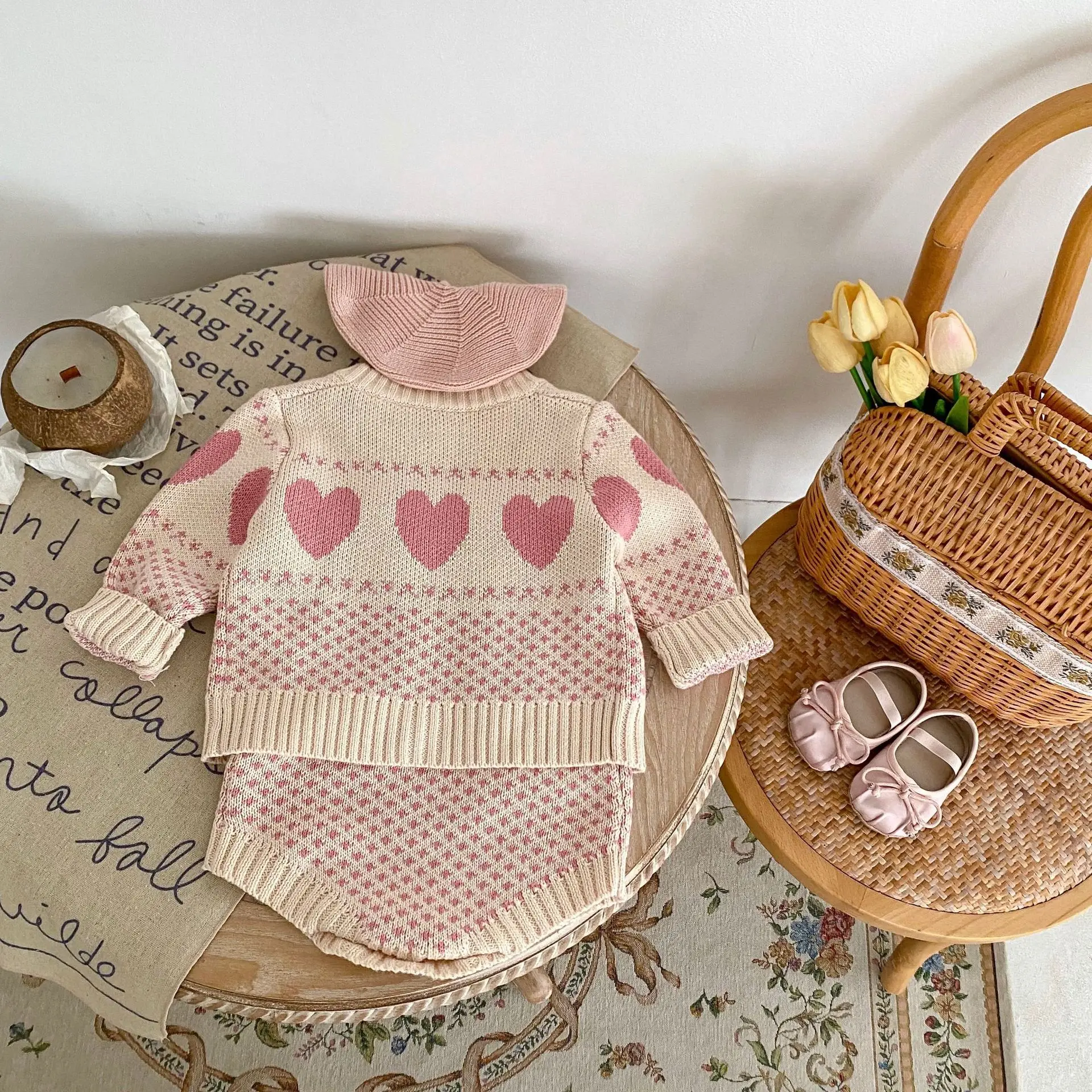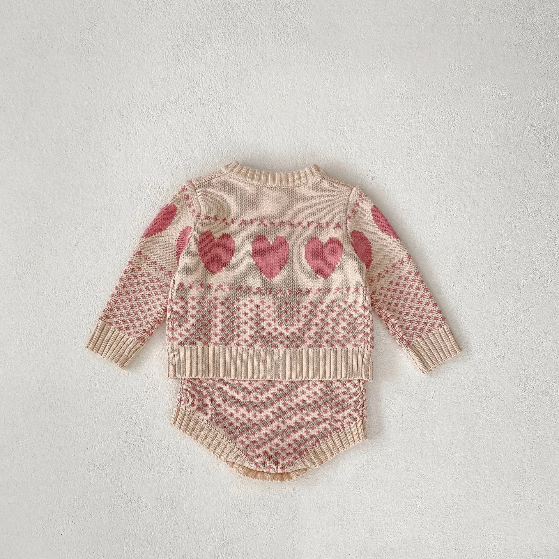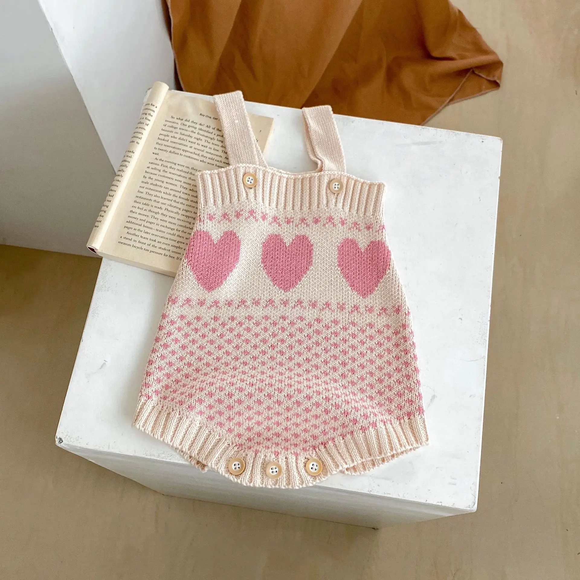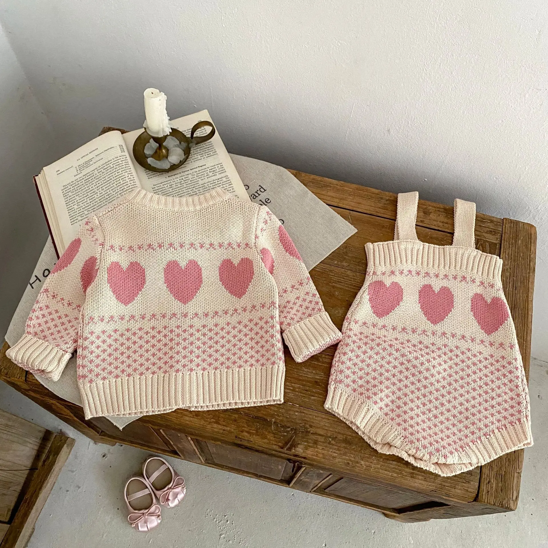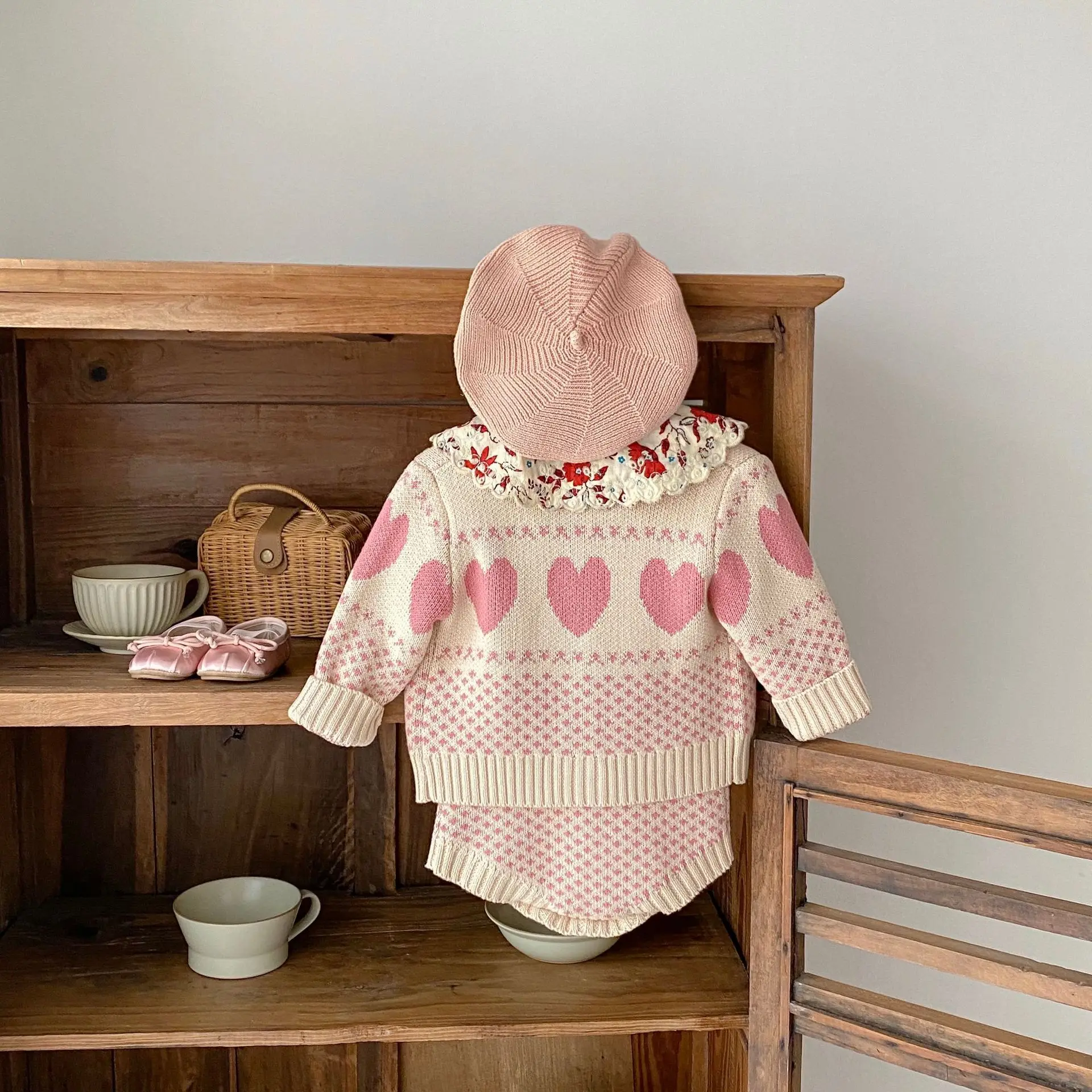 ベビーカーディガン/ロンパース ハート柄ニットカーディガン/サスペンダーロンパース【mh0007345】