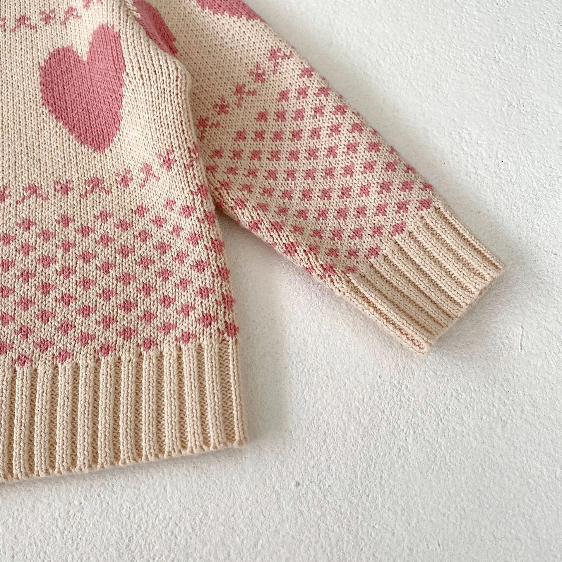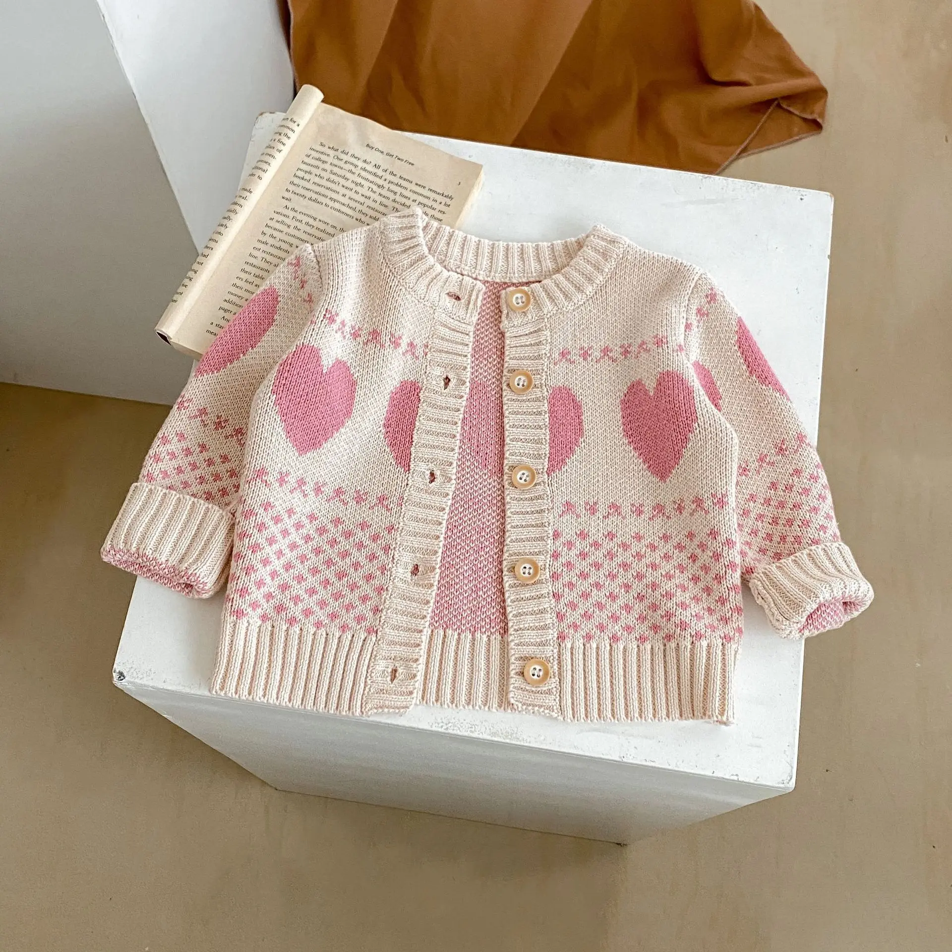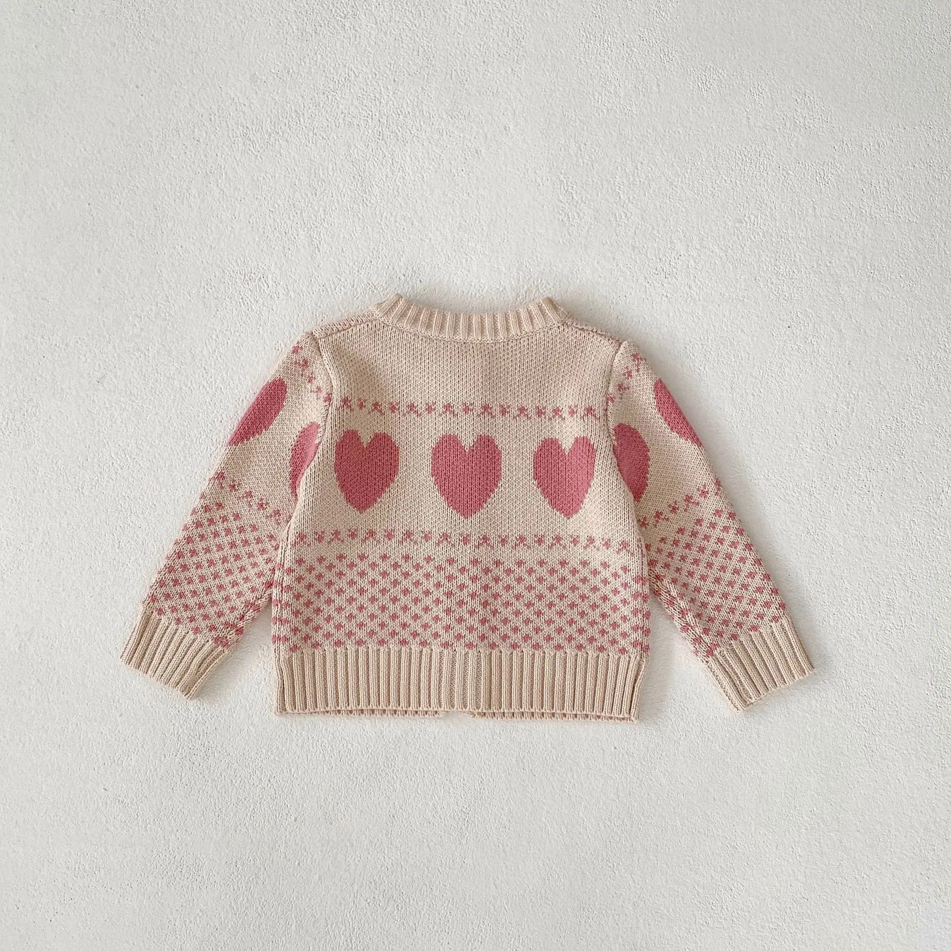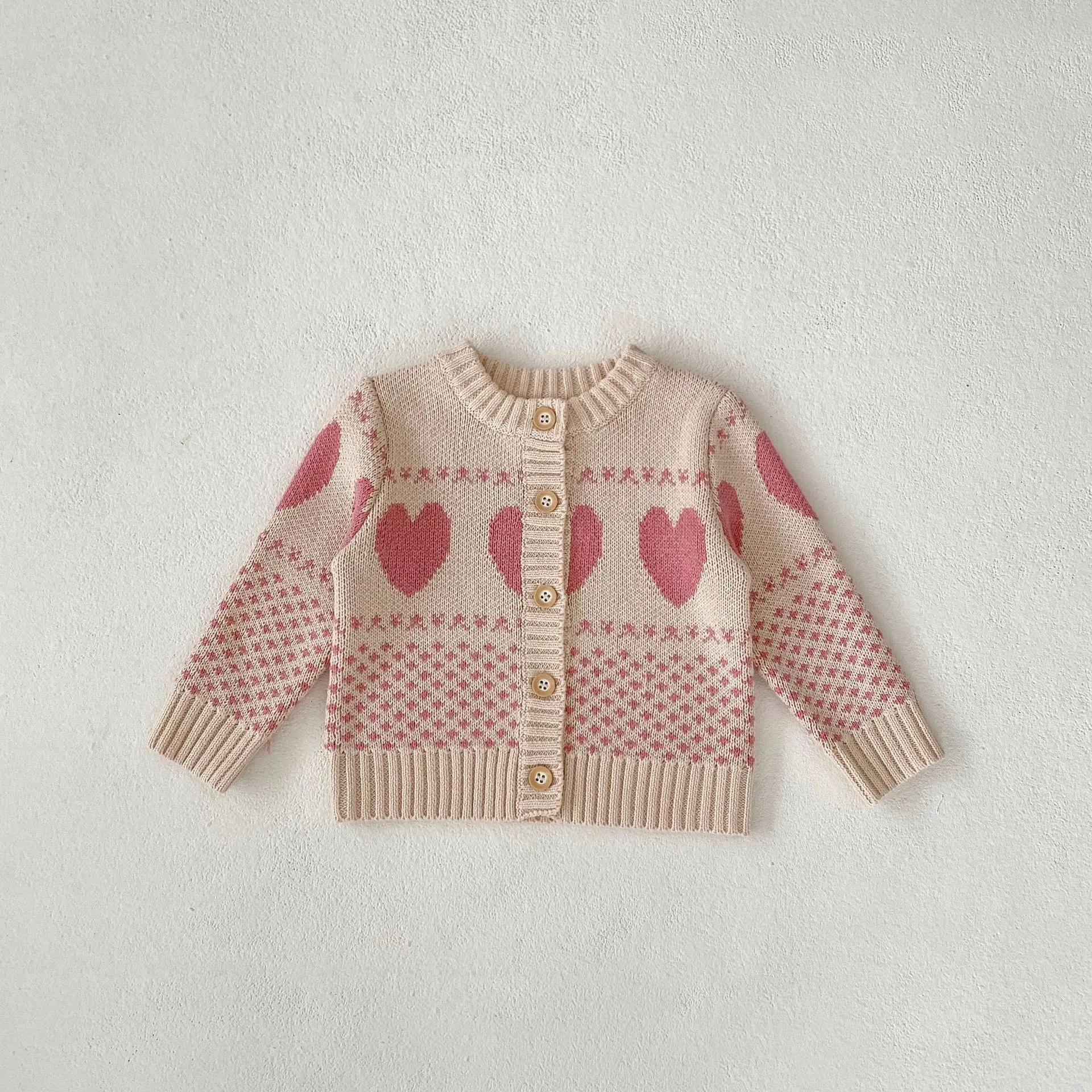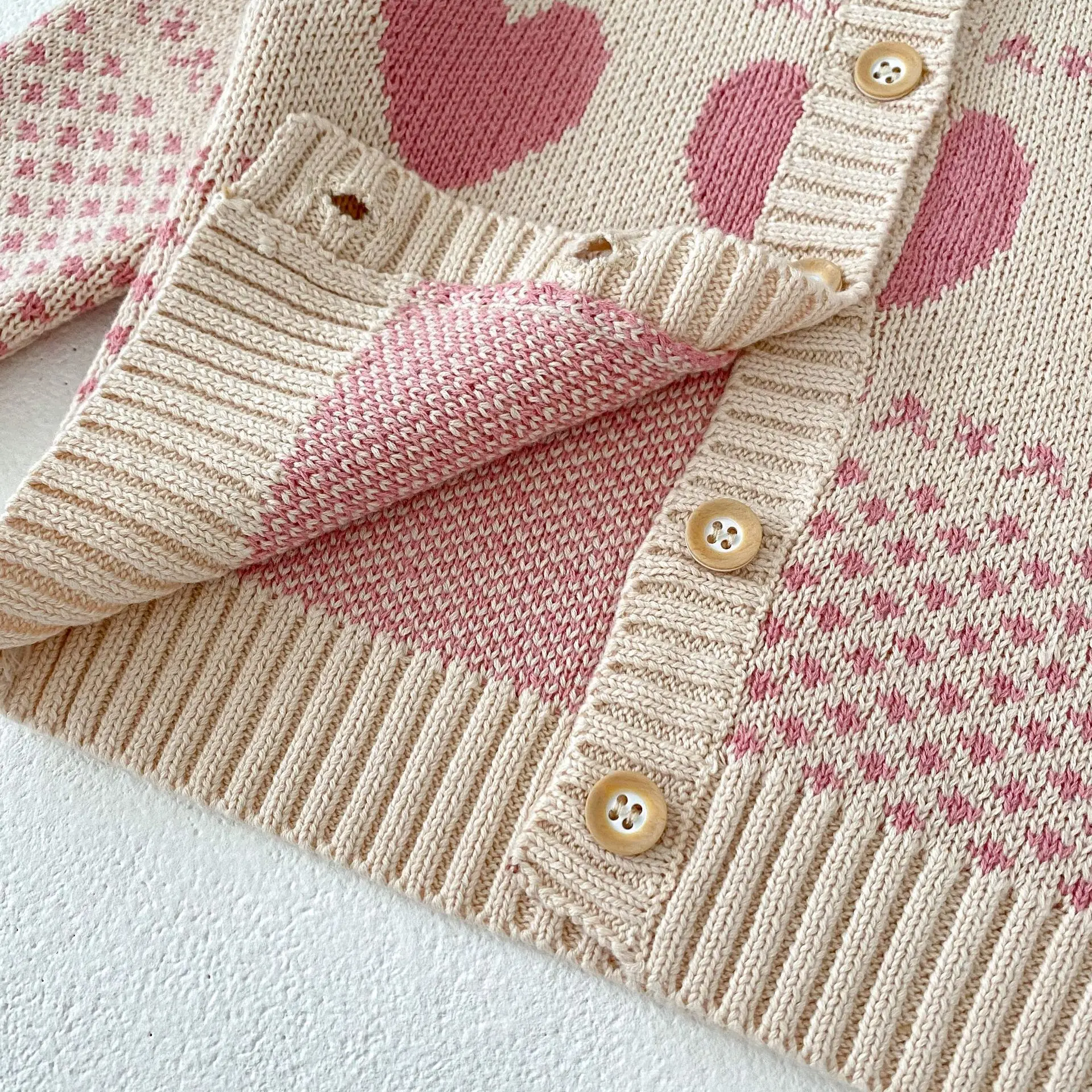 ベビーカーディガン/ロンパース ハート柄ニットカーディガン/サスペンダーロンパース【mh0007345】