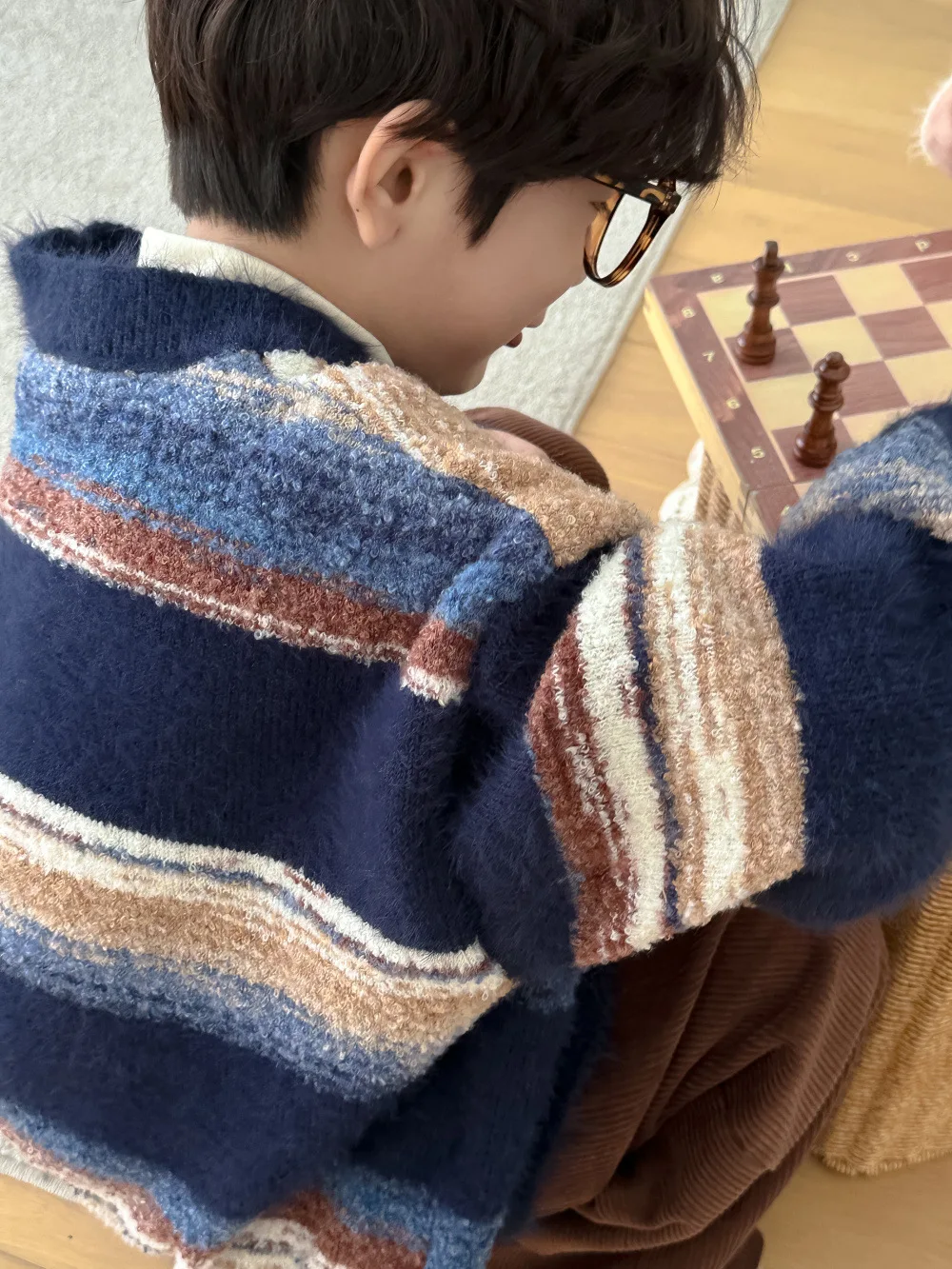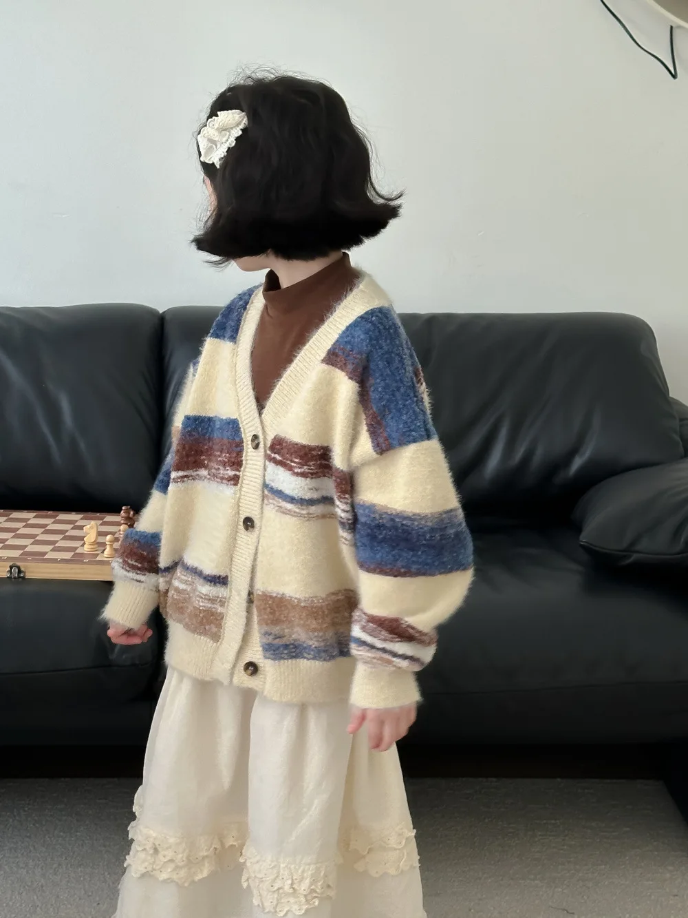 キッズカーディガン カラフルボーダーVネックニットジャケット 2カラー【mh0007368】