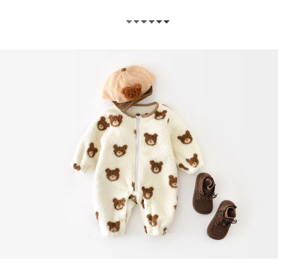 #ベビー服 #キッズファッション #くま柄 #ファーフリース #ジップアップロンパース #韓国子供服 #冬用セットアップ