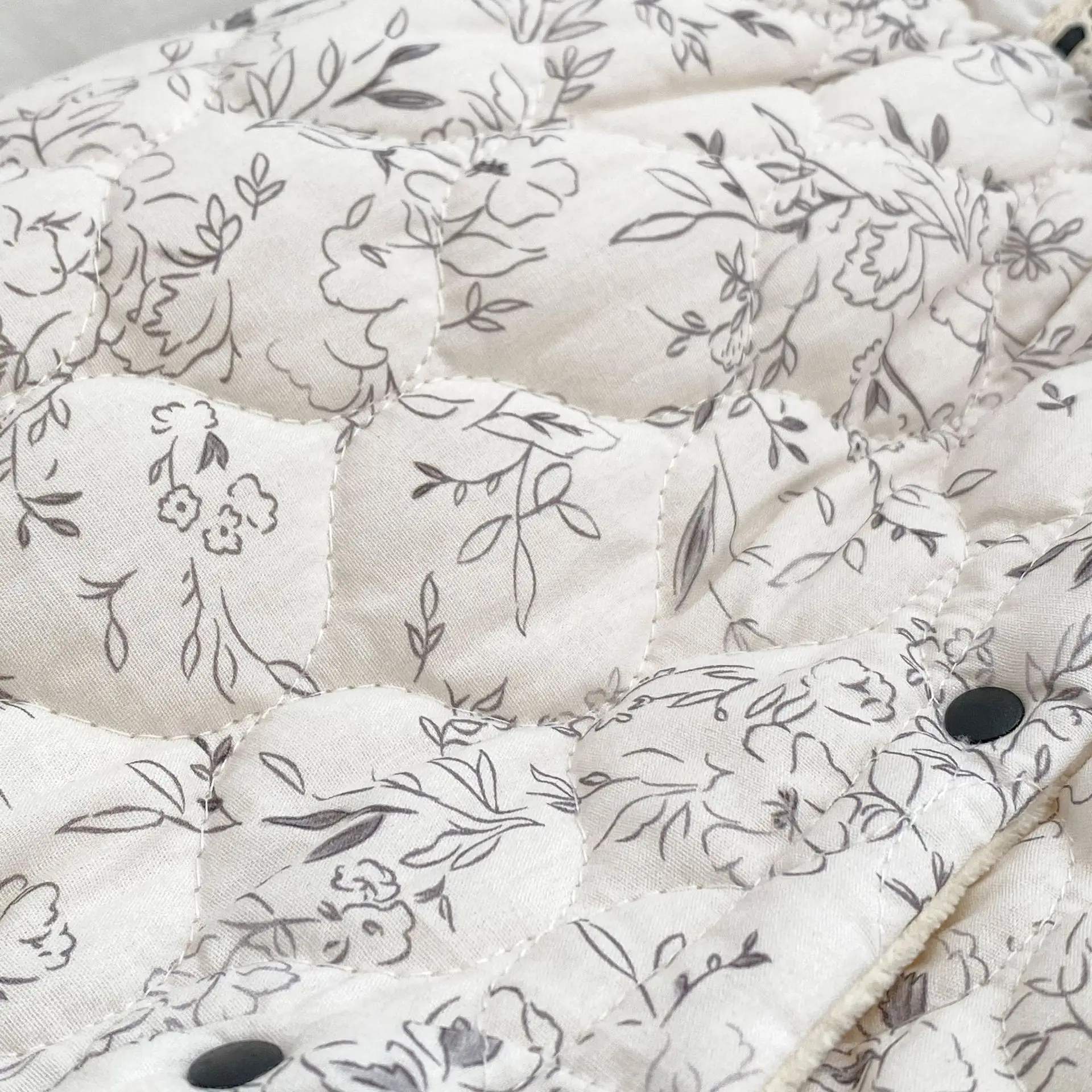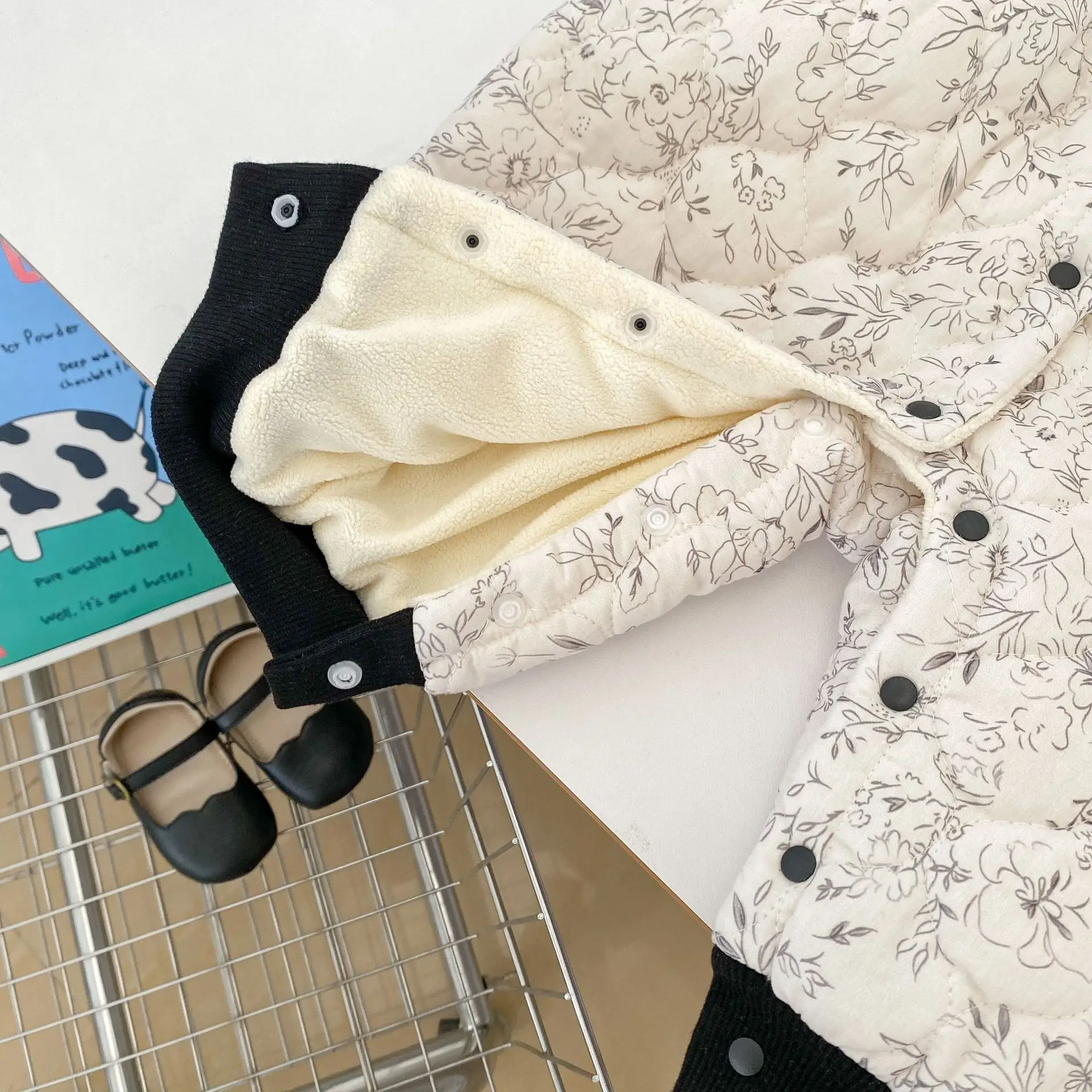 フラワーレースのシックなデザインとリボンがアクセントとなったベビーアウタージャンプスーツは、寒い季節でもお子さまをしっかりと温かく守ります。キルティング素材とフリース裏地で、保温性が高く、柔らかい着心地が特徴です。長袖のロンパースは、動きやすさと保護力を兼ね備え、外出時の防寒にも最適。細部にわたるデザインへのこだわりが、おしゃれな印象を与え、普段使いにも特別な日のお出かけにもぴったりです。お子さまを包み込むような優しい素材感とデザインは、寒い季節に欠かせないアイテムです。