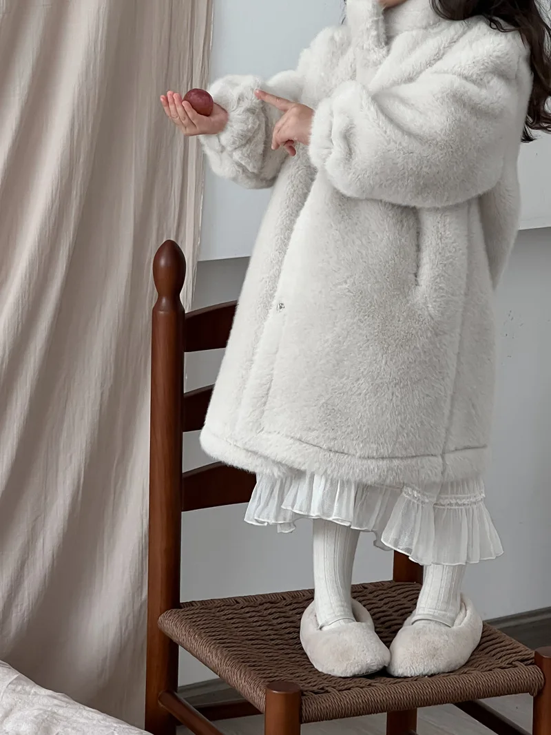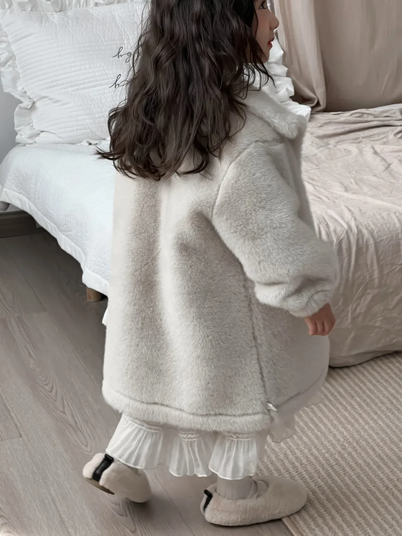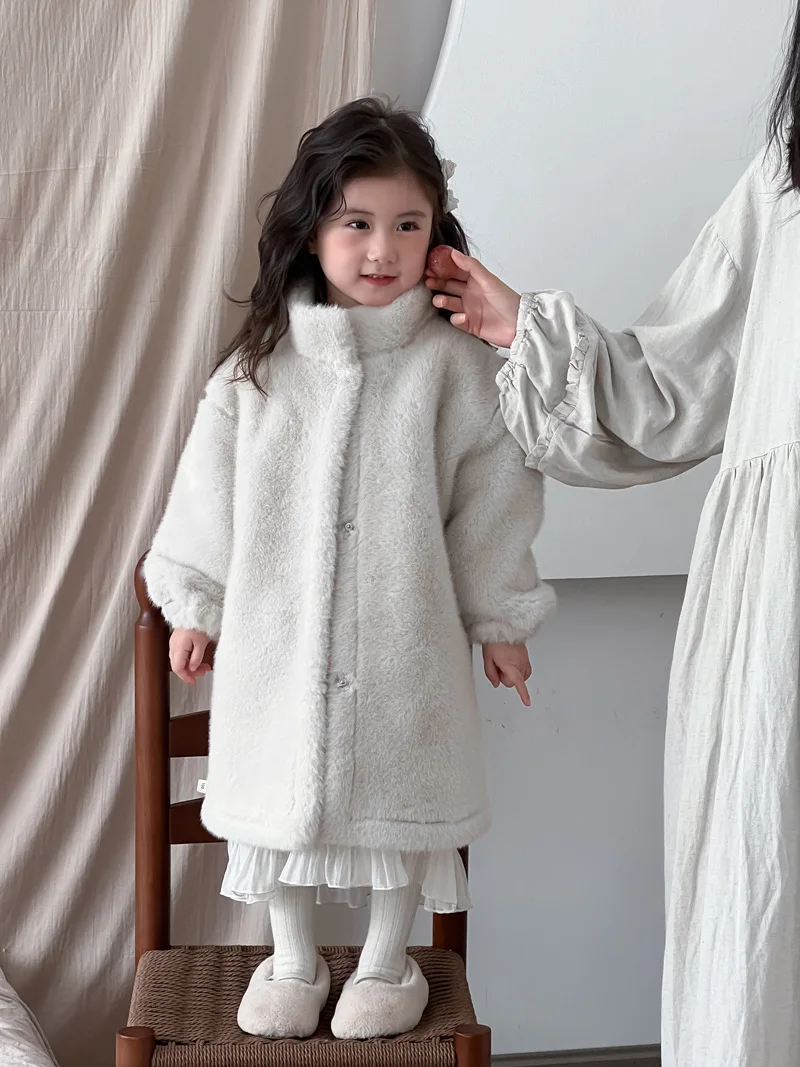ボアフリースのスタンドカラージャケットコートは、寒い季節に欠かせないアイテムです。ふんわりとしたボア素材が体をしっかり包み込み、驚くほどの温かさを提供します。スタンドカラーのデザインが首元を優しく保護し、寒風からしっかりとガード。カジュアルな印象でありながら、上品さも兼ね備えたスタイルで、普段使いやお出かけに最適です。長めの丈は、ボトムスとの相性も良く、さまざまなコーディネートに対応できます。このジャケットは、冬のワードローブにぜひ加えていただきたい一着で、お子さまのおしゃれを引き立てる素敵なアイテムです。