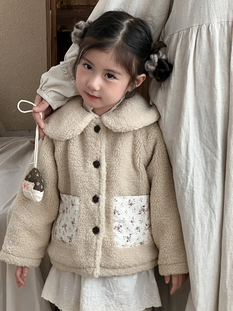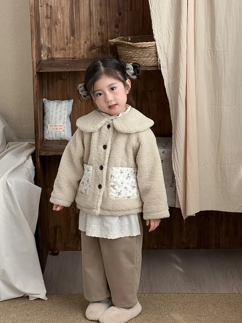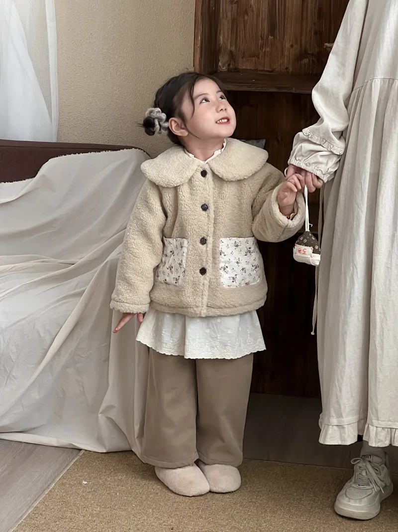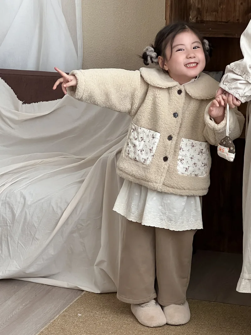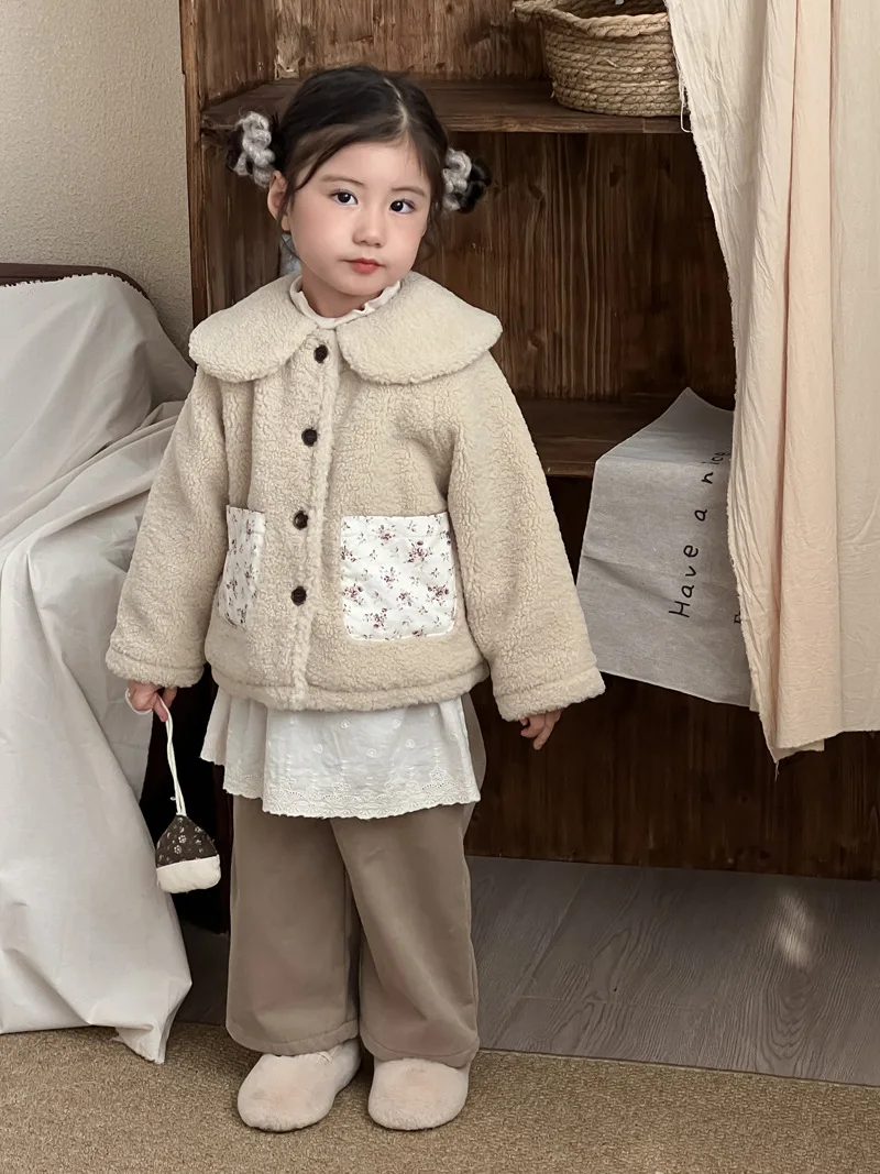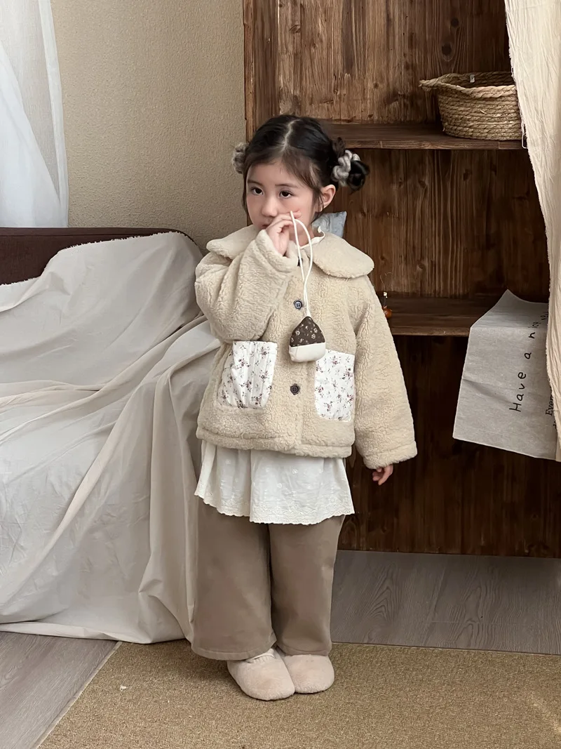 #キッズファッション #ベビー服 #ボアフリースコート #パッチポケット #丸襟デザイン #韓国子供服 #冬用アウター