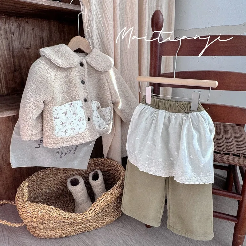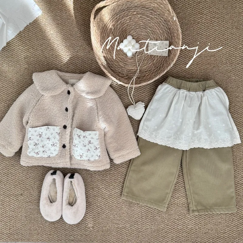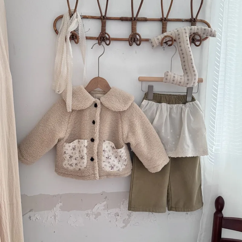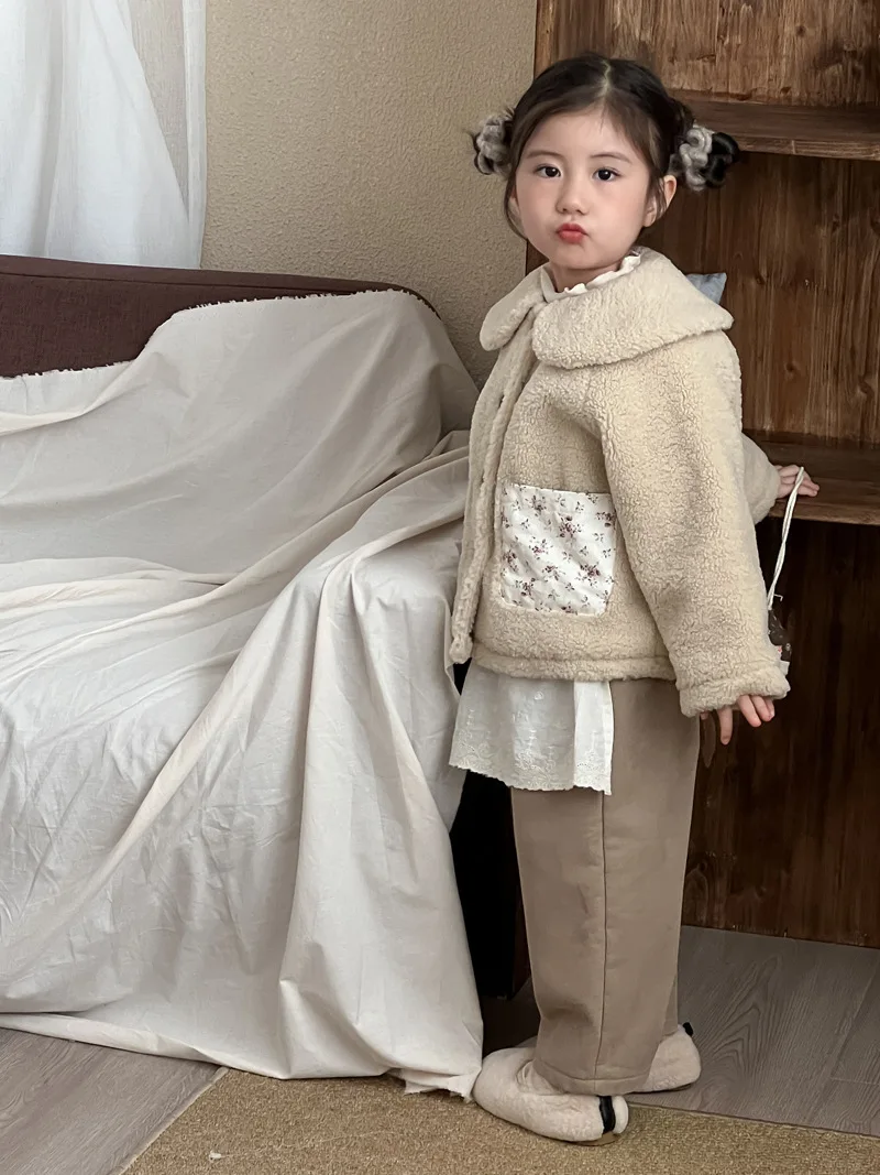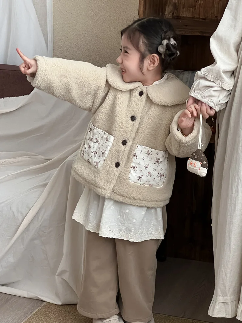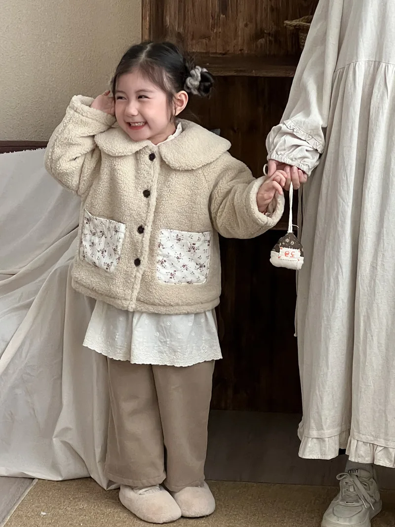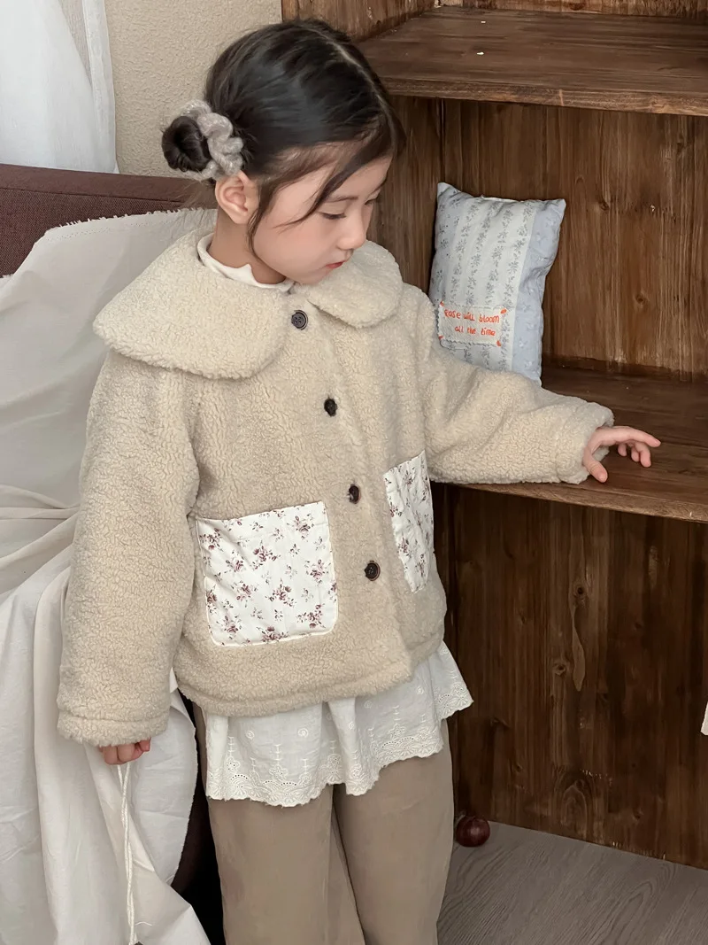 #キッズファッション #ベビー服 #ボアフリースコート #パッチポケット #丸襟デザイン #韓国子供服 #冬用アウター
