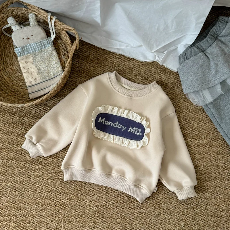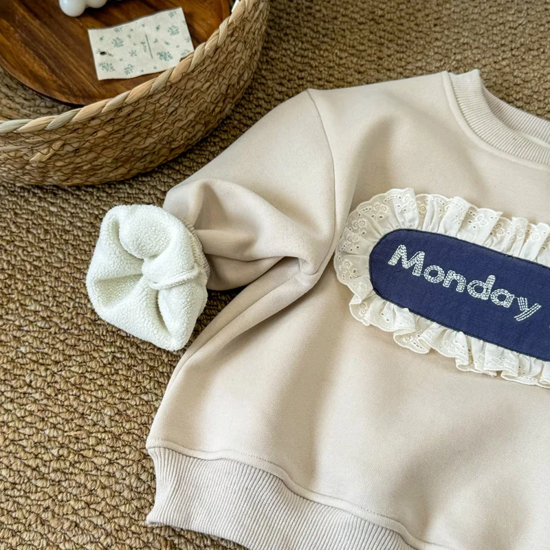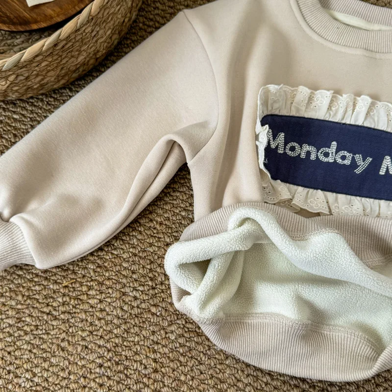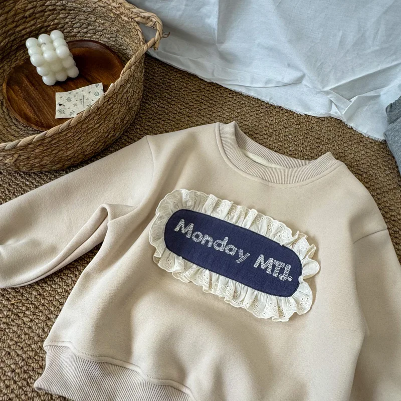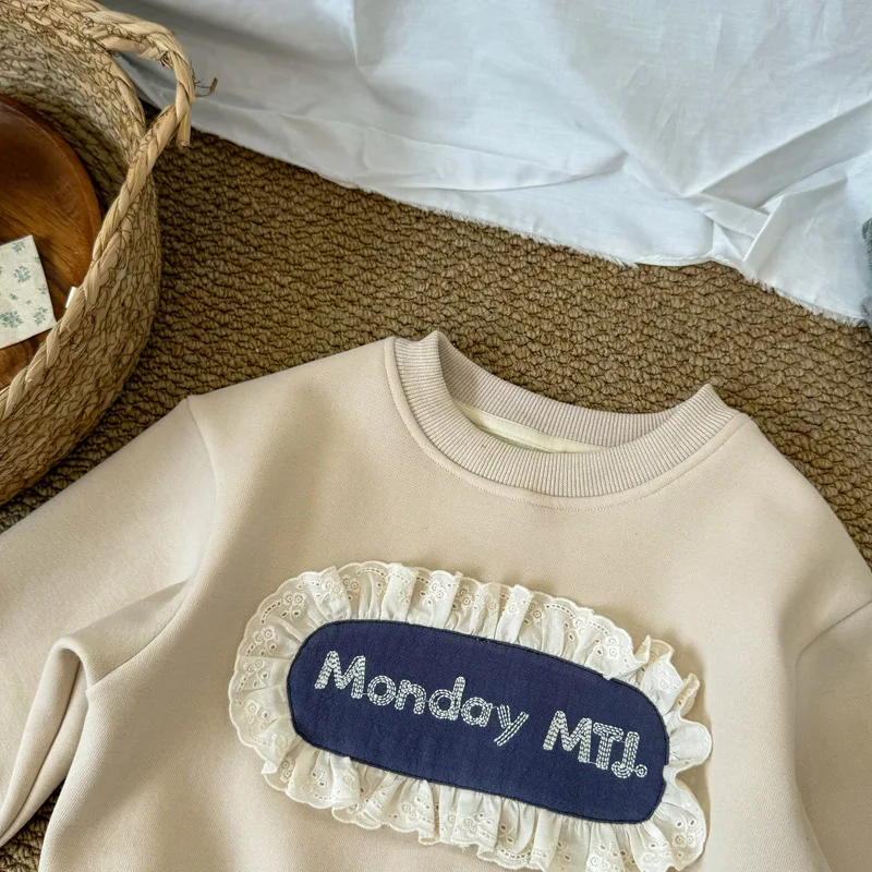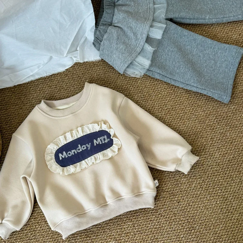 #キッズセットアップ #レースフリル #スウェットシャツ #ドッキングパンツ #冬服 #女の子コーデ #暖かい