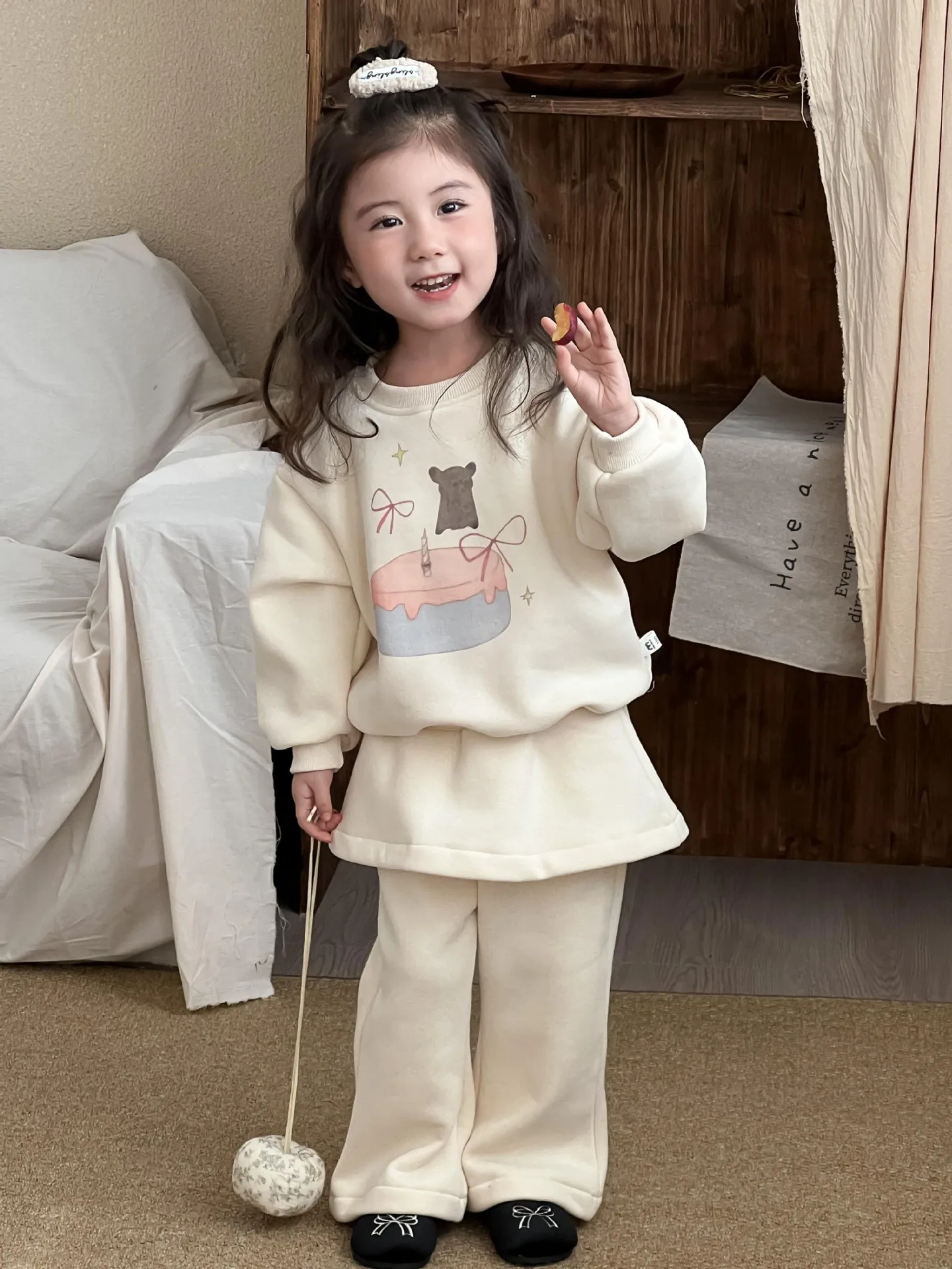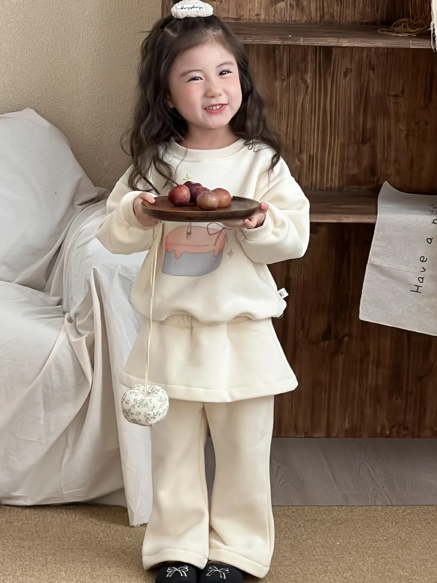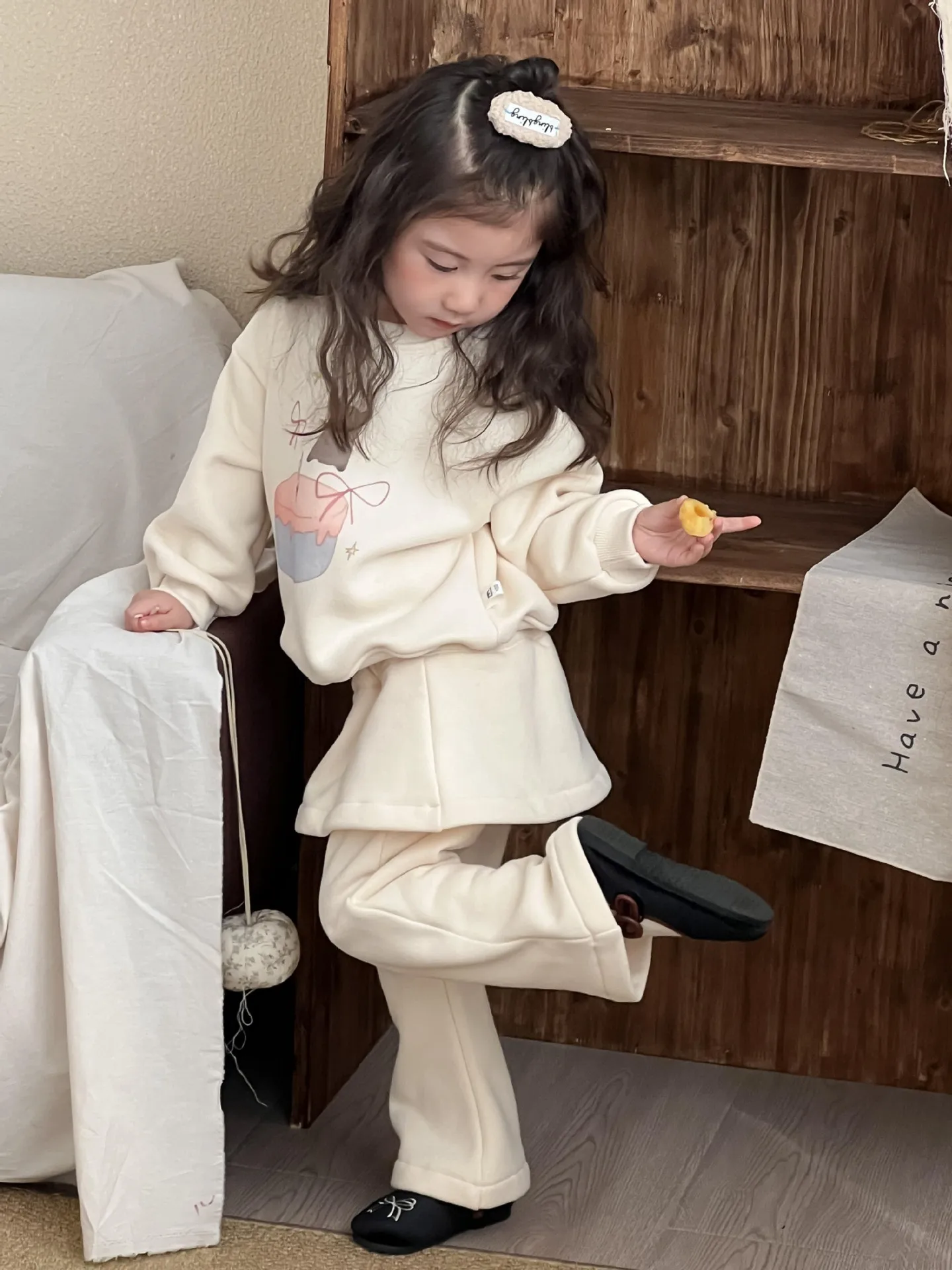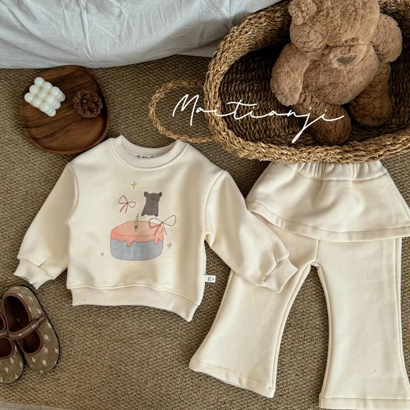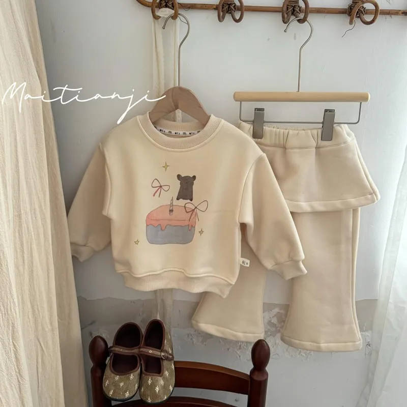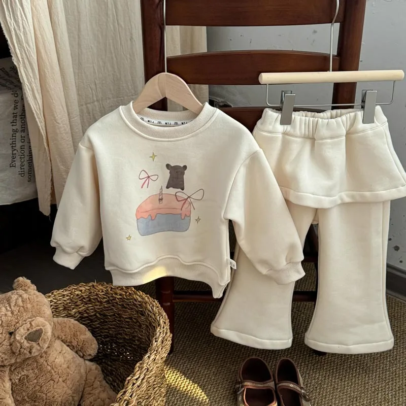 キッズセットアップ 2点セット フリース長袖スウェットシャツ+スカートドッキングフレアパンツ【mh0008502】
