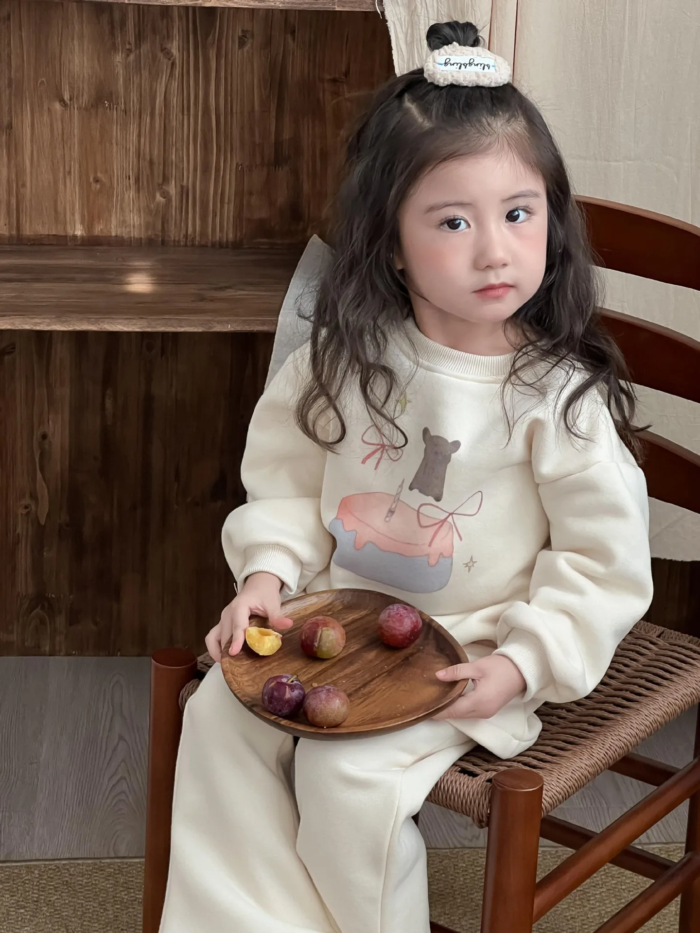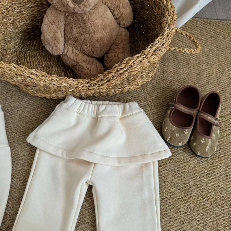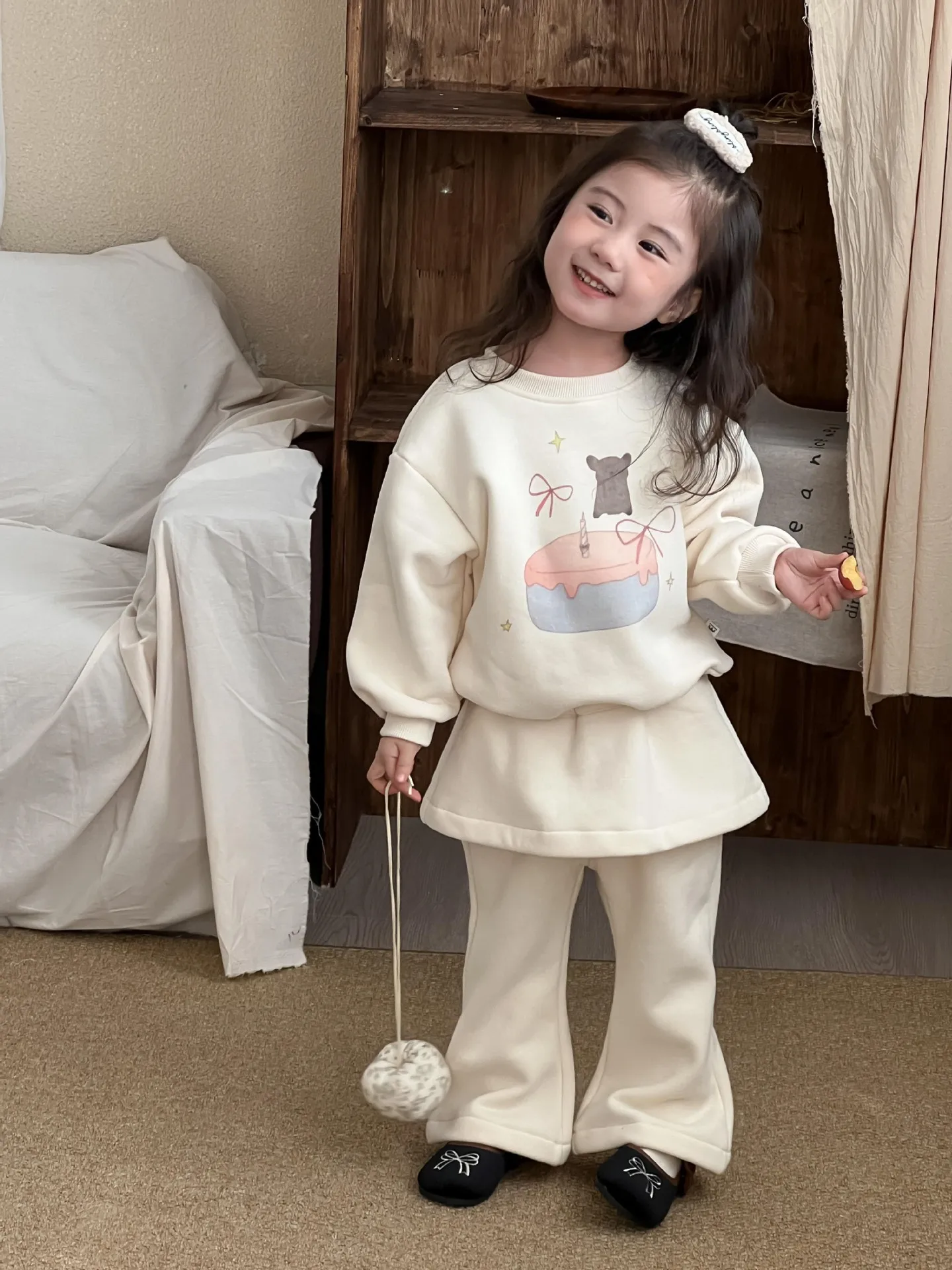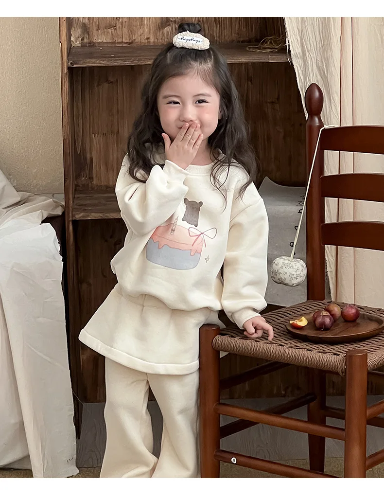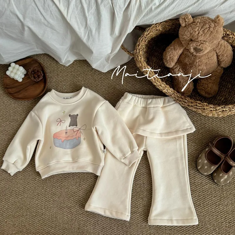 キッズセットアップ 2点セット フリース長袖スウェットシャツ+スカートドッキングフレアパンツ【mh0008502】