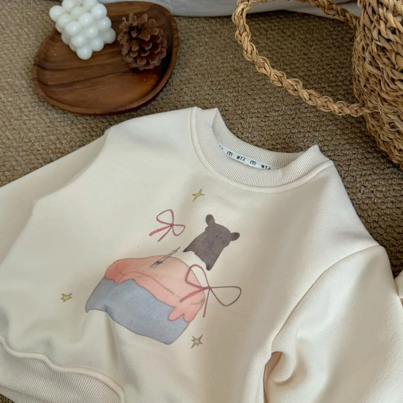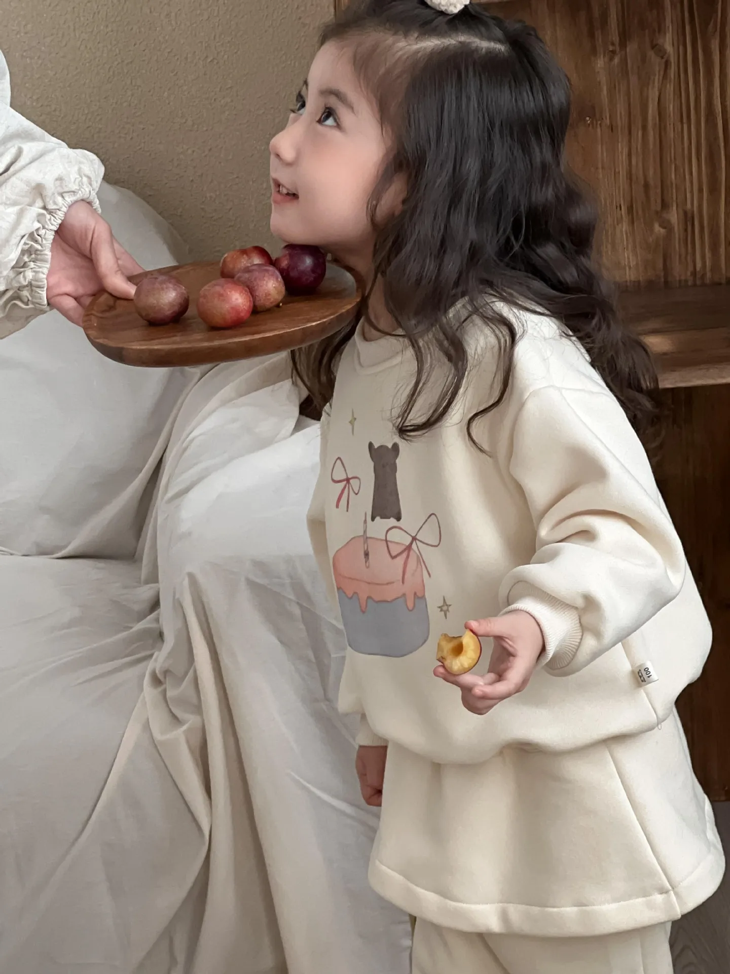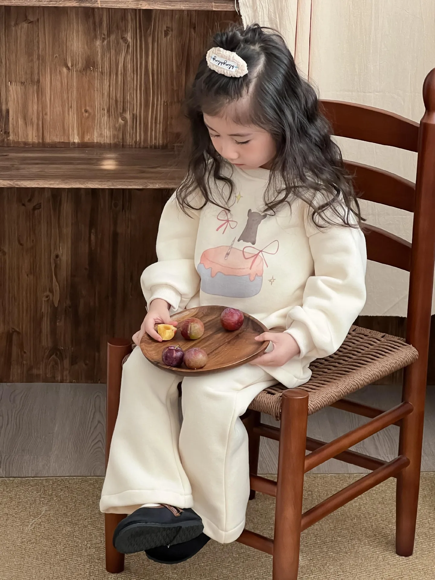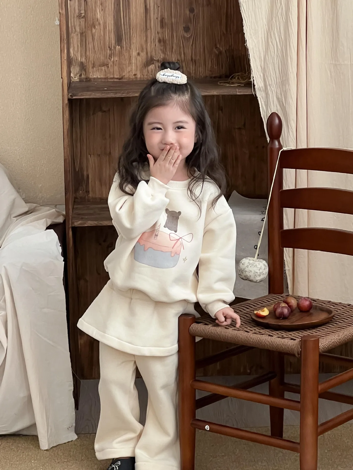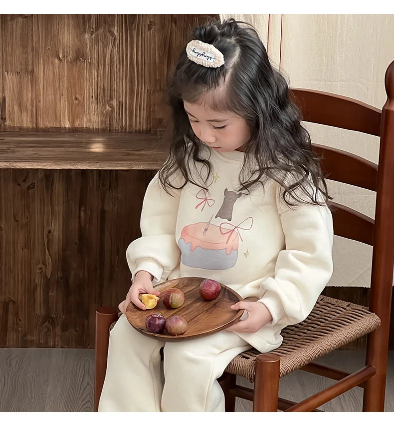 キッズセットアップ 2点セット フリース長袖スウェットシャツ+スカートドッキングフレアパンツ【mh0008502】